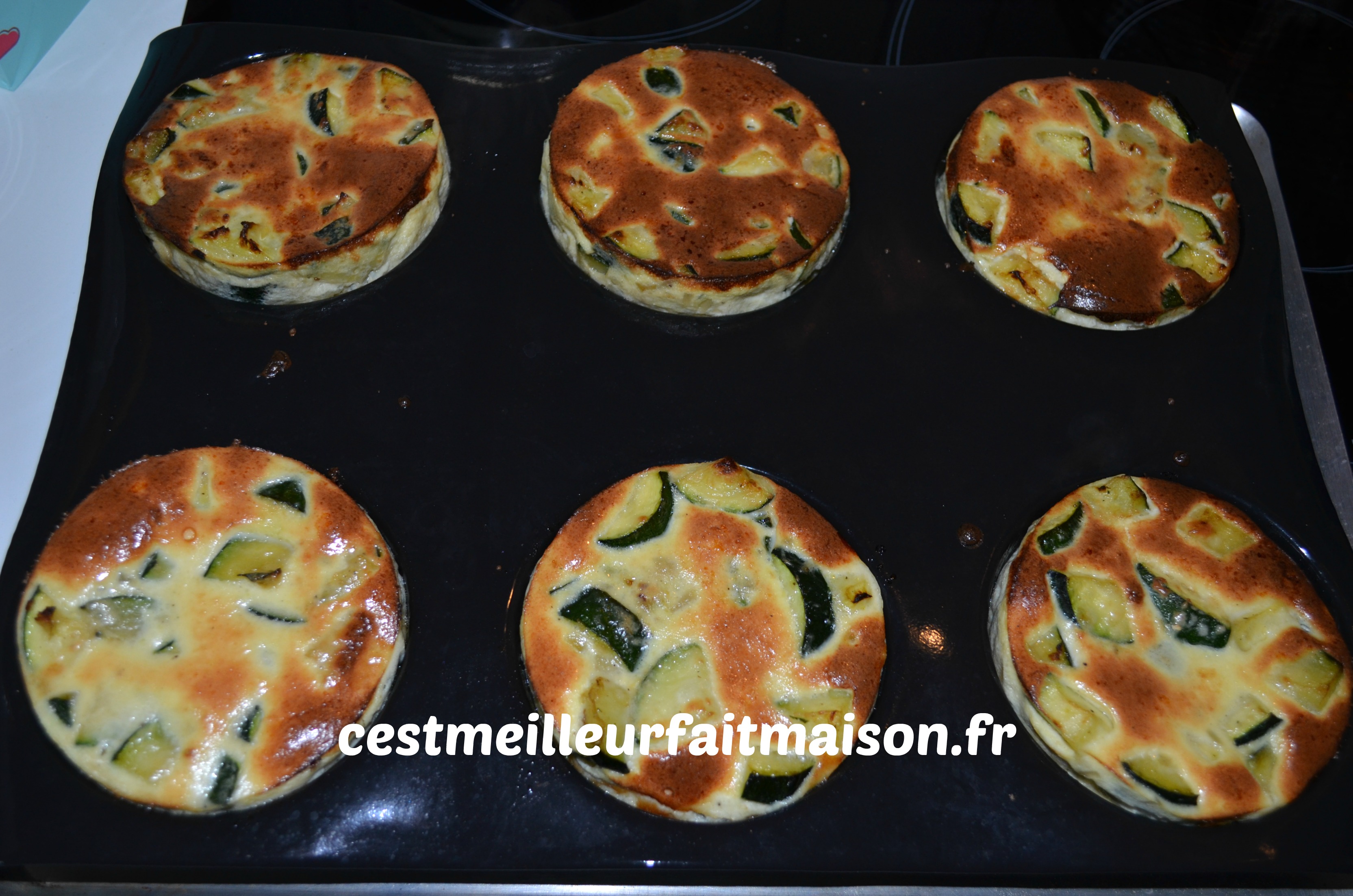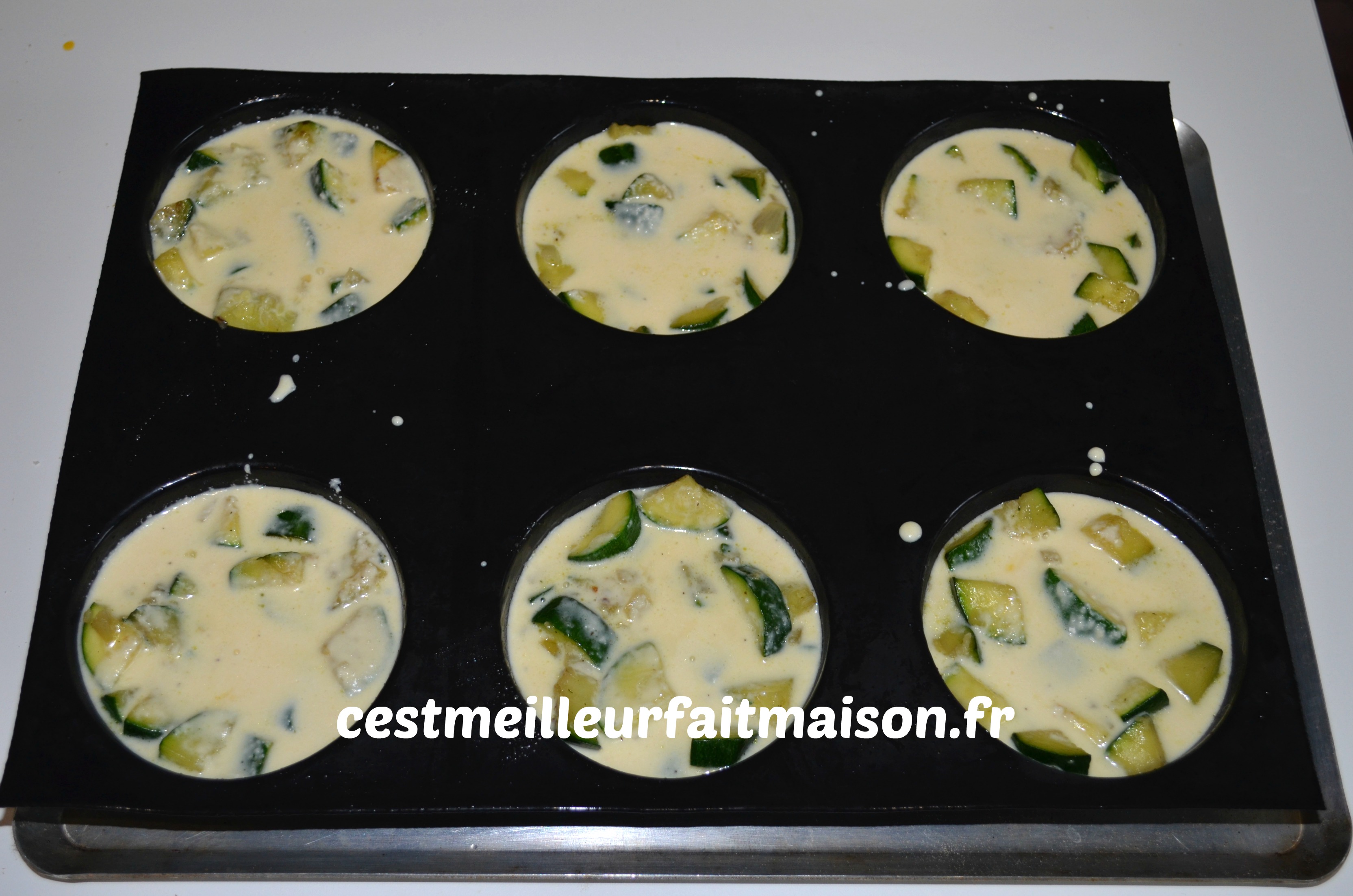 Mettre les courgettes dans les empreintes et recouvrir avec la préparation liquide.
