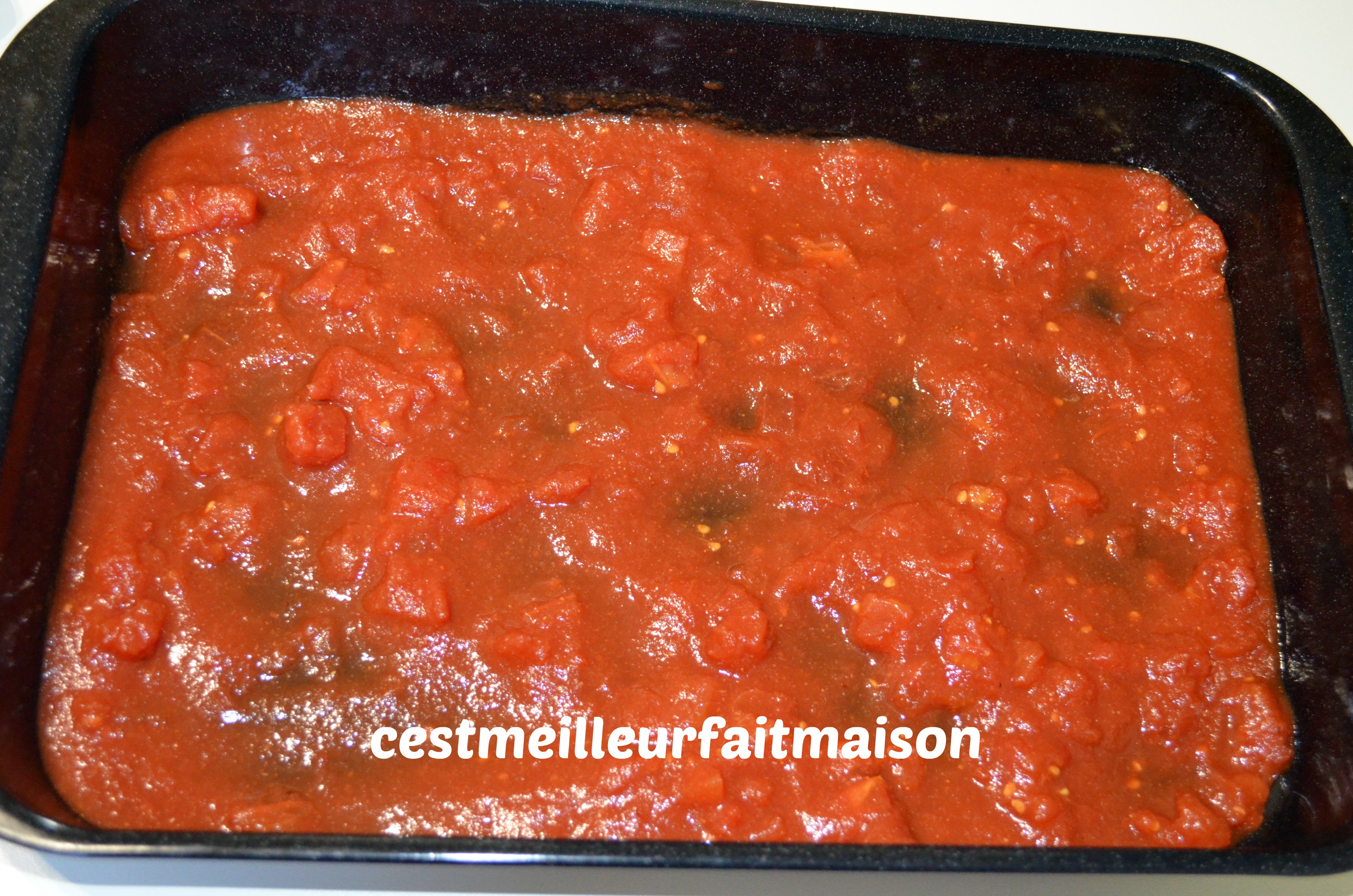 Verser la sauce dans un plat à gratin.