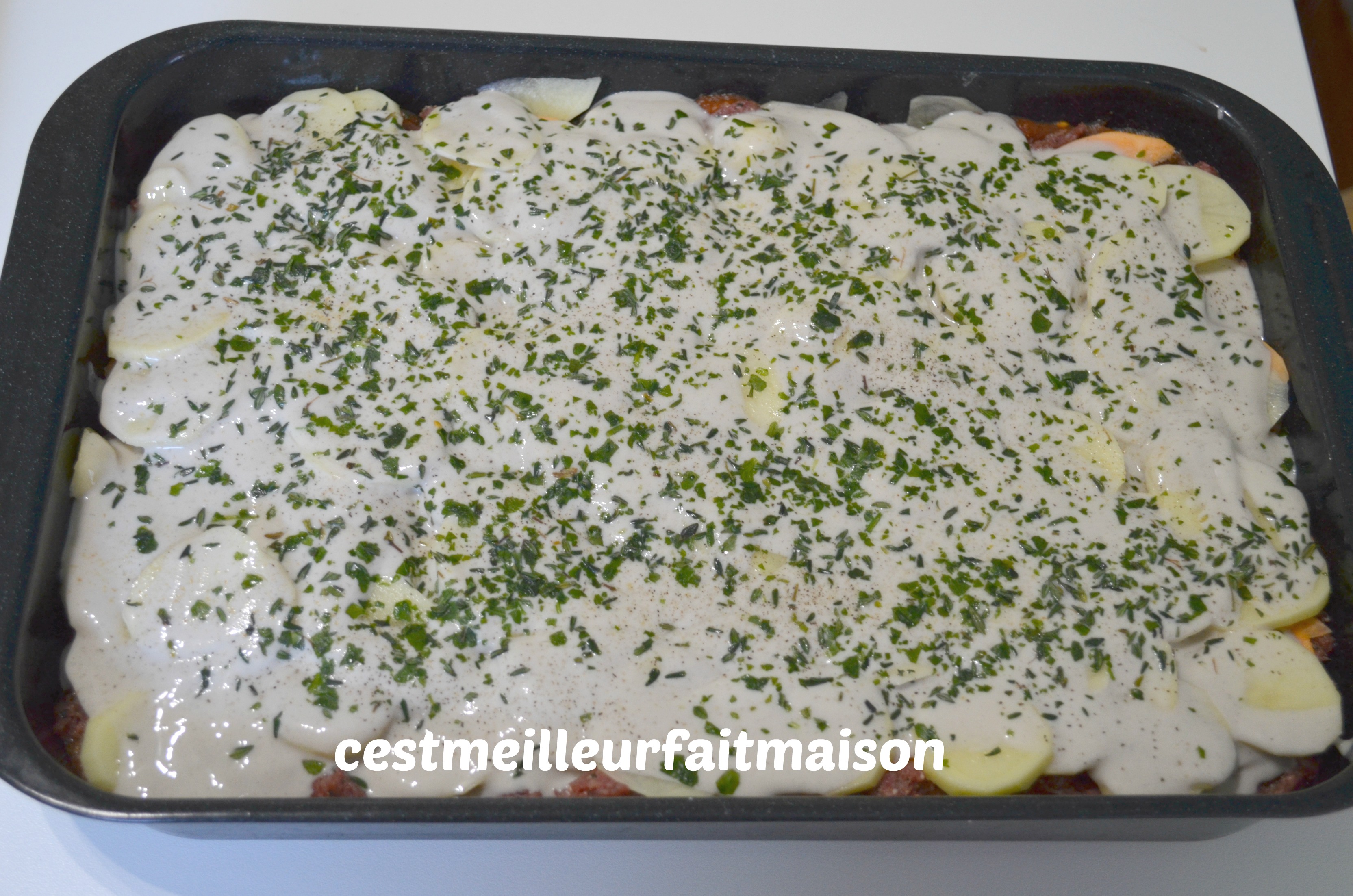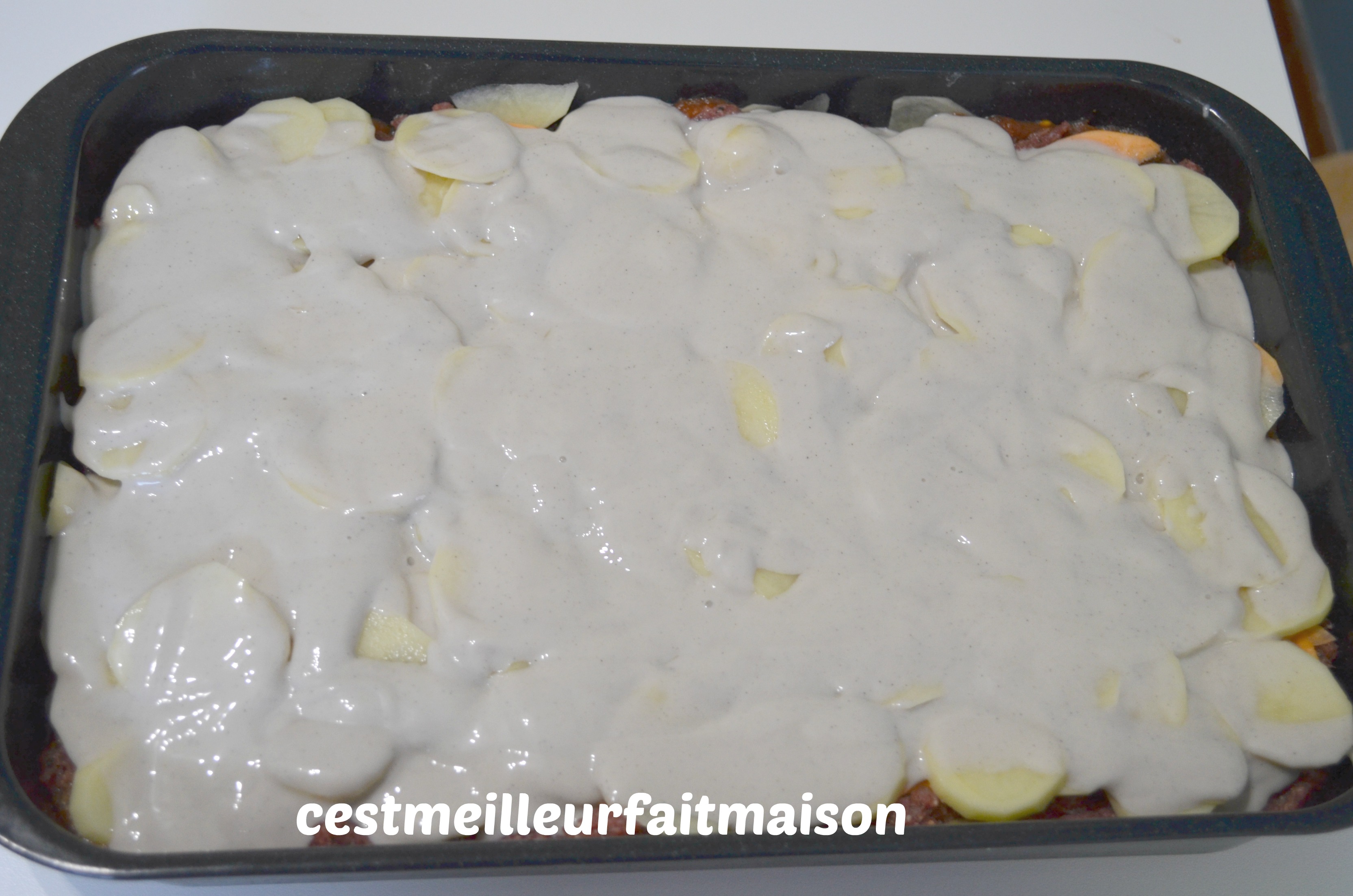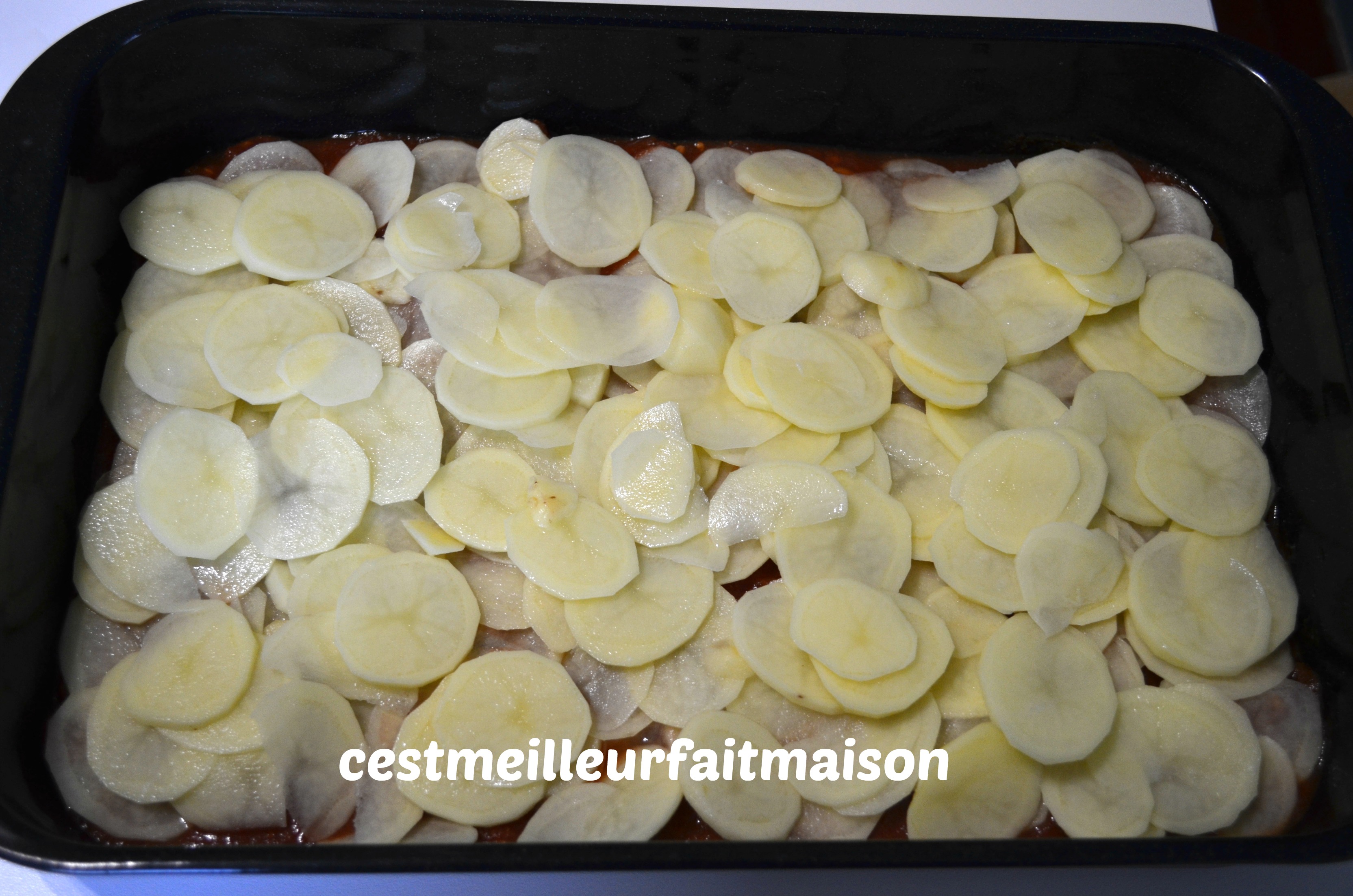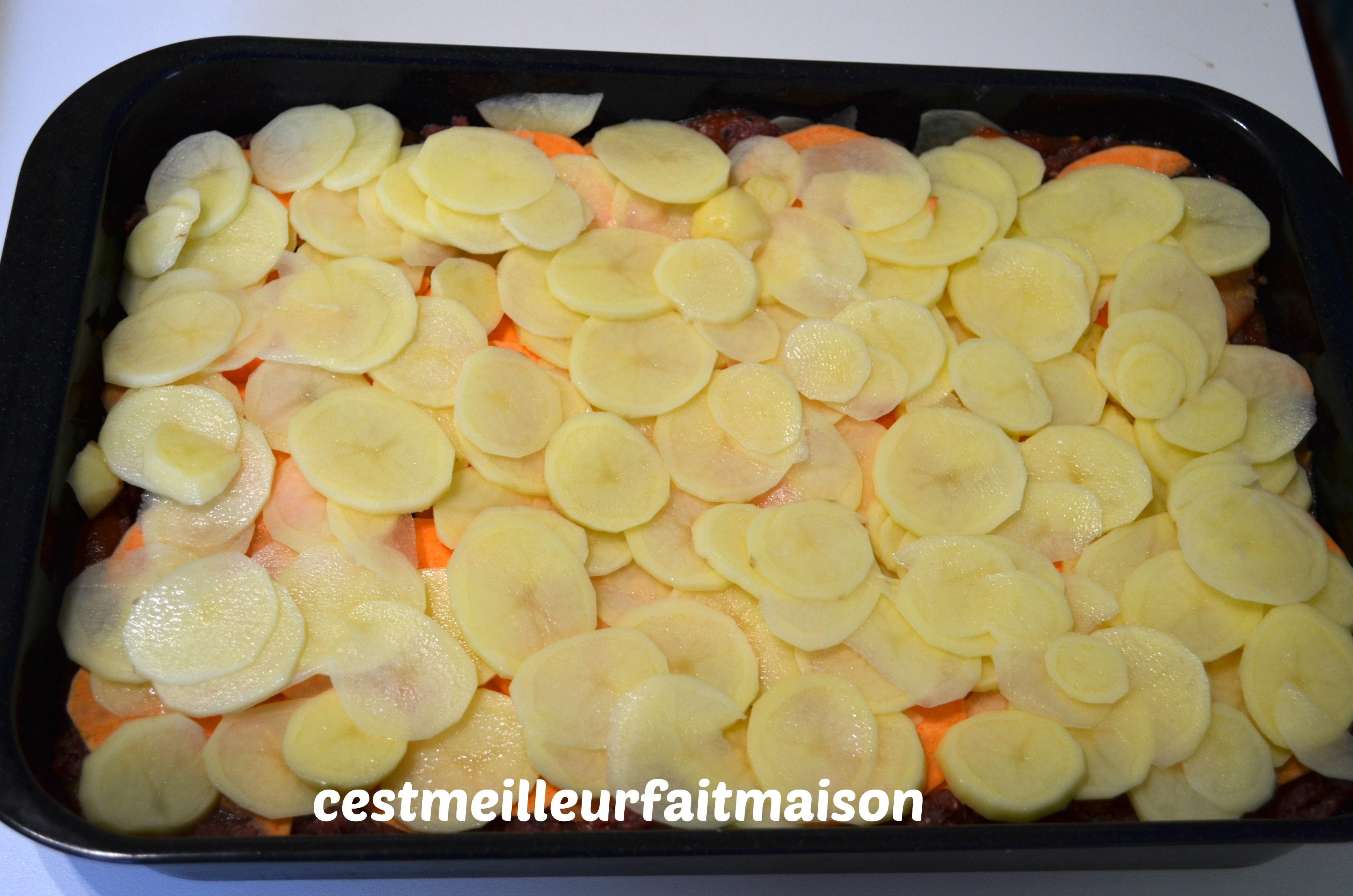 5- Recouvrir d’une couche de pommes de terre.