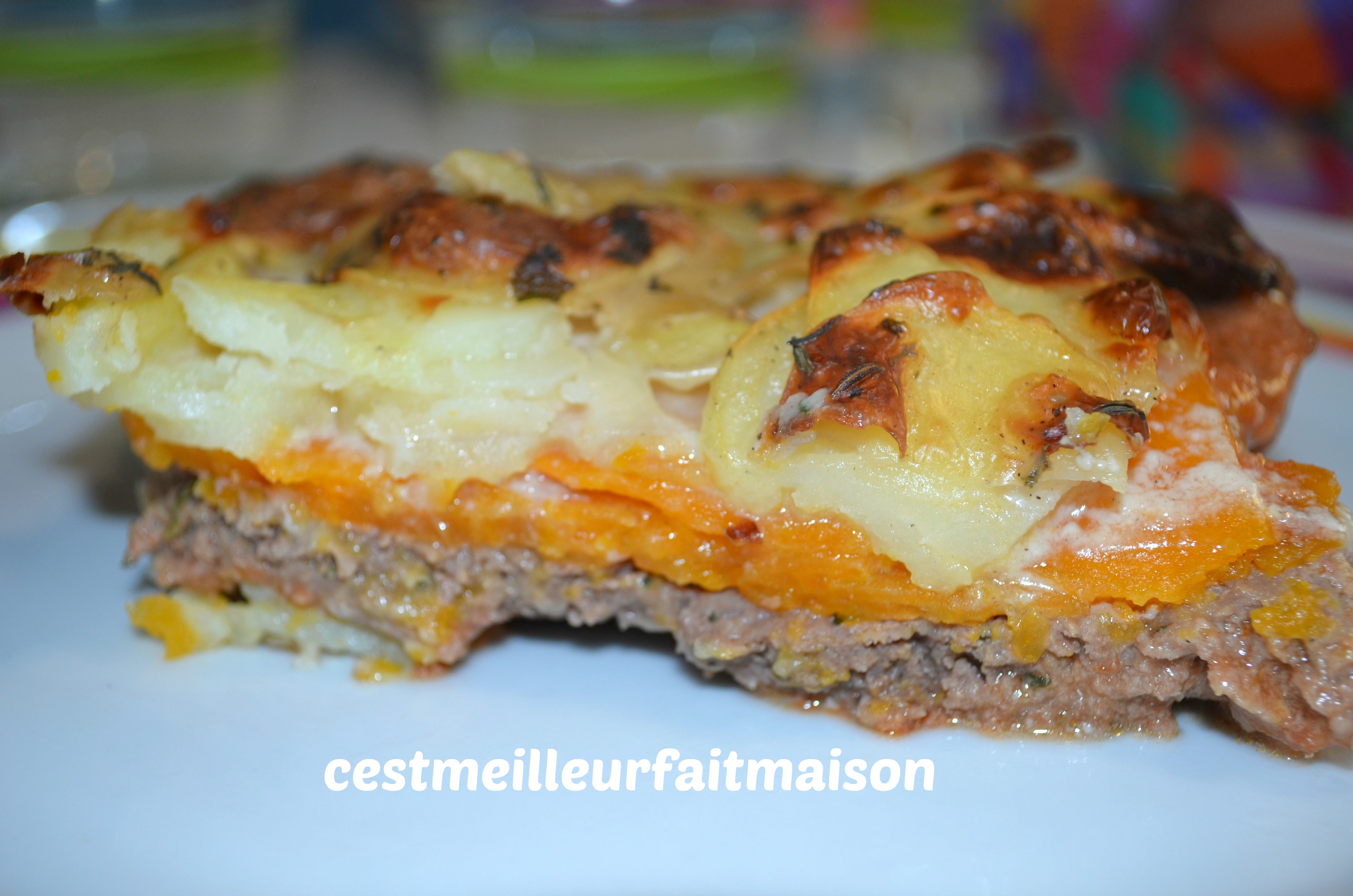 1- Éplucher les pommes de terre et la patate douce. Les émincer le plus finement possible.