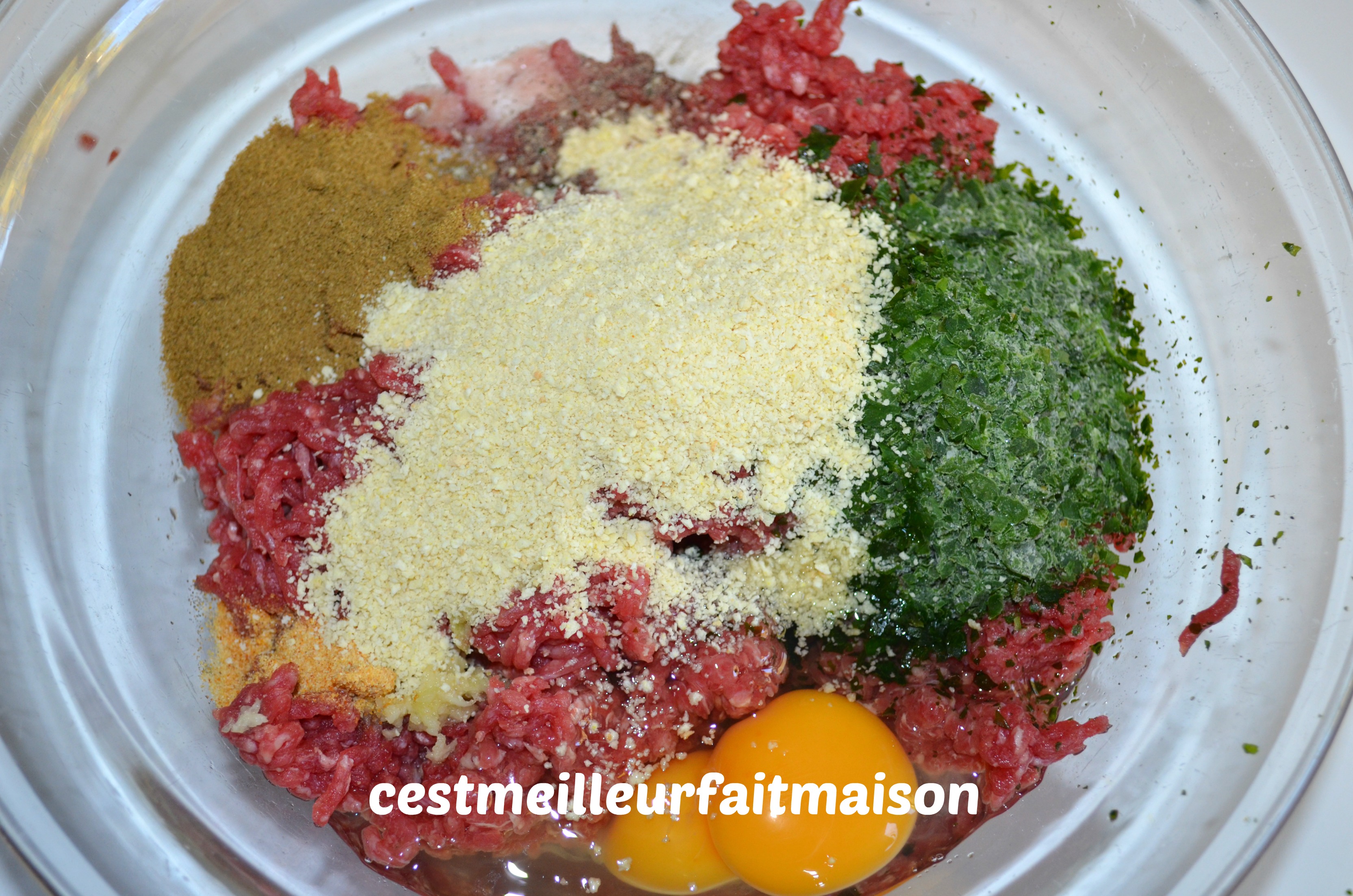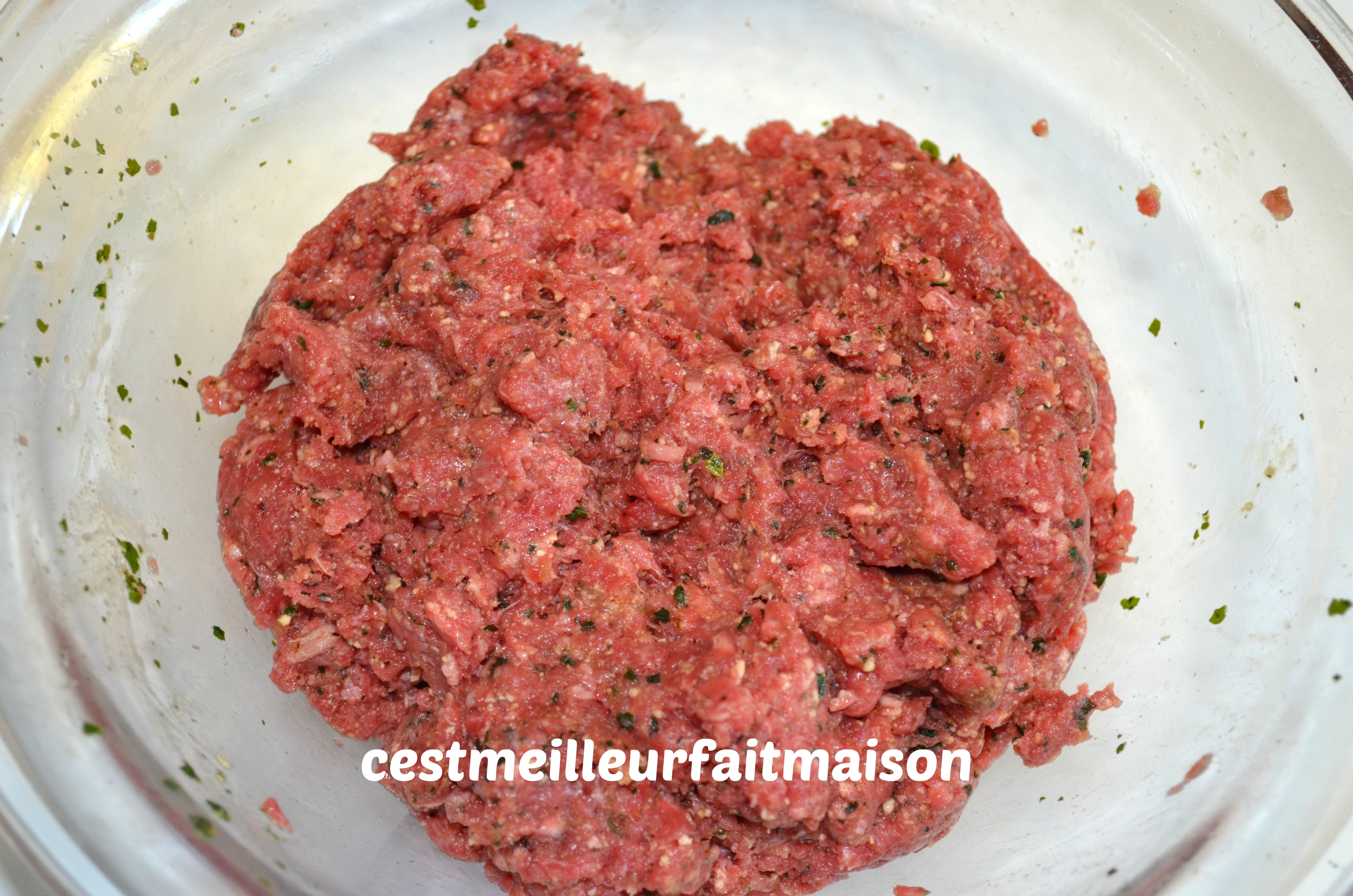 2- Dans un grands contenant, mélanger tous les ingrédients de la farce.