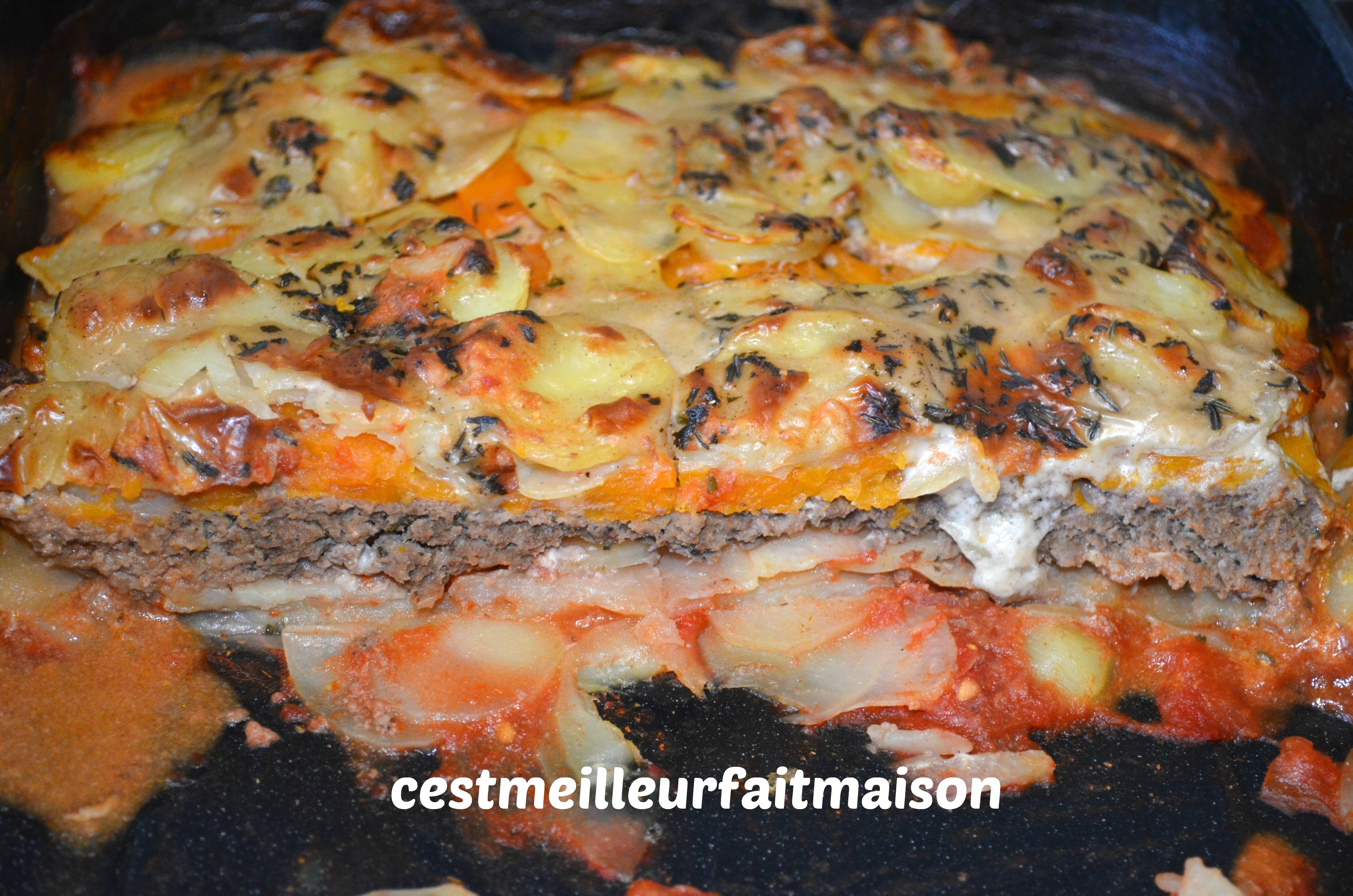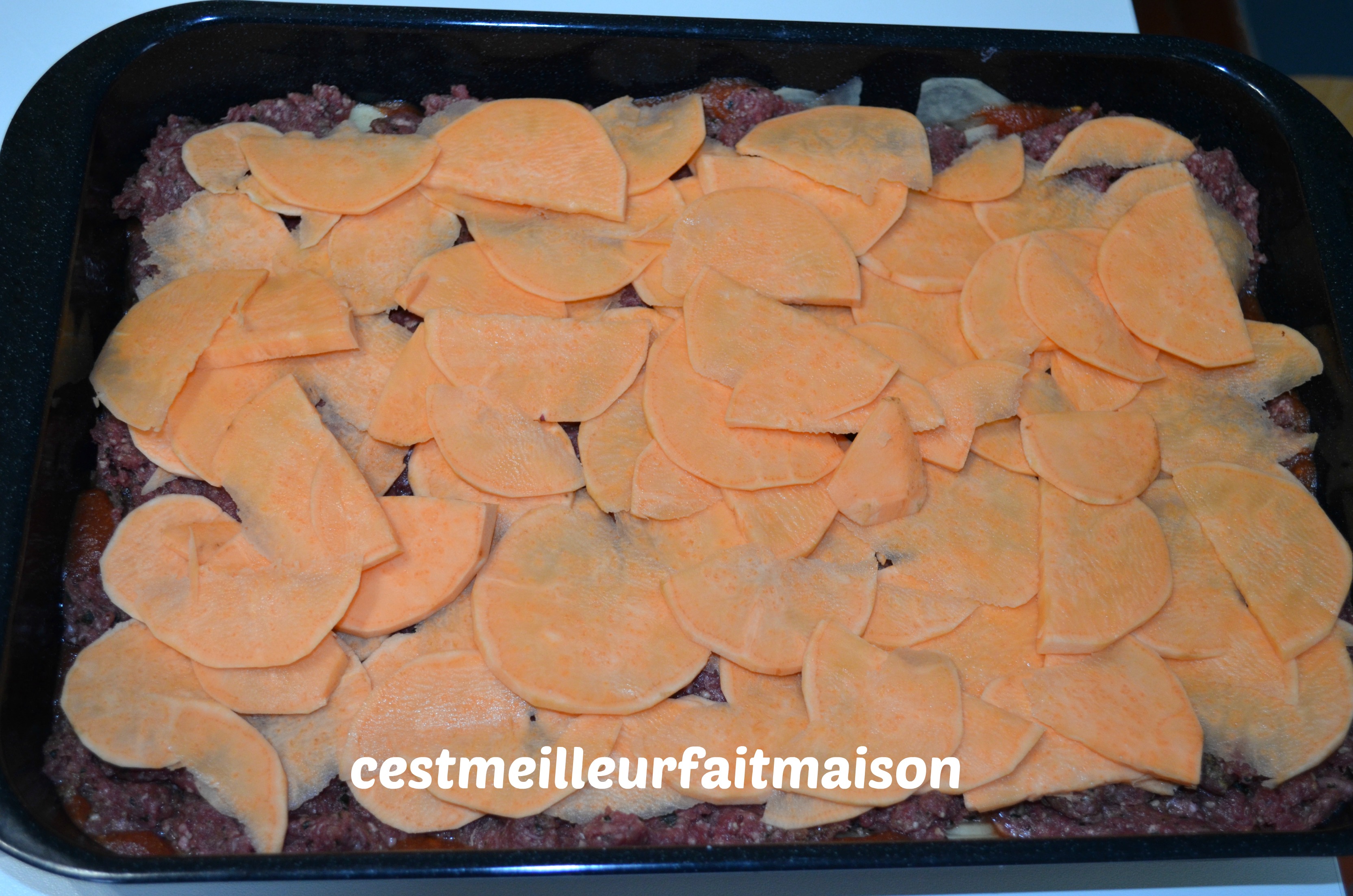7- Continuer avec une couche de patate douce et une autre de pommes de terre.