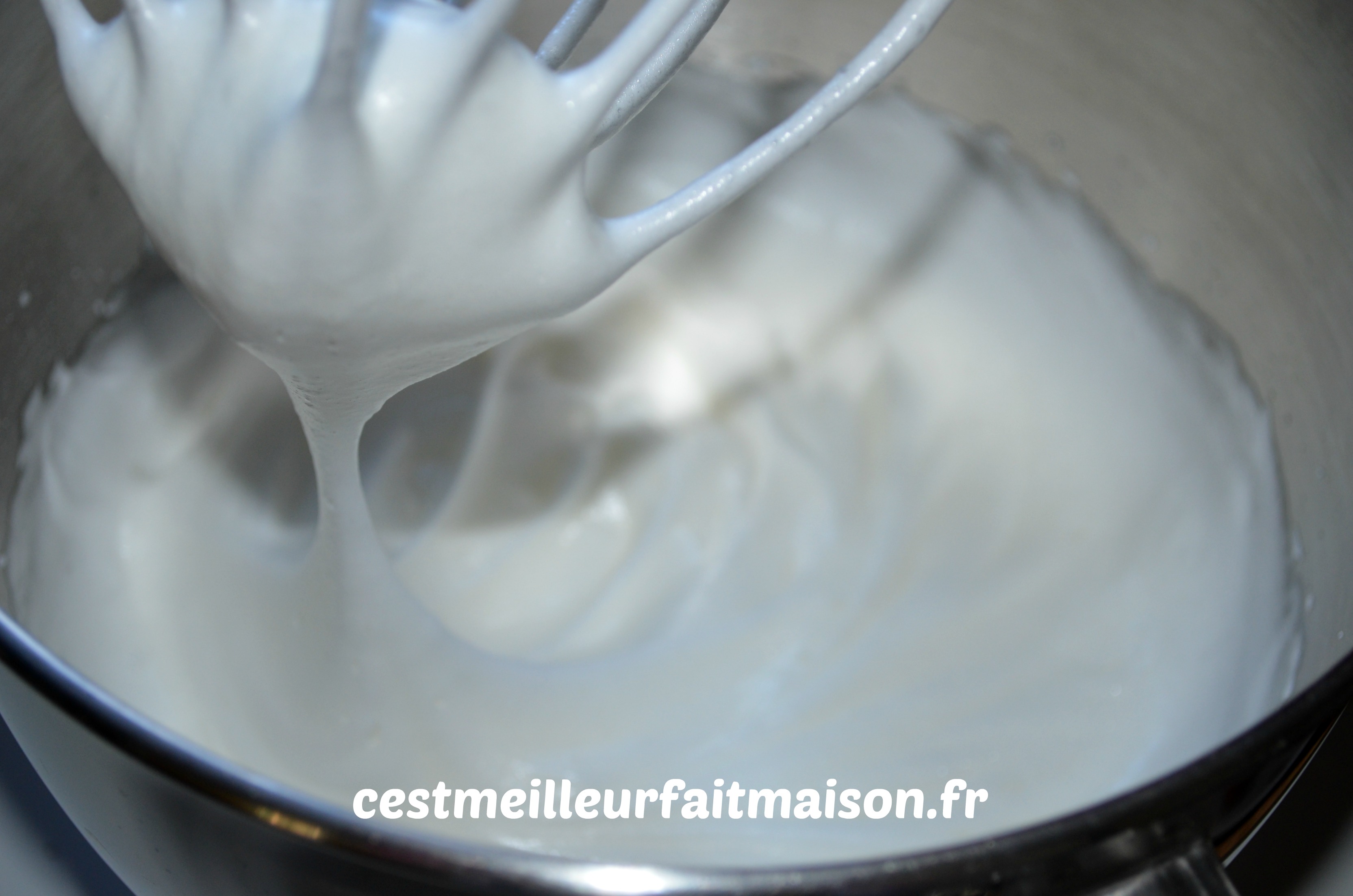 5- Monter les blancs en neige et ajouter 100 g de sucre en 3 fois.