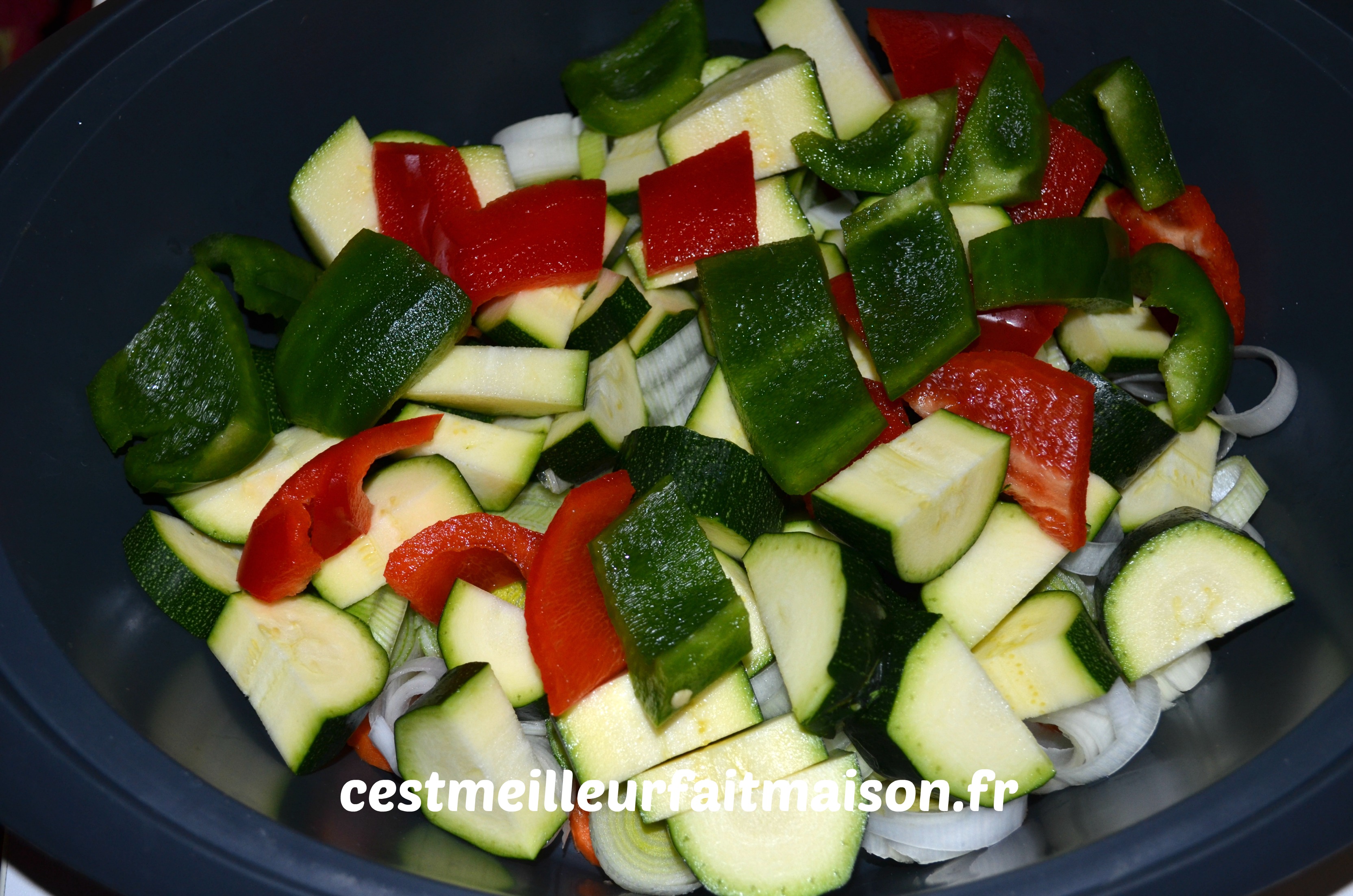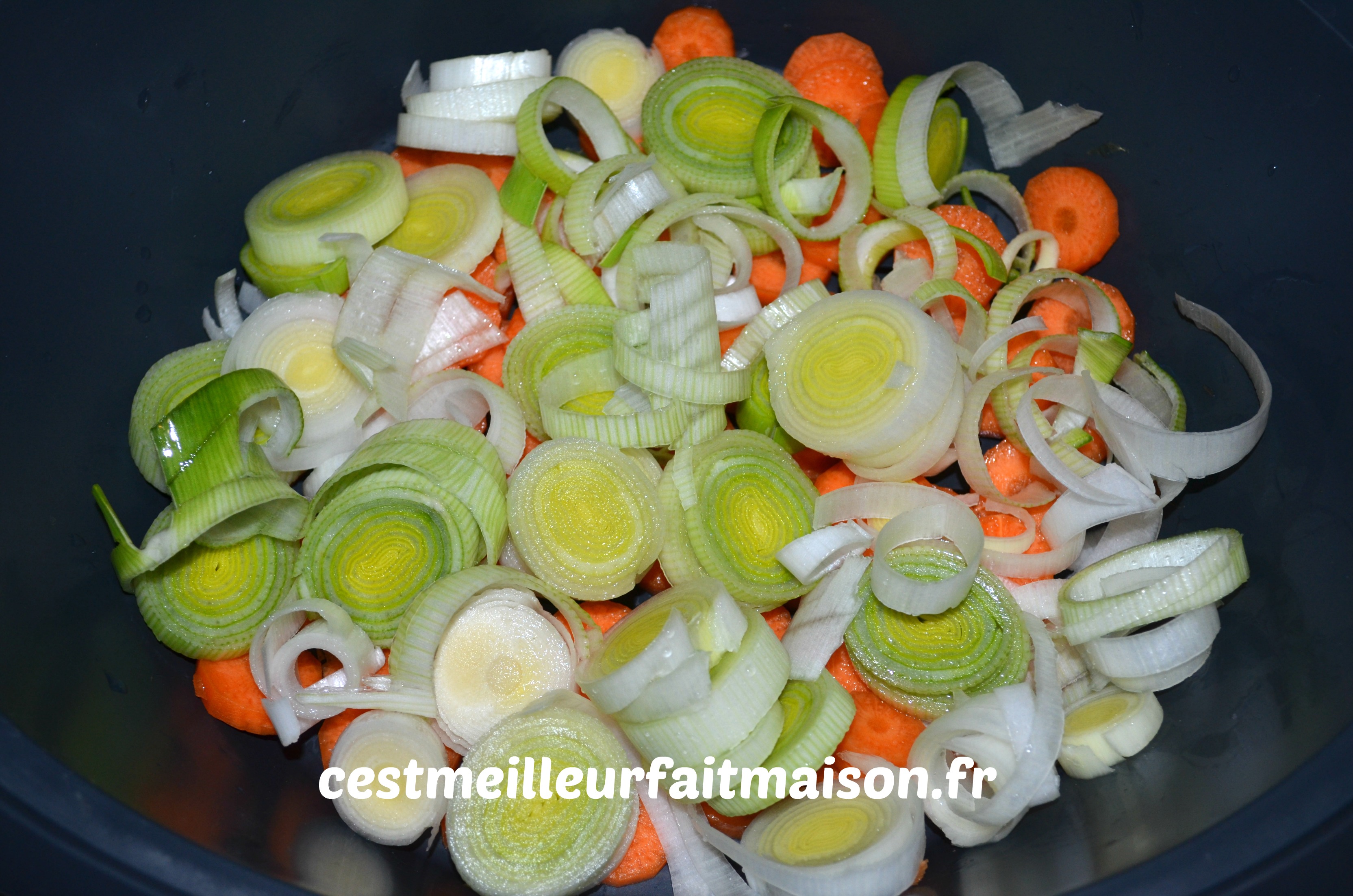 1- Couper les carottes et le poireau en rondelles et le reste des légumes en morceaux. Les mettre dans le Varoma.