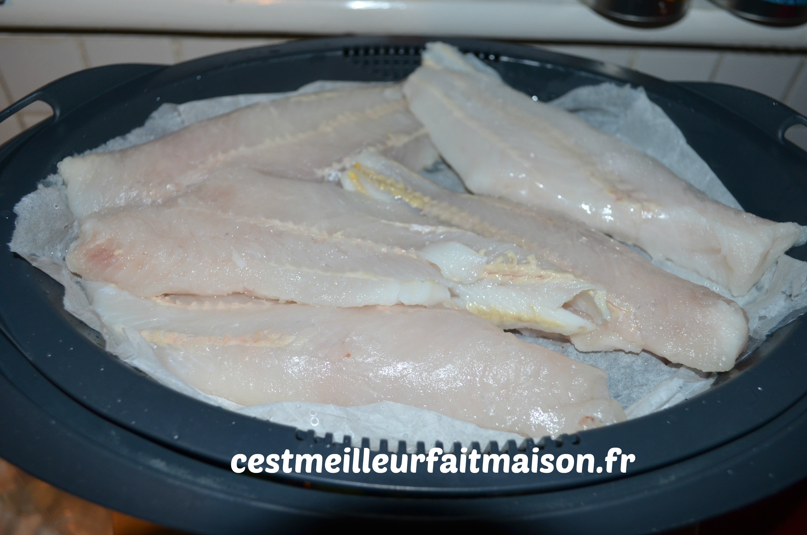 J’ai cuisiné du merlu parce que c’est ce que j’avais dans mon congélateur mais tout autre poisson blanc s’adaptera très bien.