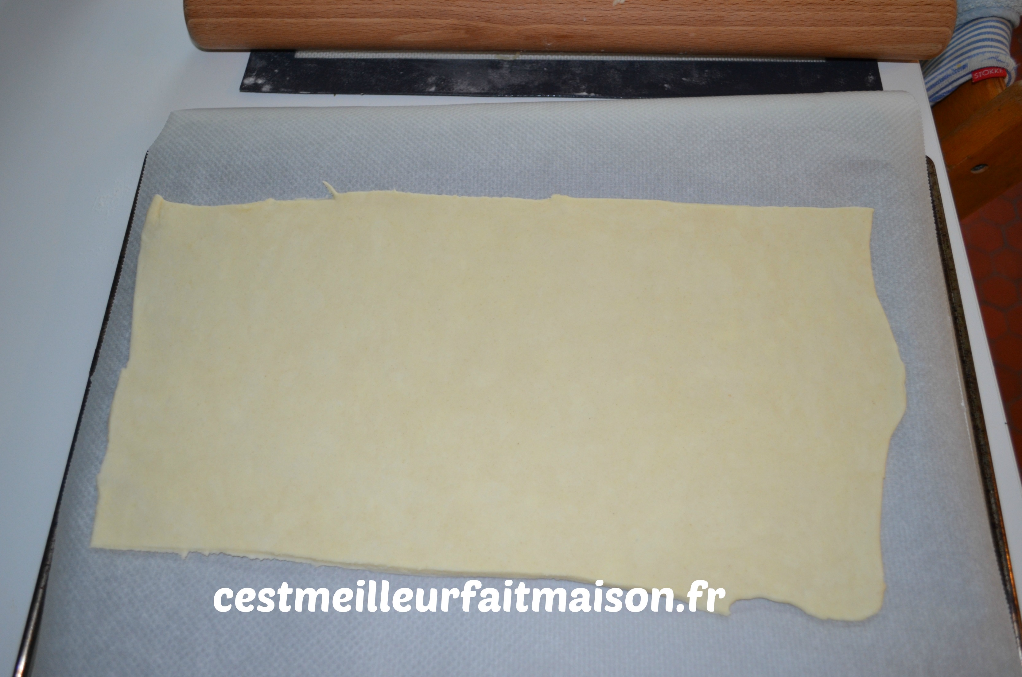 5- Découper 3 rectangles de pâte feuilletée de 30 x 13 cm environ.