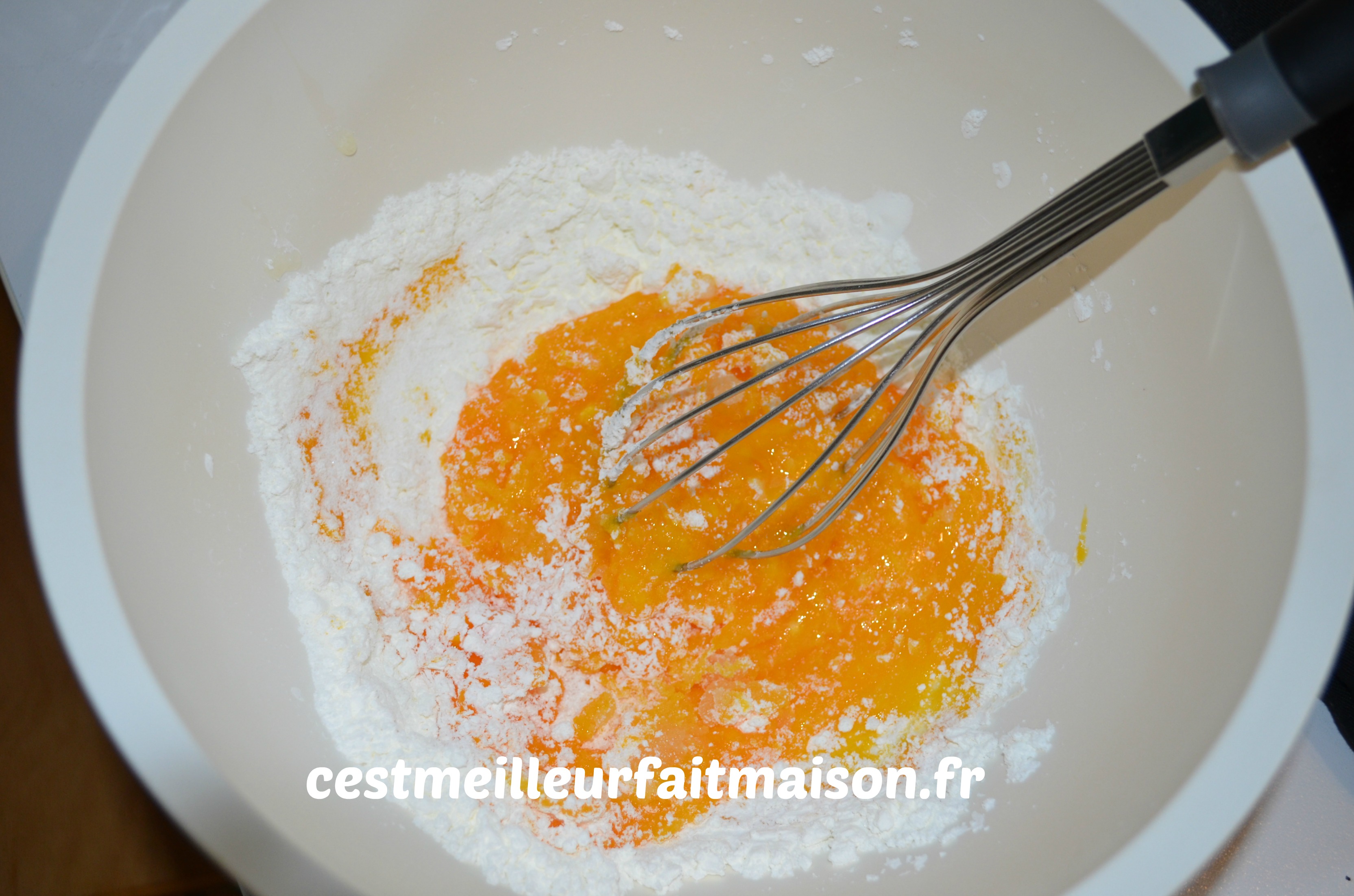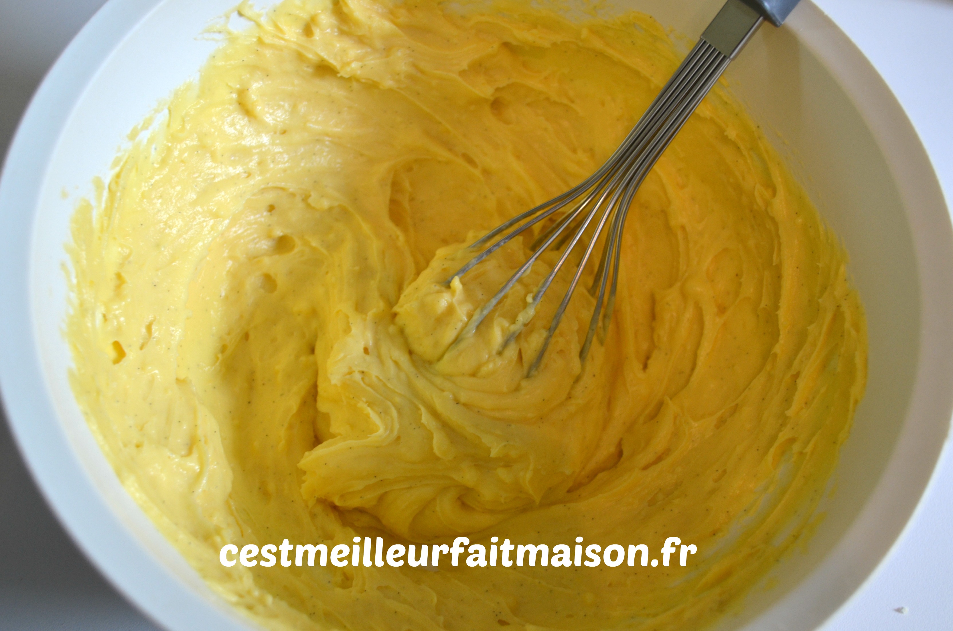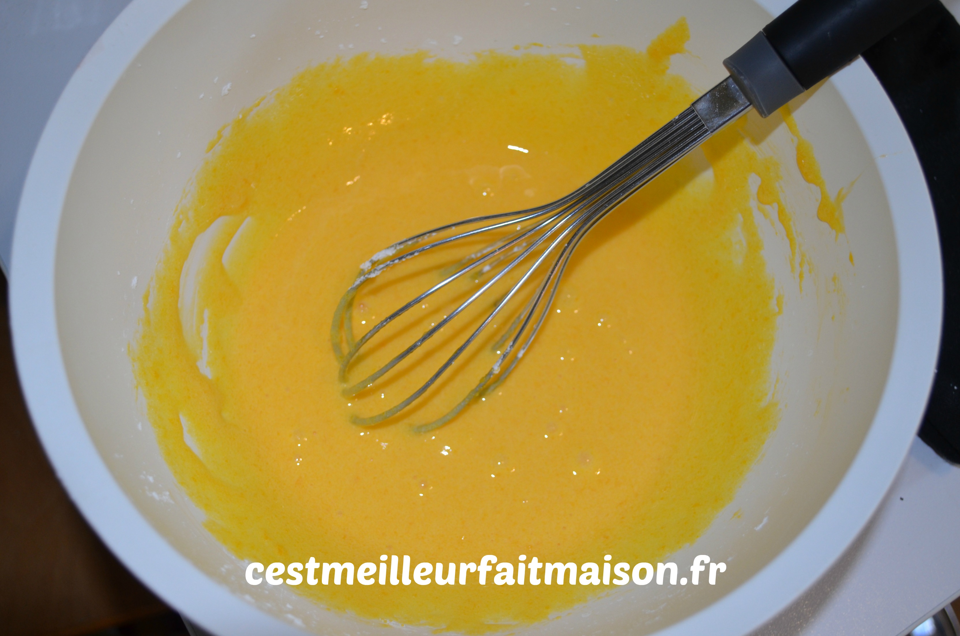 Fouetter les jaunes d’oeufs avec le reste de sucre et la Maïzéna.
