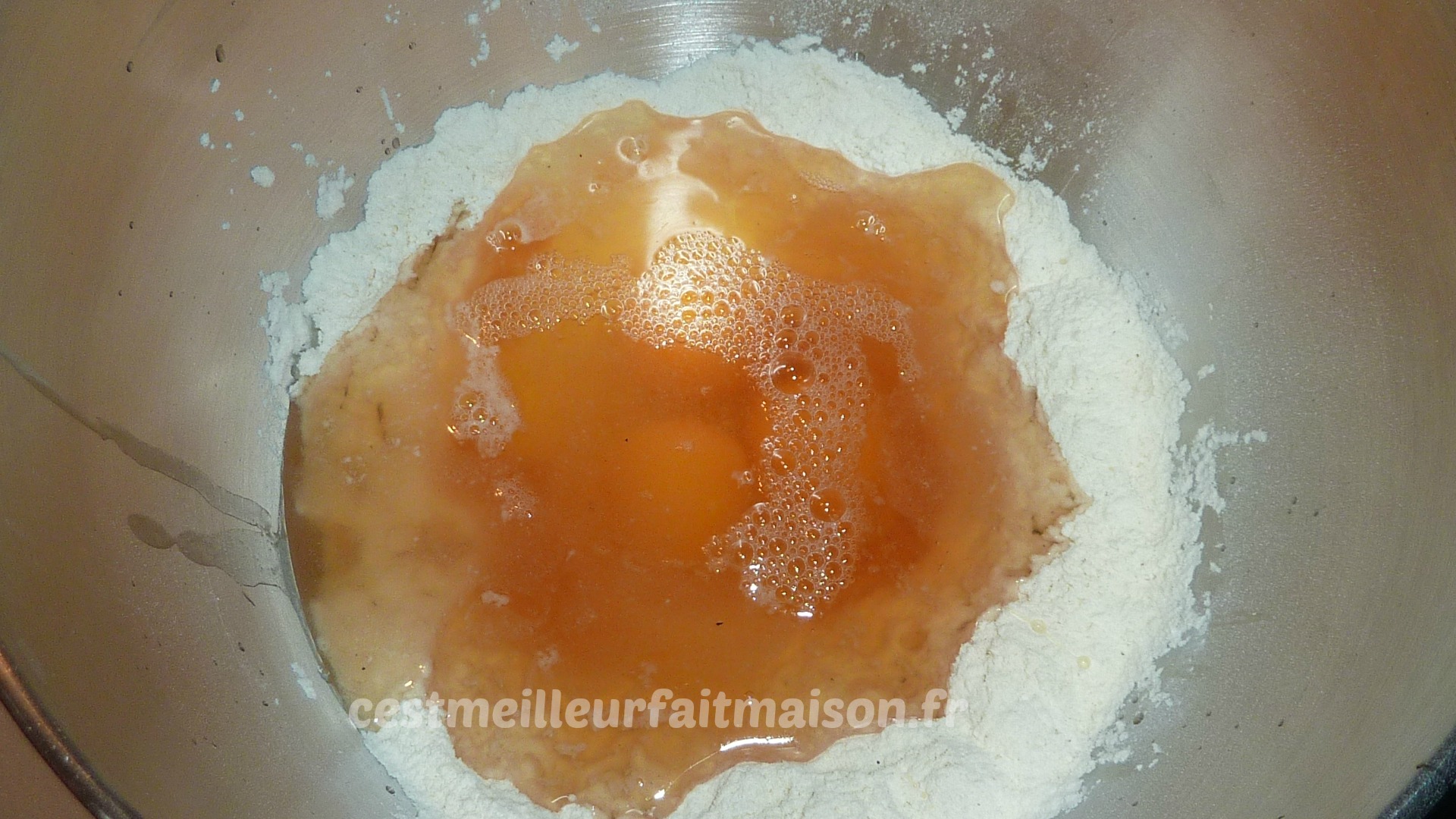 1- Dans un saladier, mettre la farine, la levure, le sel, le poivre, les oeufs, le vin et le porto. Bien mélanger.