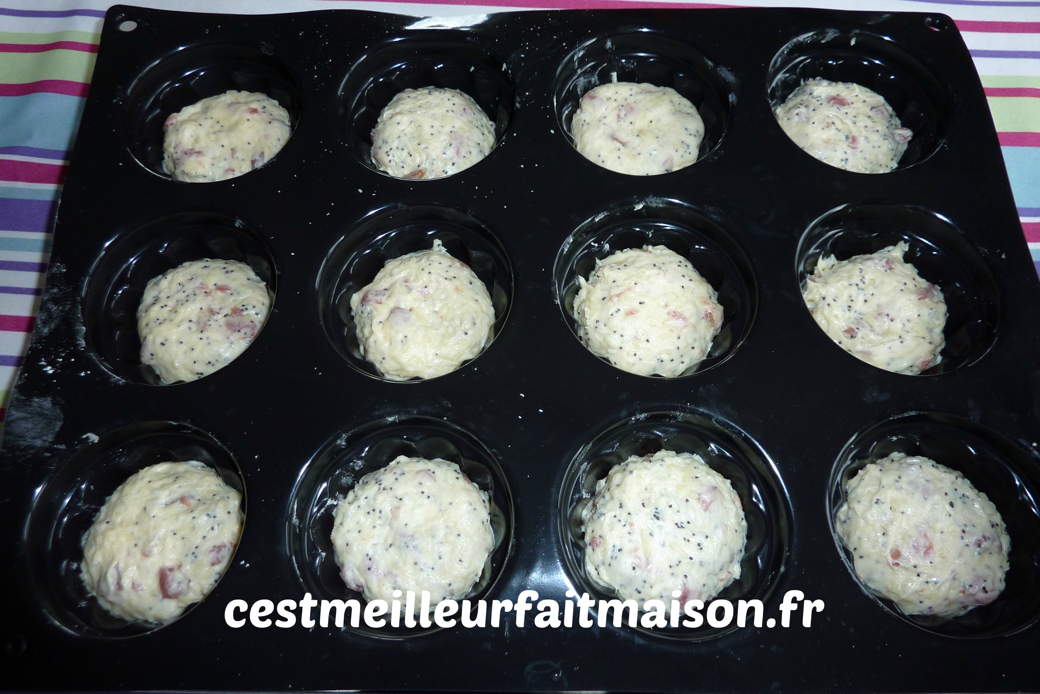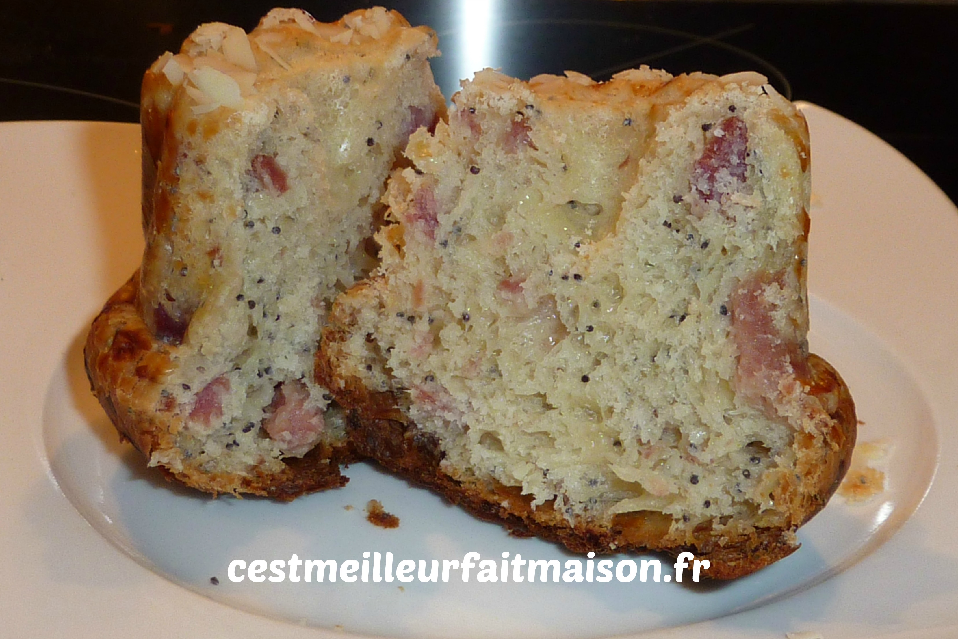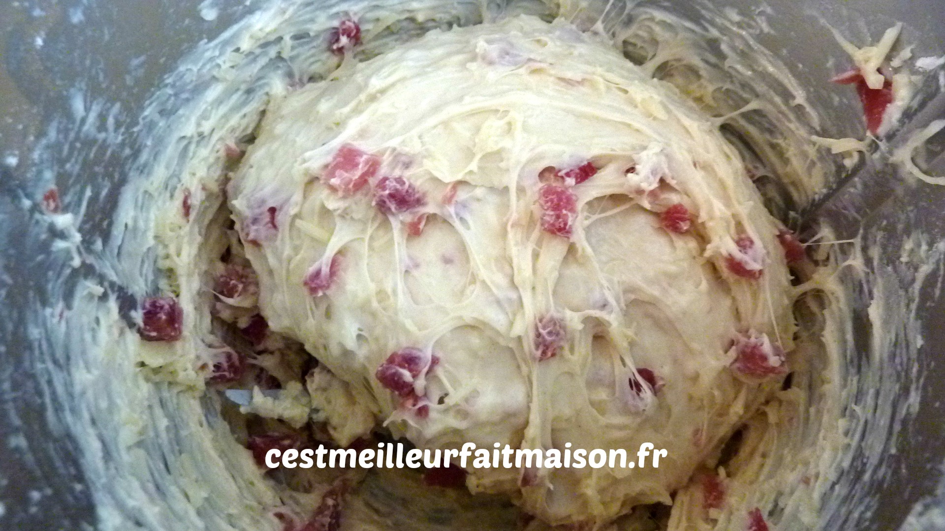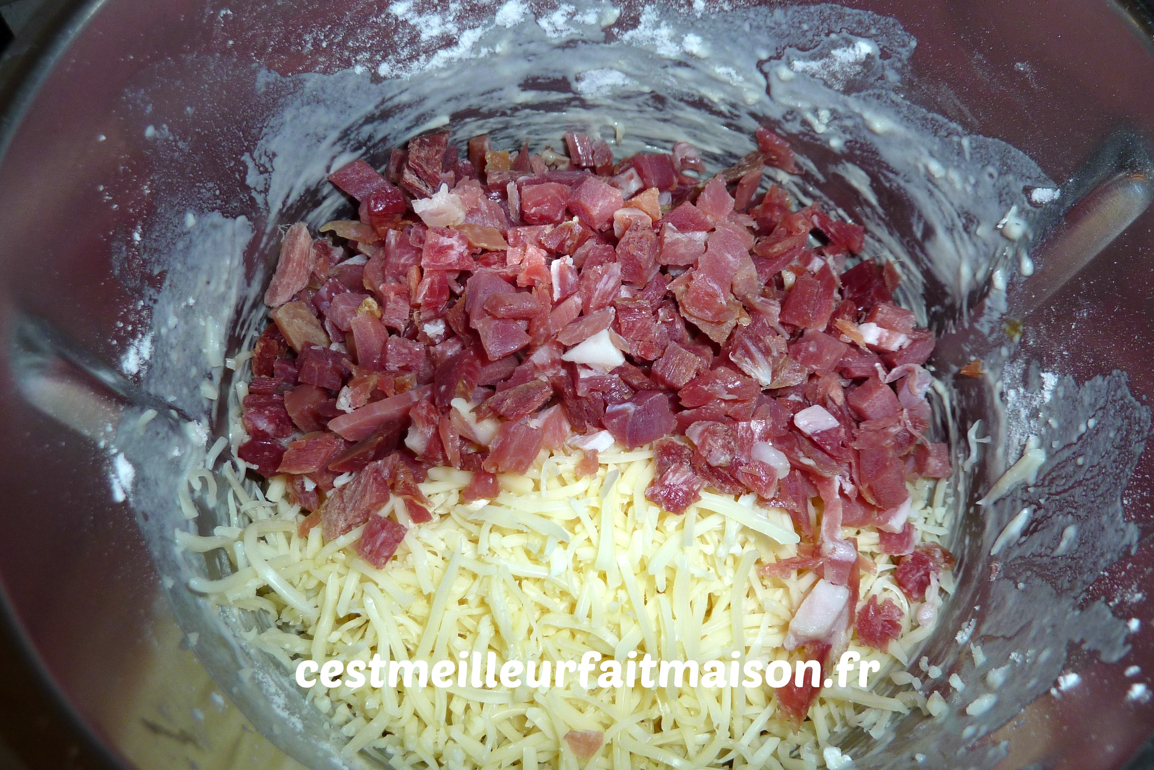 4- Ajouter le fromage, le jambon et les graines de pavot. Pétrir 1 min afin que tout soit bien intégré dans la pâte.