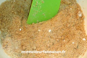 4- Dans un saladier, mélanger la poudre de noisette avec la farine et la levure.