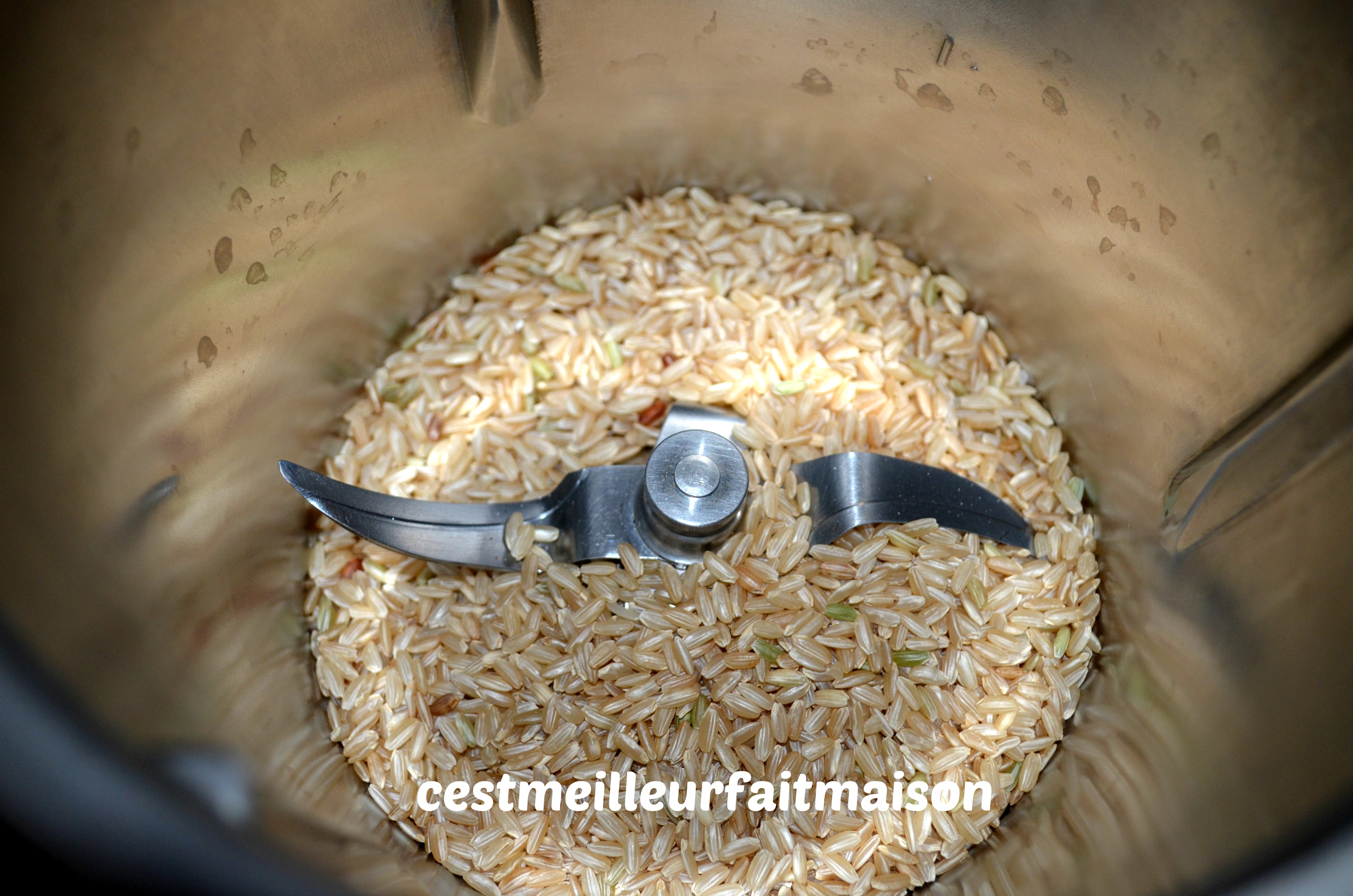 Je fais tout au Thermomix et c’est pour cette raison que je n’achète jamais de farine de riz. Je la fais moi-même 🙂 .