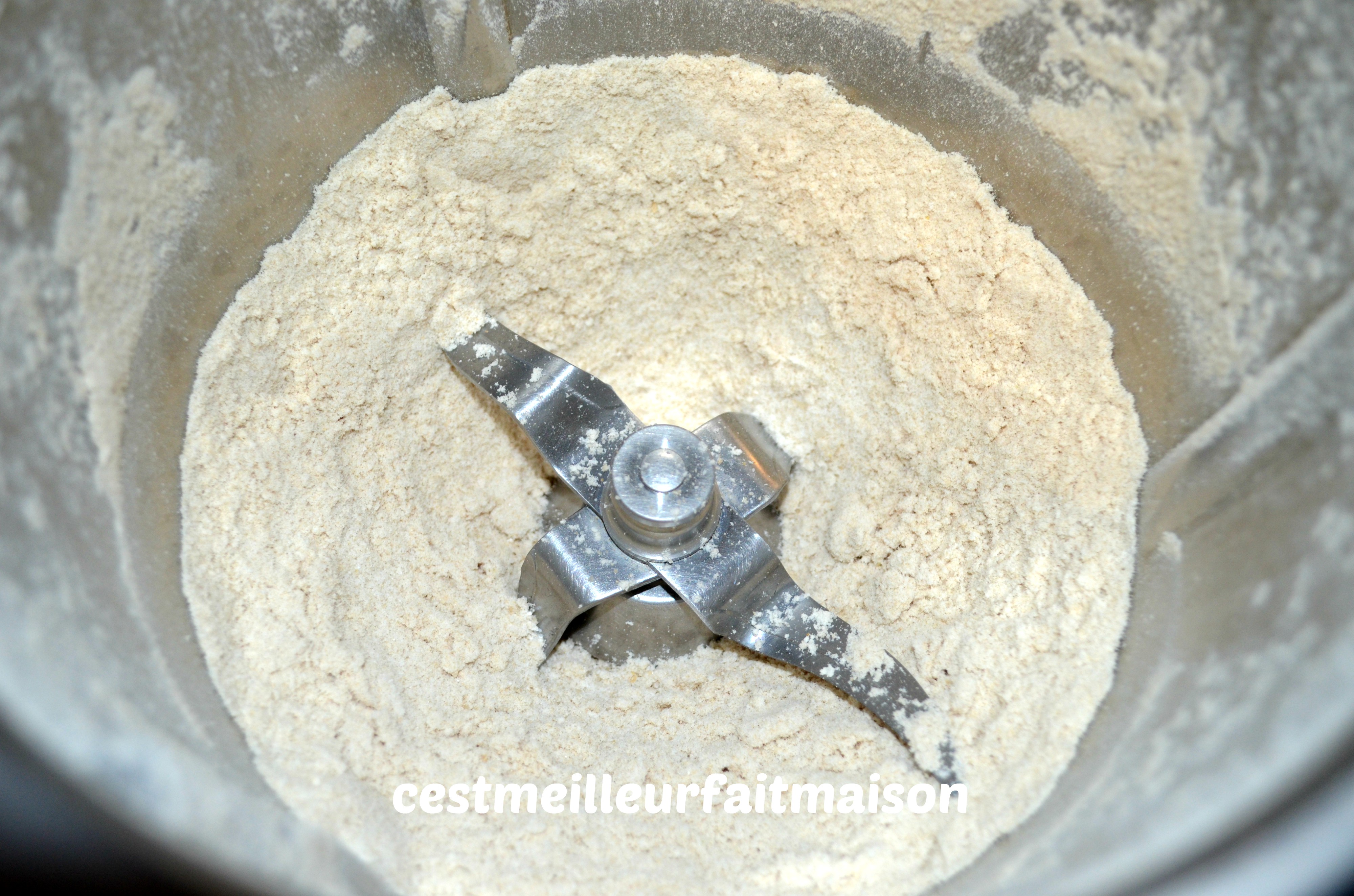 1- Commencer par faire la farine de riz en mixant 10 sec/Vit 10. Recommencer l’opération si la farine n’est pas assez fine.