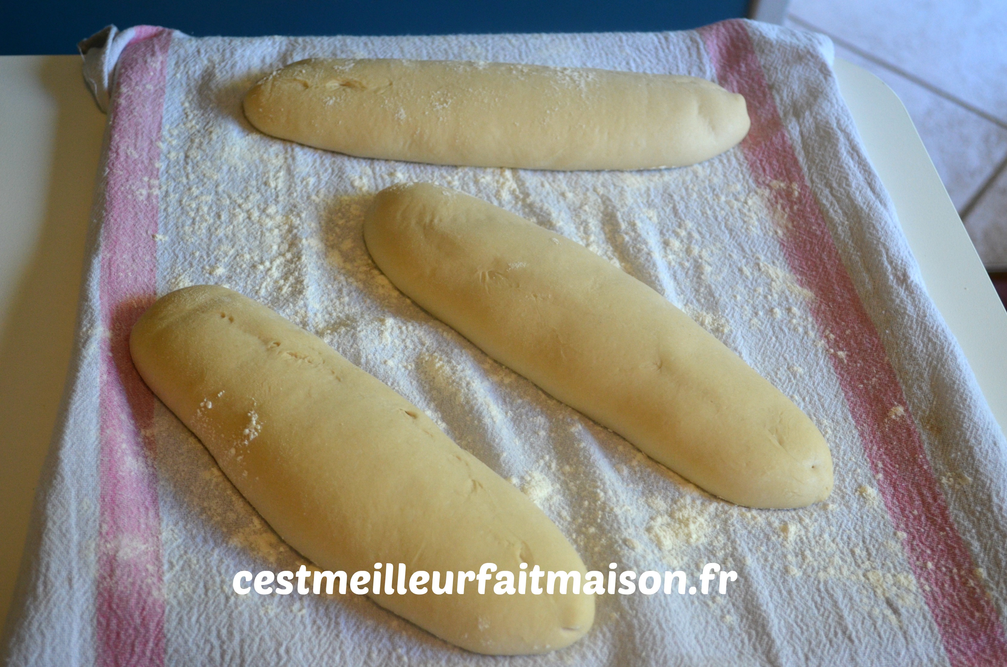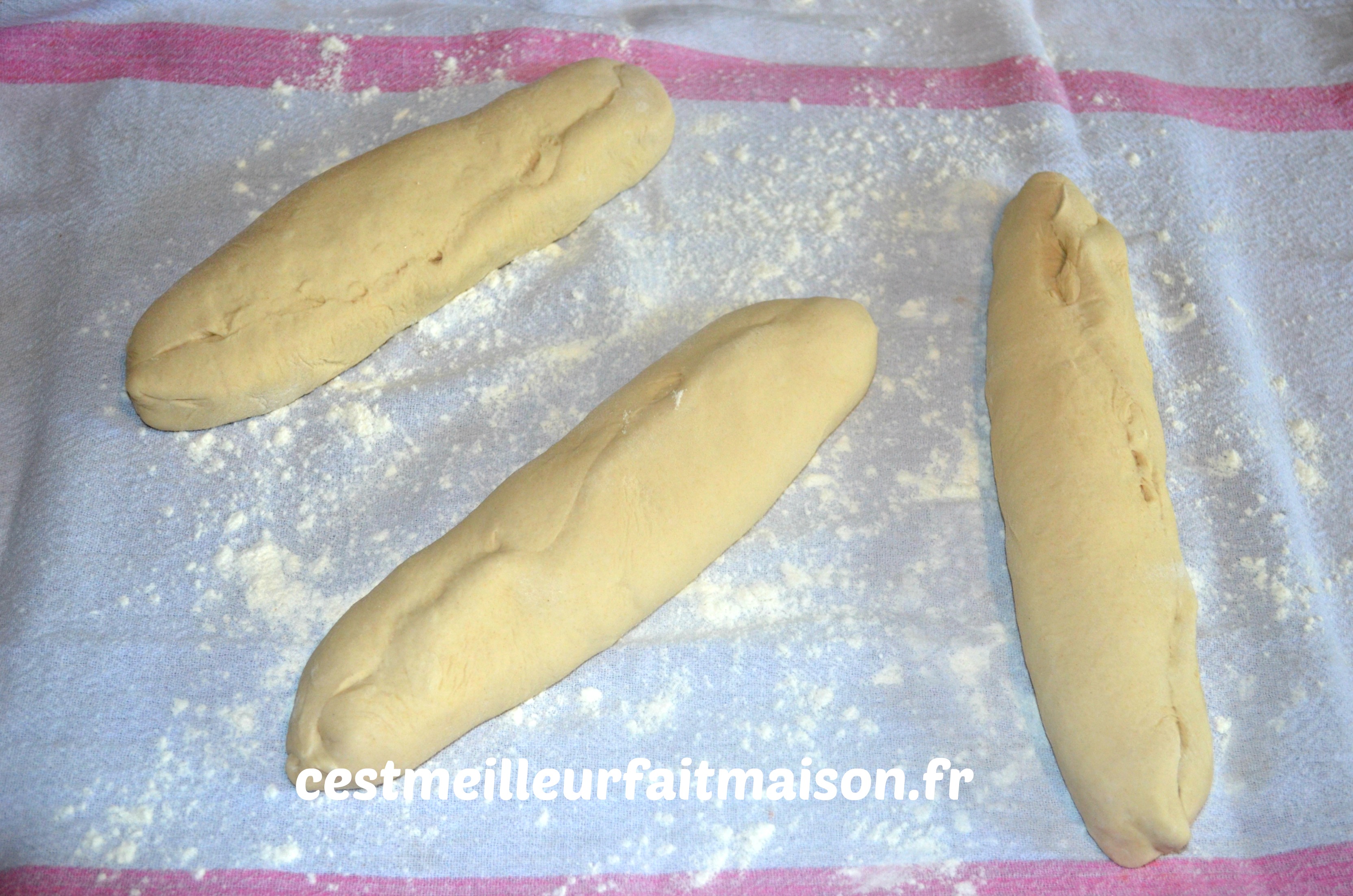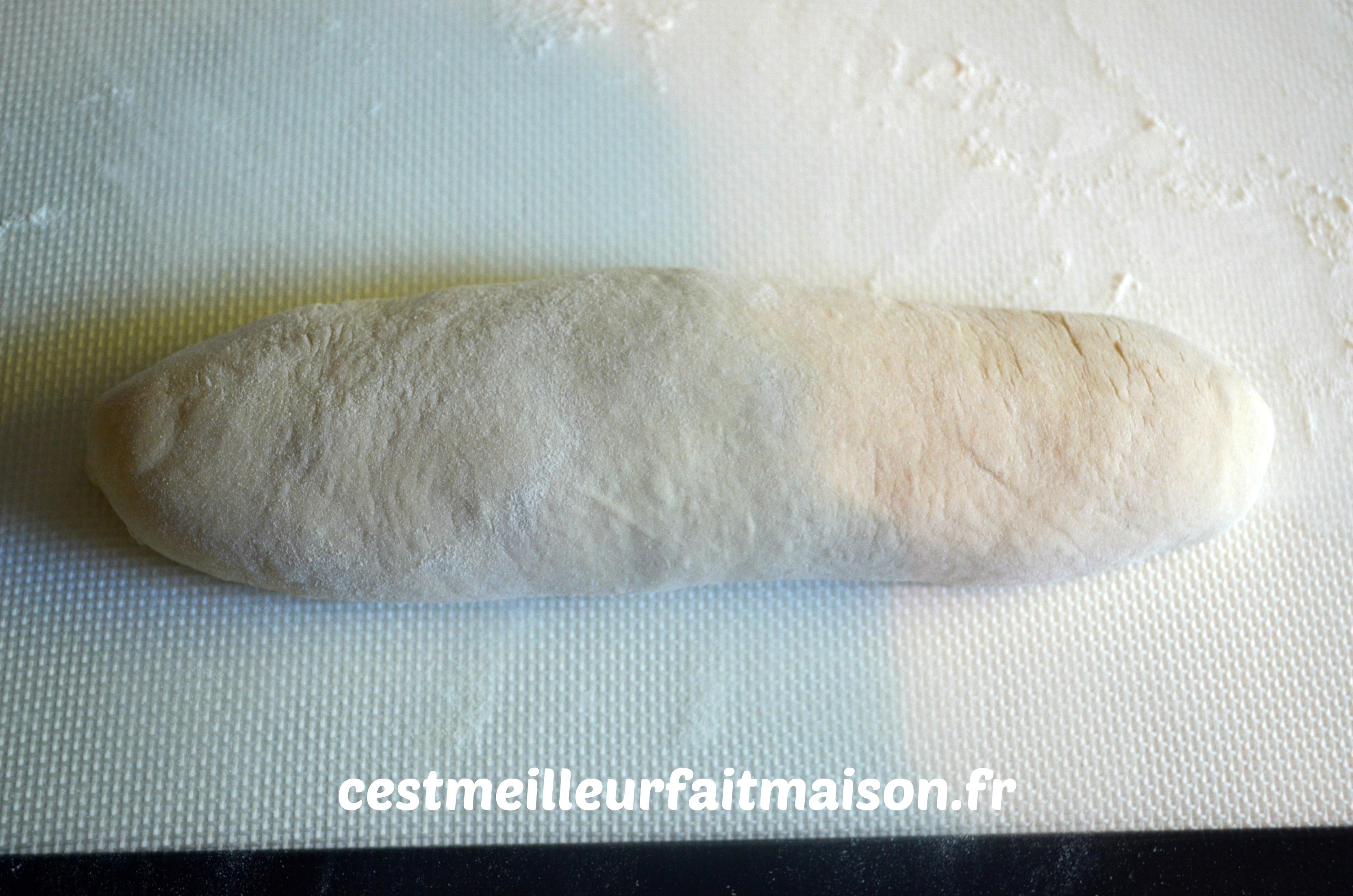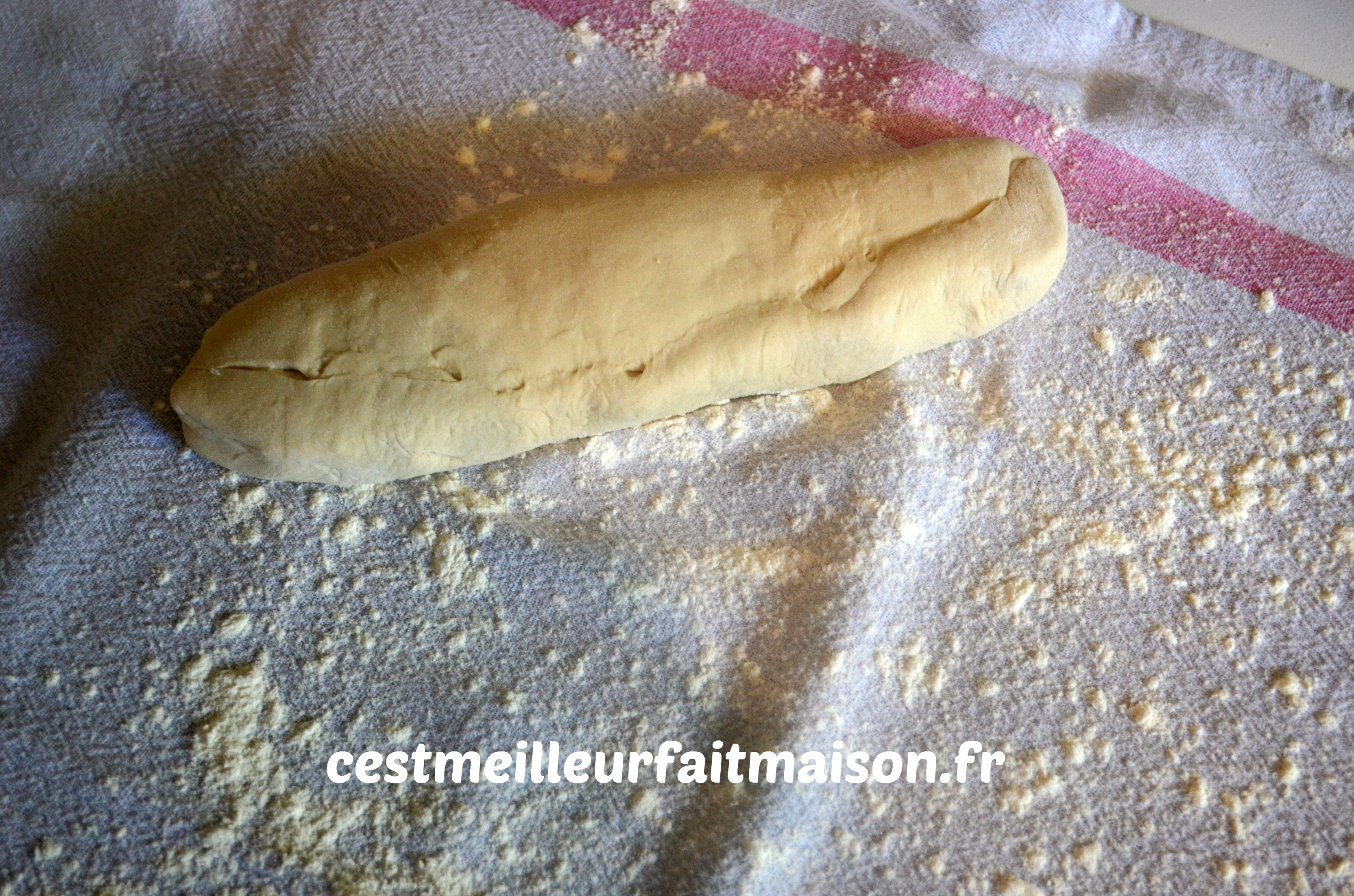Rouler le pâton pour obtenir la forme désirée. J’ai choisi de les former en bâtard mais on peut aussi faire des baguettes.