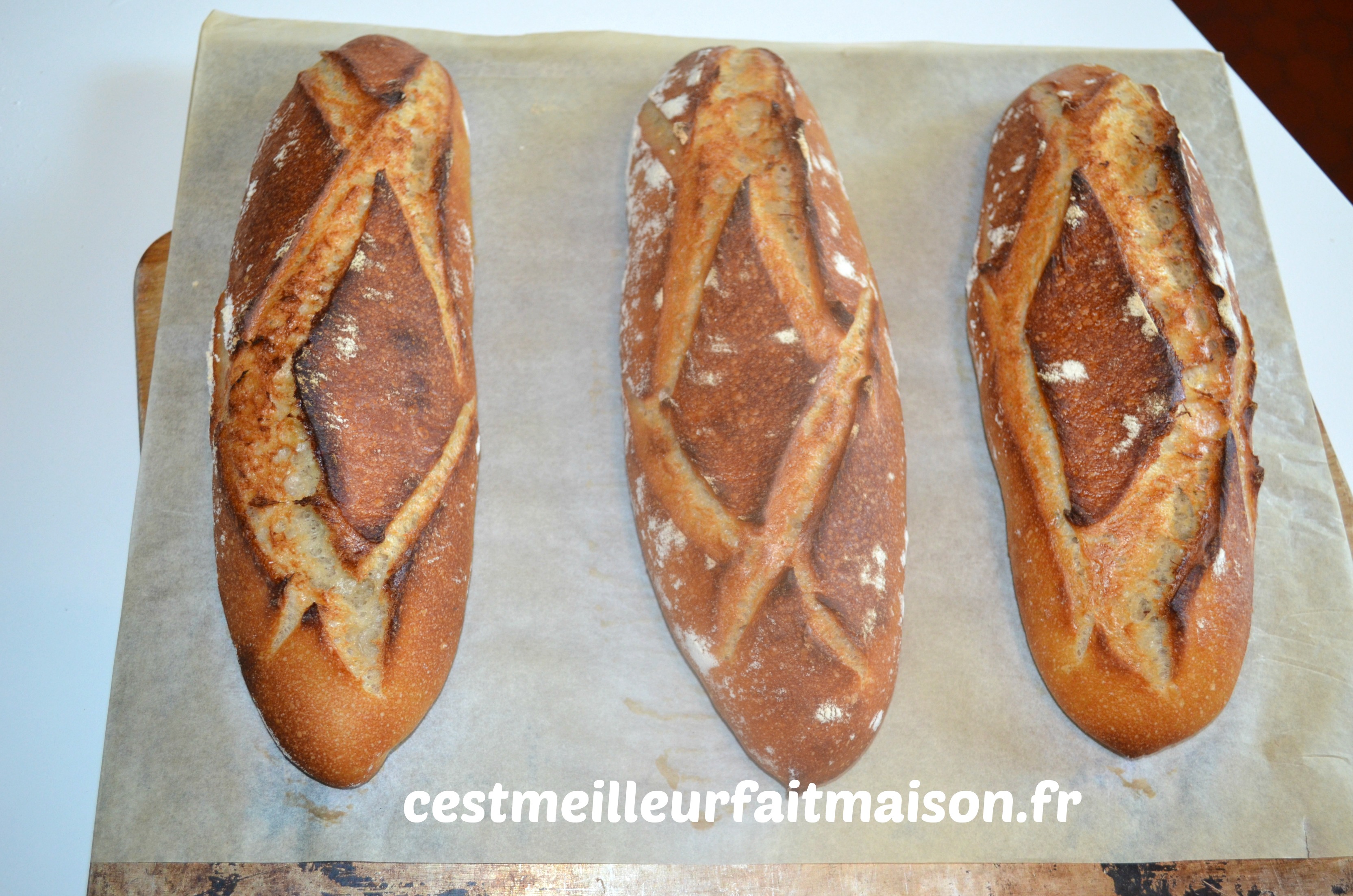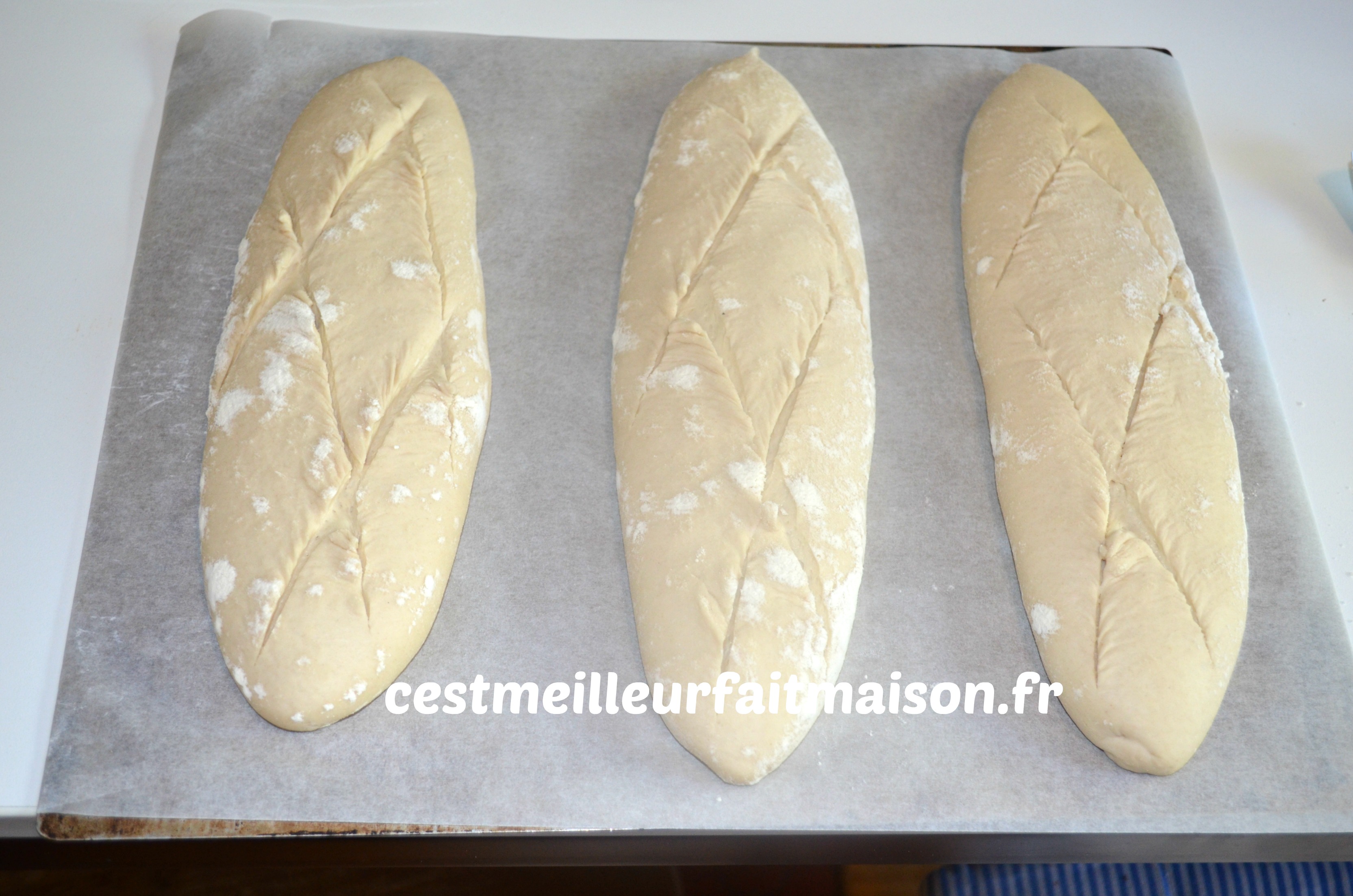 7- Retourner les pâtons, soudure en dessous, sur une plaque recouverte de papier cuisson. Lamer les pains.