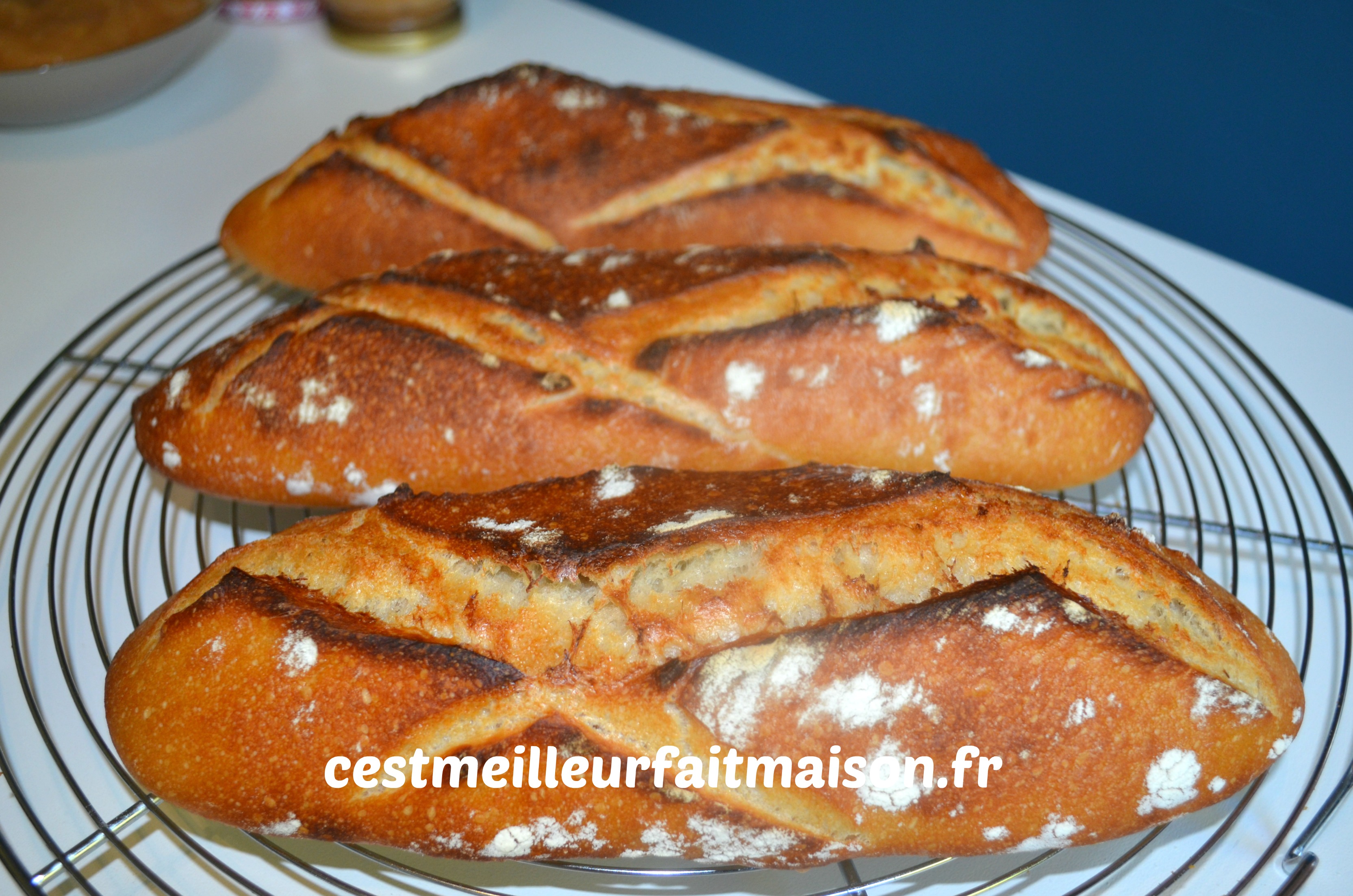 Juste avant d’enfourner, verser 5 cl d’eau sur la plaque chaude. Faire cuire les pains pendant 25 à 30 min à surveiller. Les laisser refroidir sur une grille.