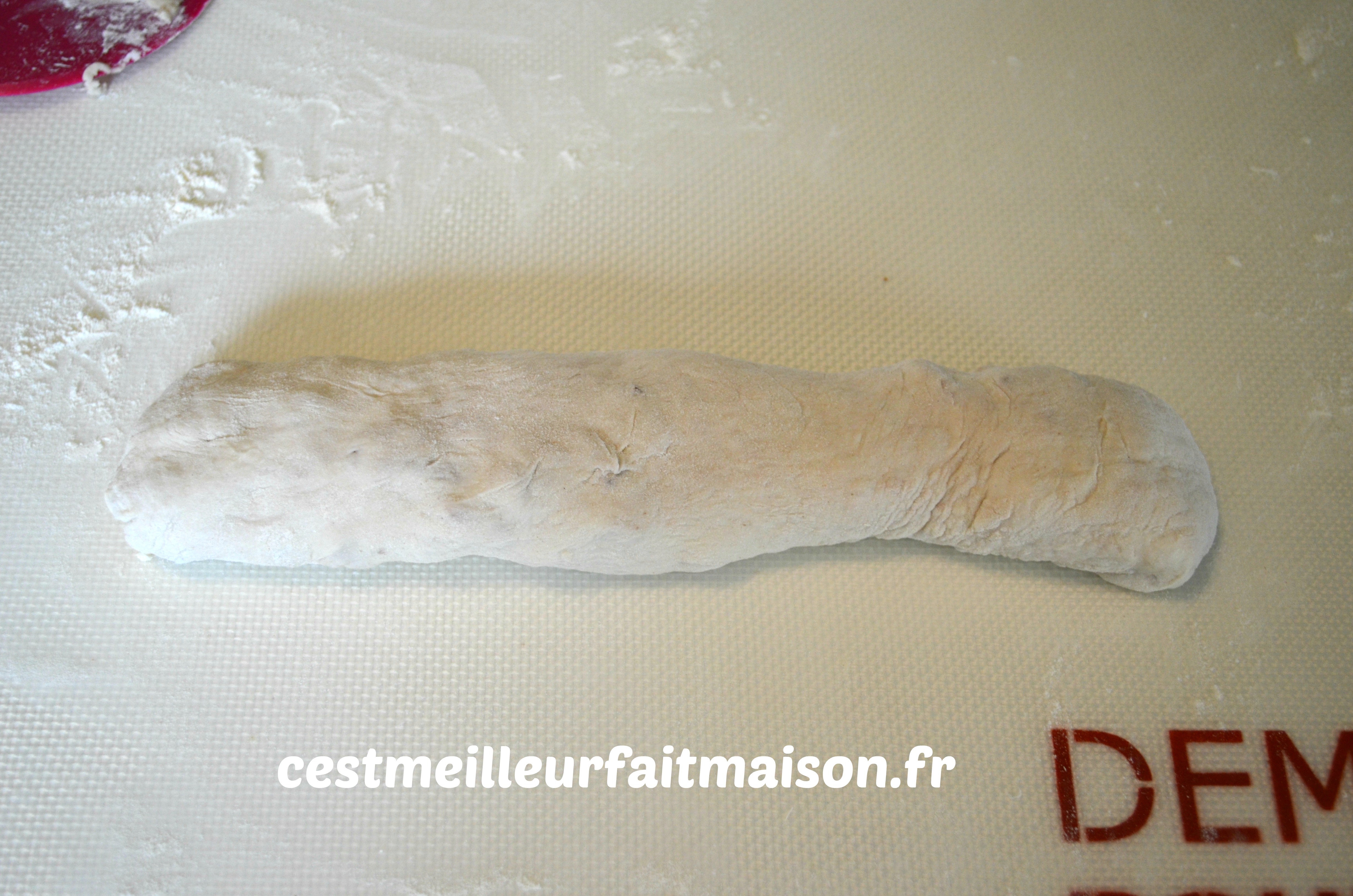 Le faire rouler sous les mains de façon à l’allonger jusqu’à 20 cm environ. Faire de même avec les autres pâtons.