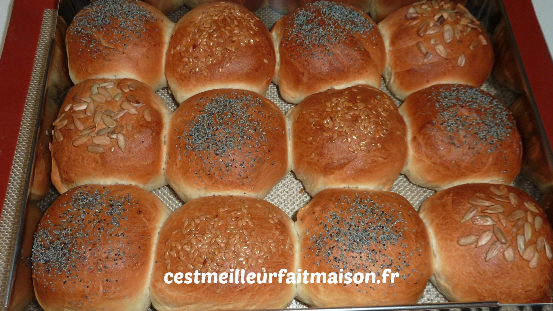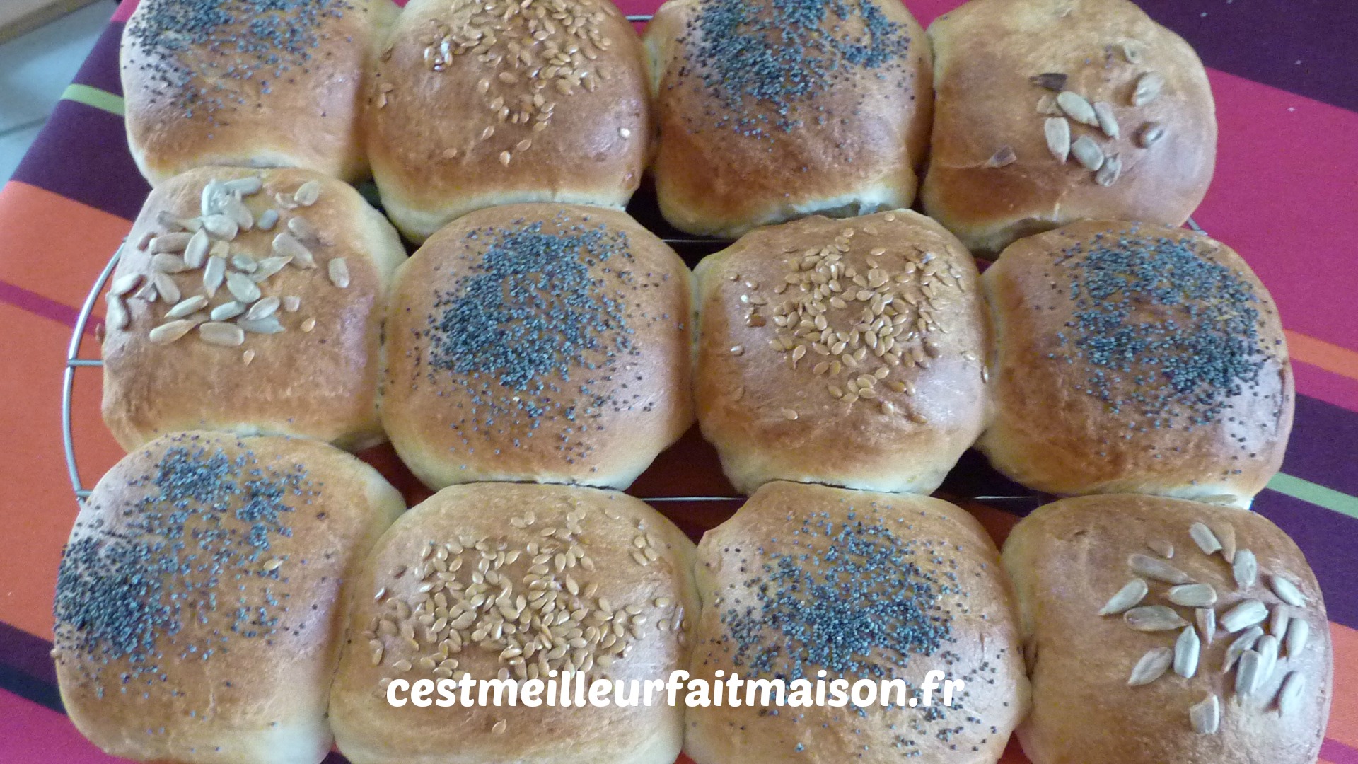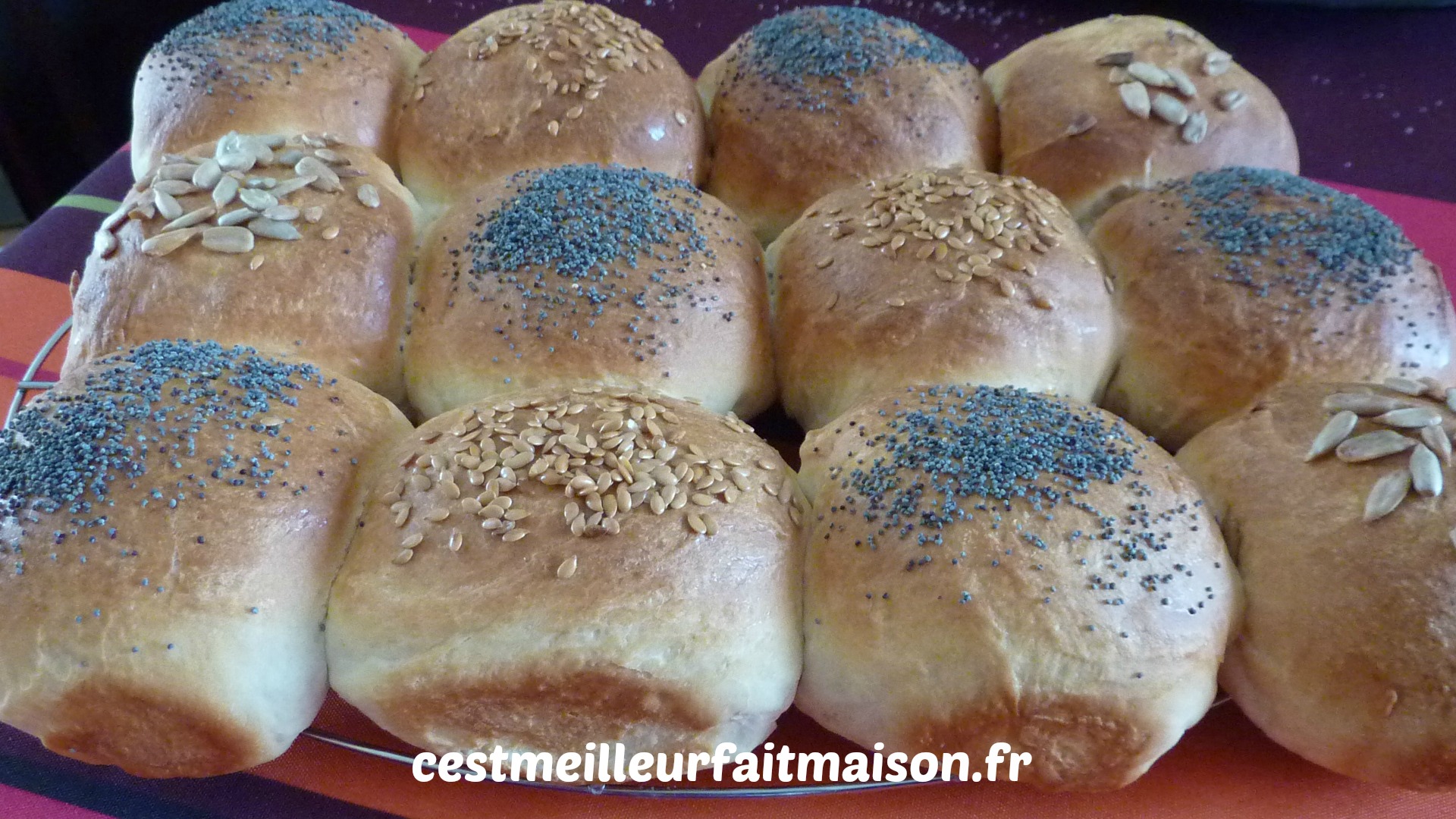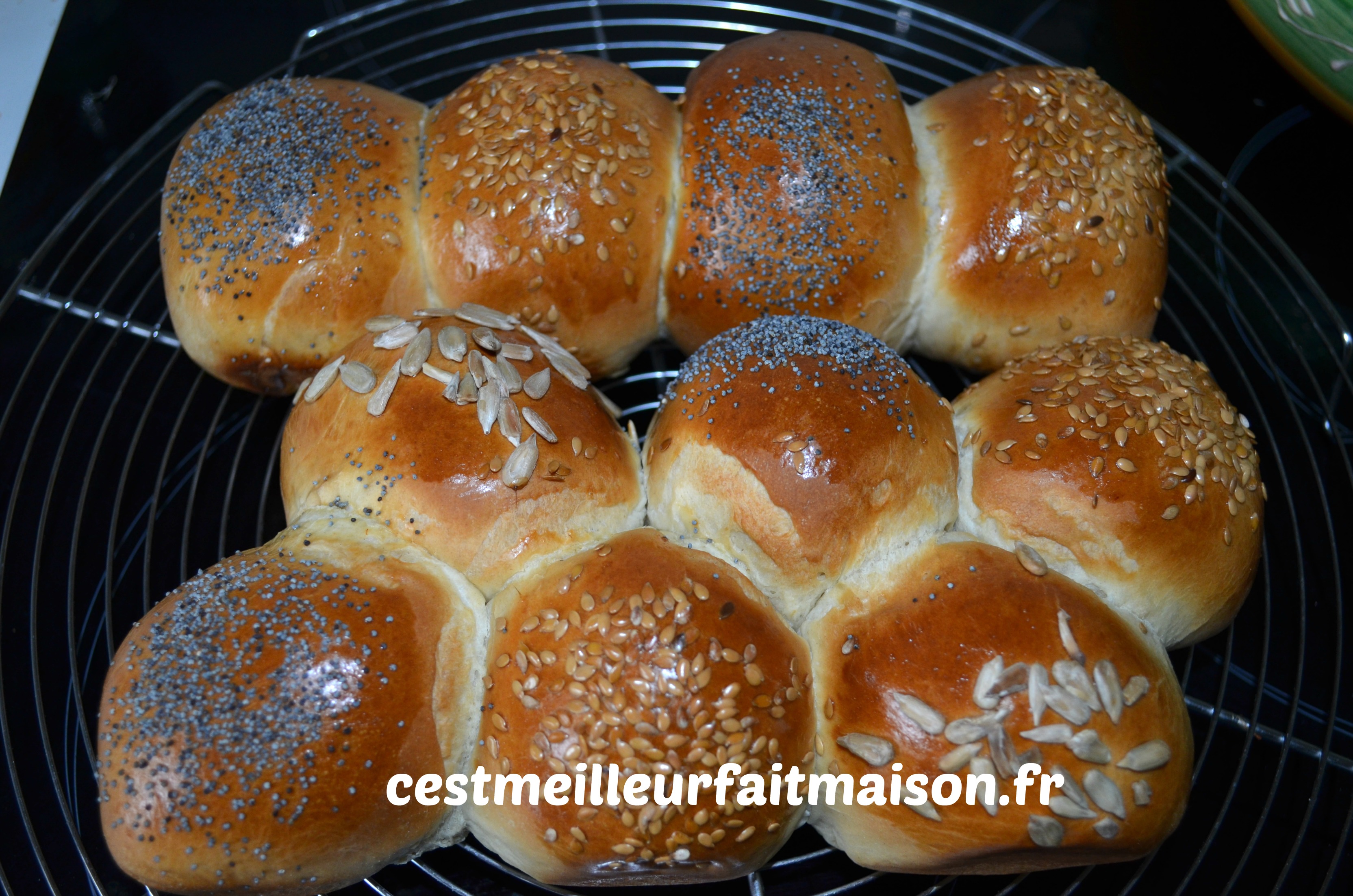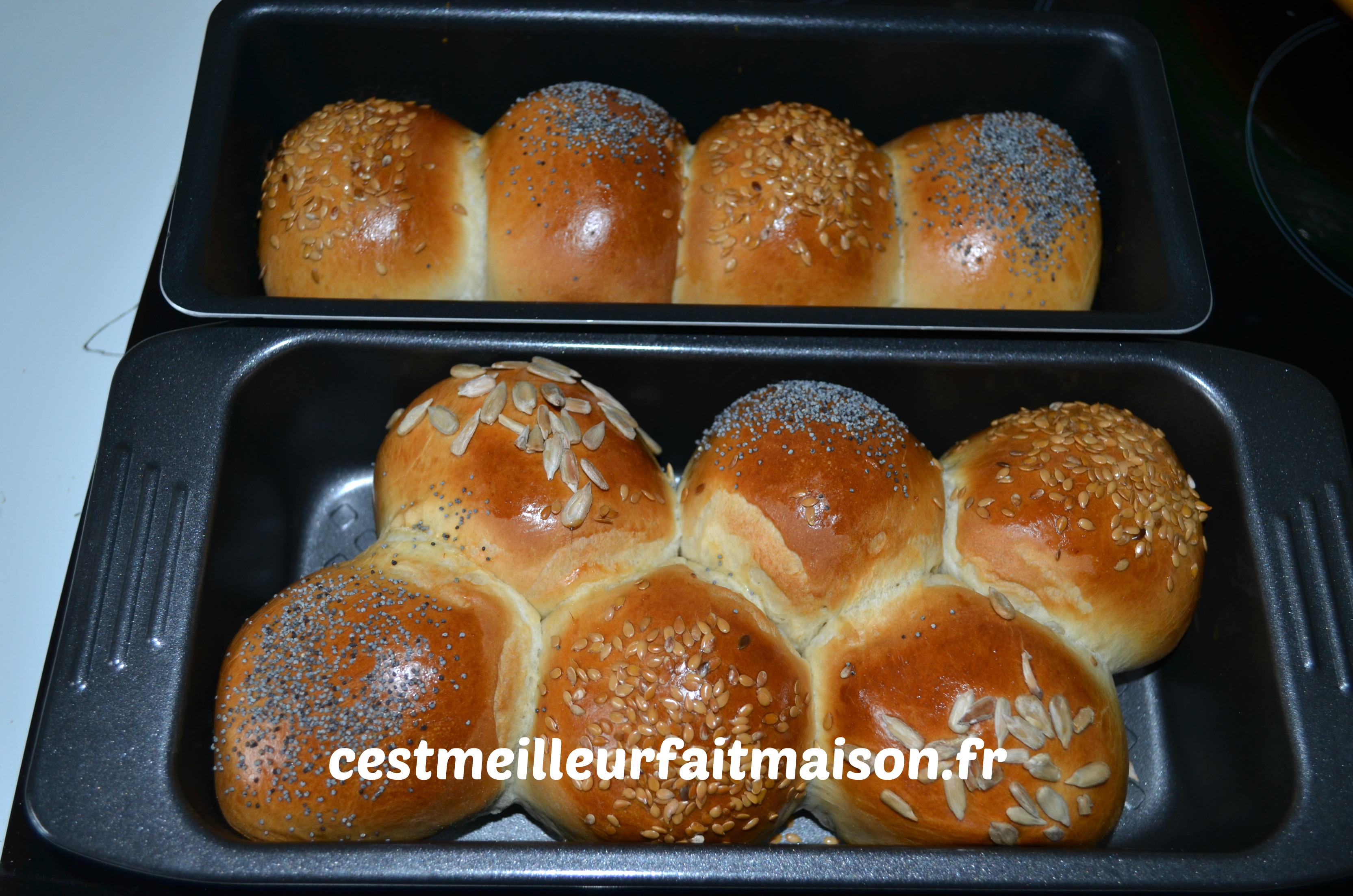 Insert du 11/03/15: J’ai refait ces pains en les dorant à l’œuf et les pains sont beaucoup plus appétissant qu’en les dorant au beurre.
