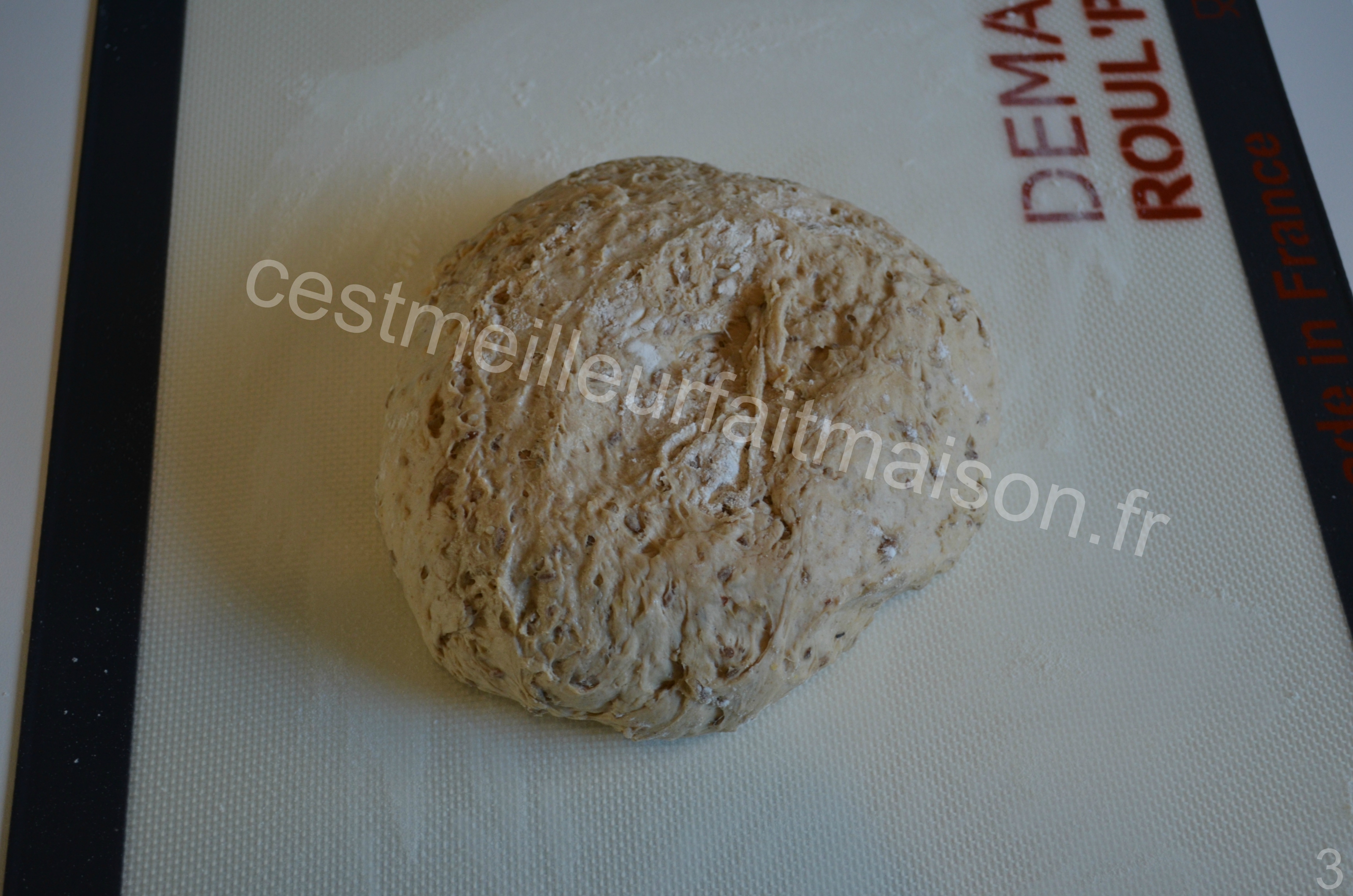 3-Rassembler la pâte et la laisser pousser environ 1 heure dans un saladier fariné.