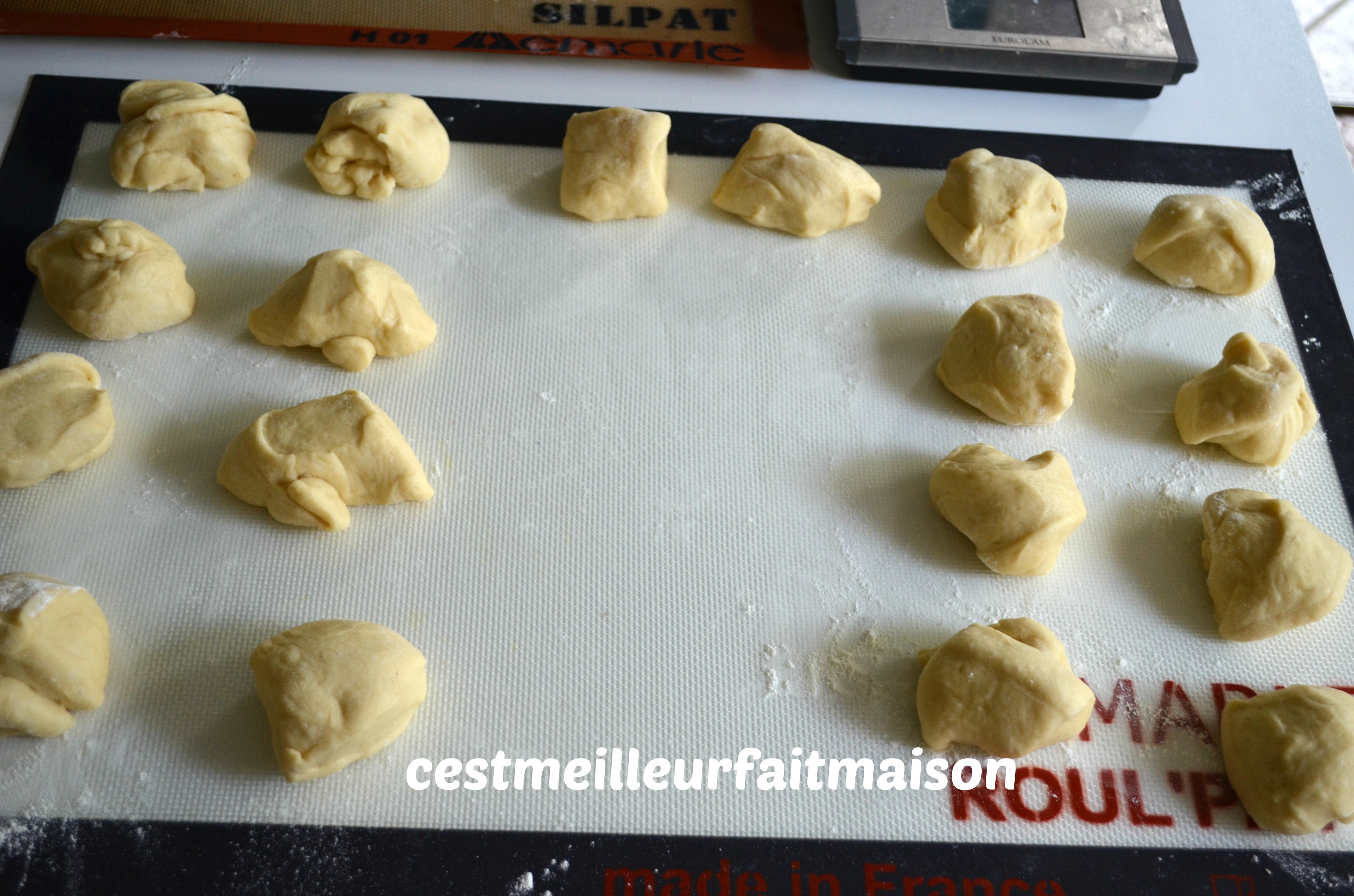 5- Façonner des petits pains de 50 g chacun environ et les laisser reposer au moins 45 min.