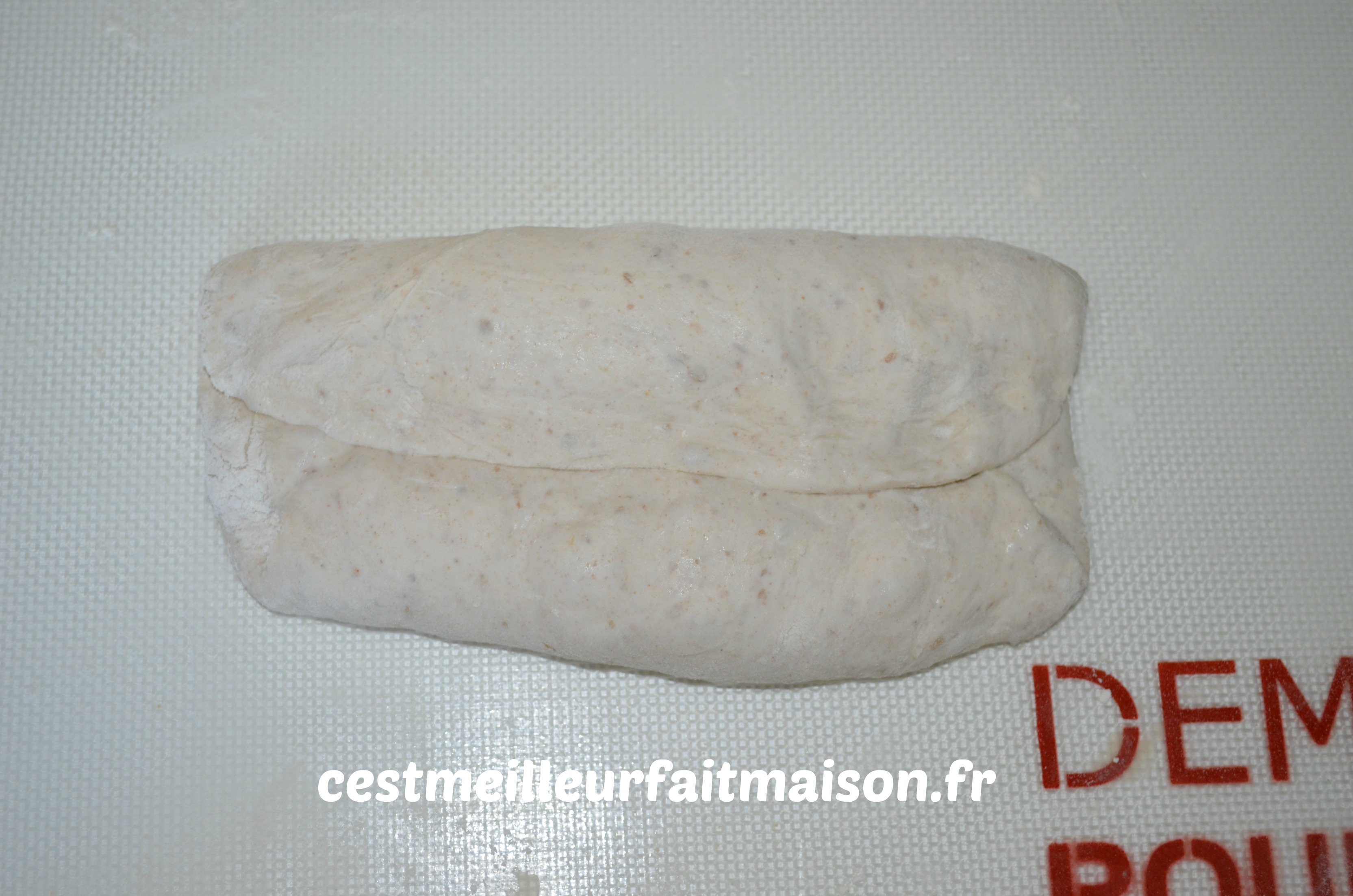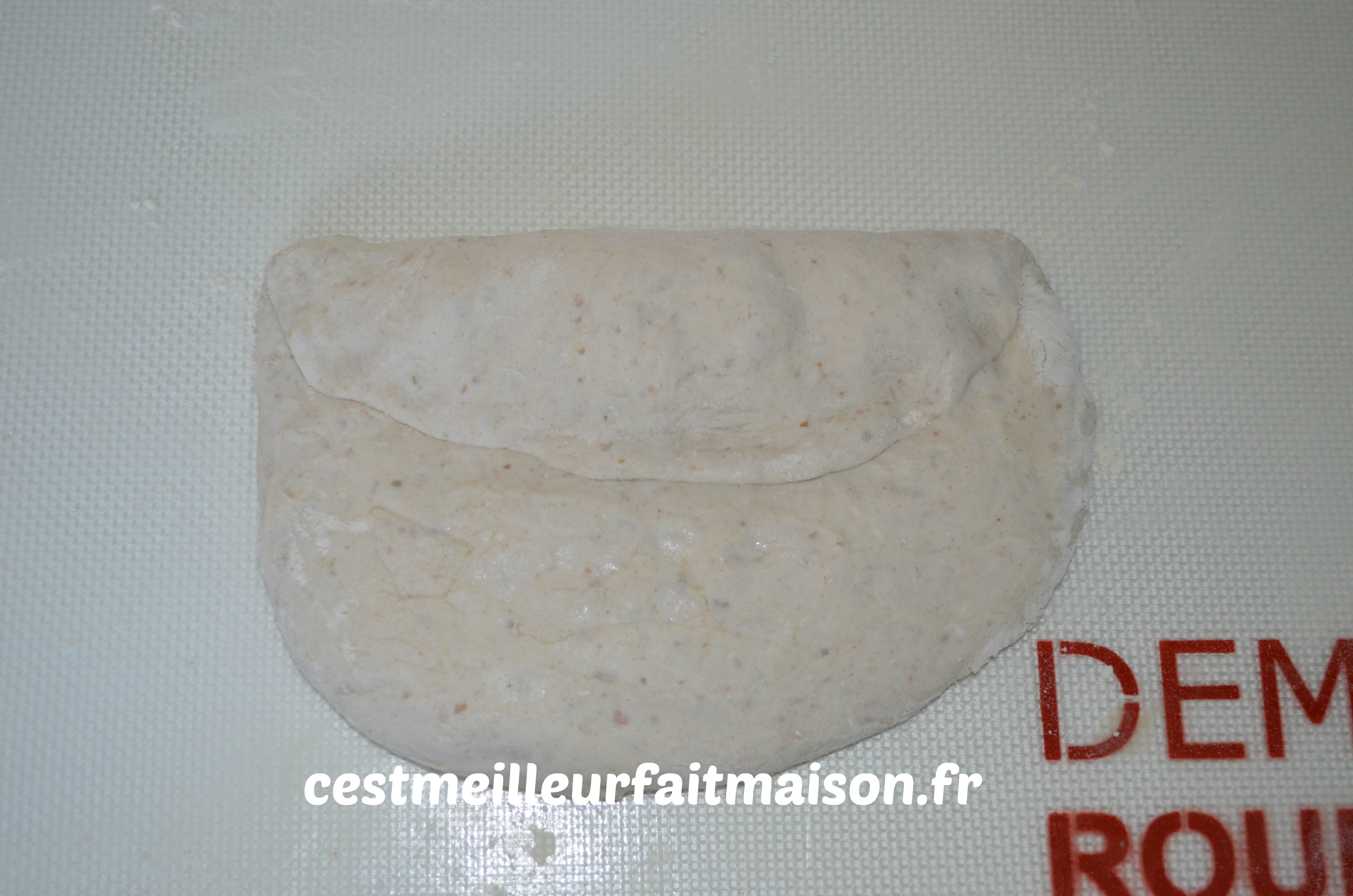 Plier le pâton en deux dans le sens de la longueur et souder les bords en appuyant avec la base de la main.