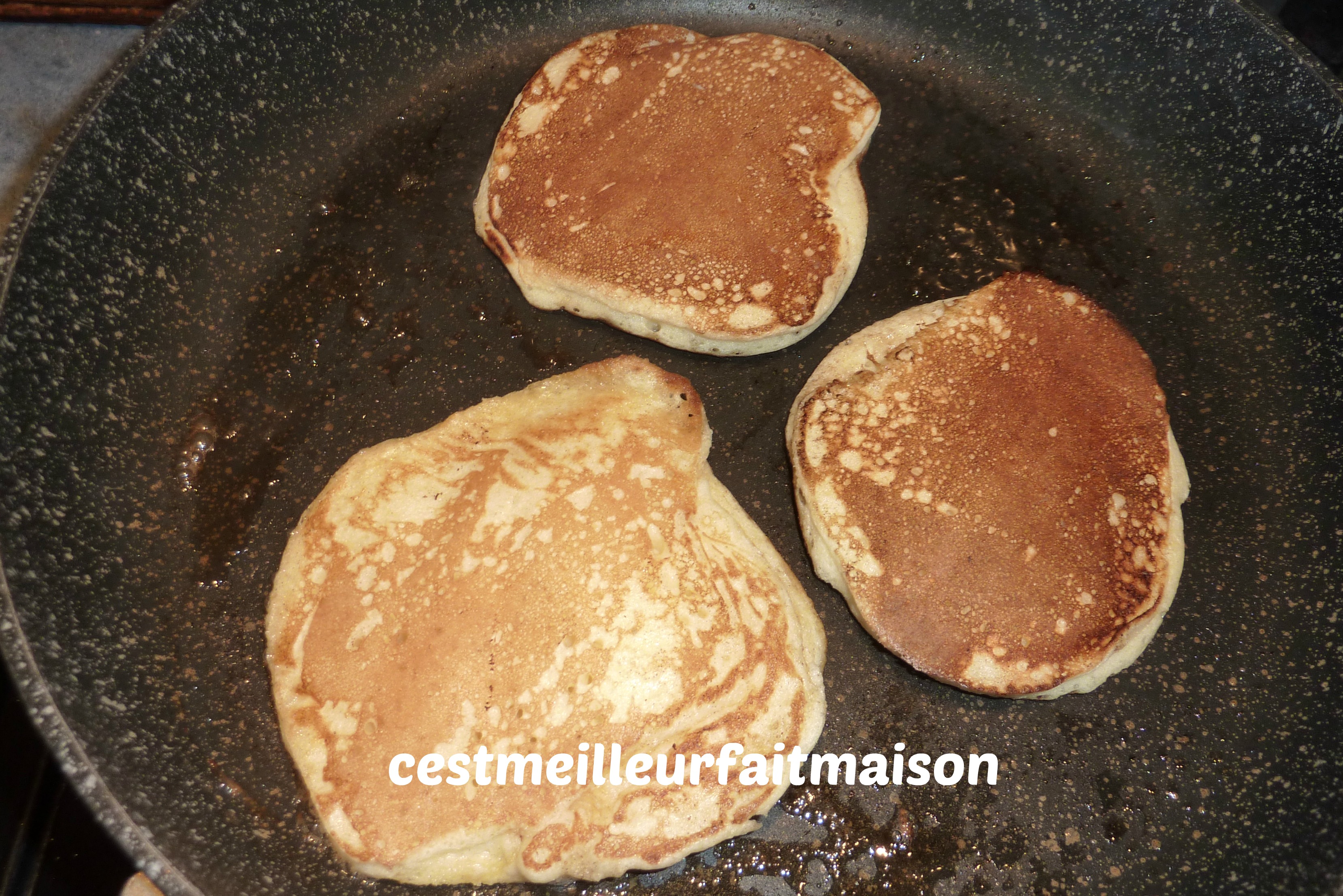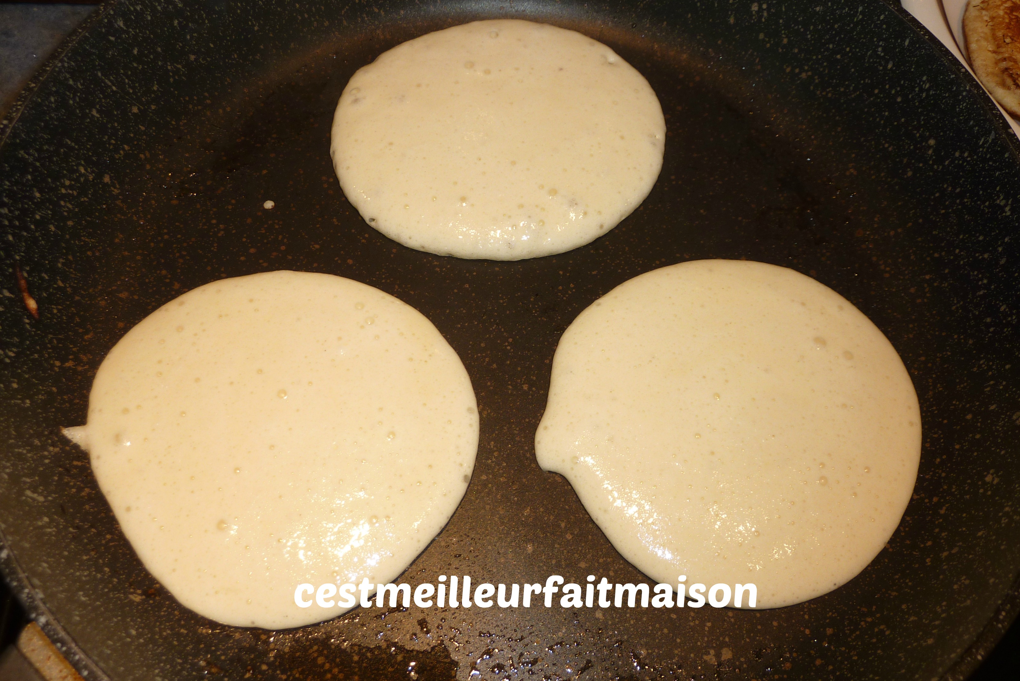 4- Faire chauffer un peu de beurre dans une poêle et cuire les pancakes environ 1 min de chaque côté.