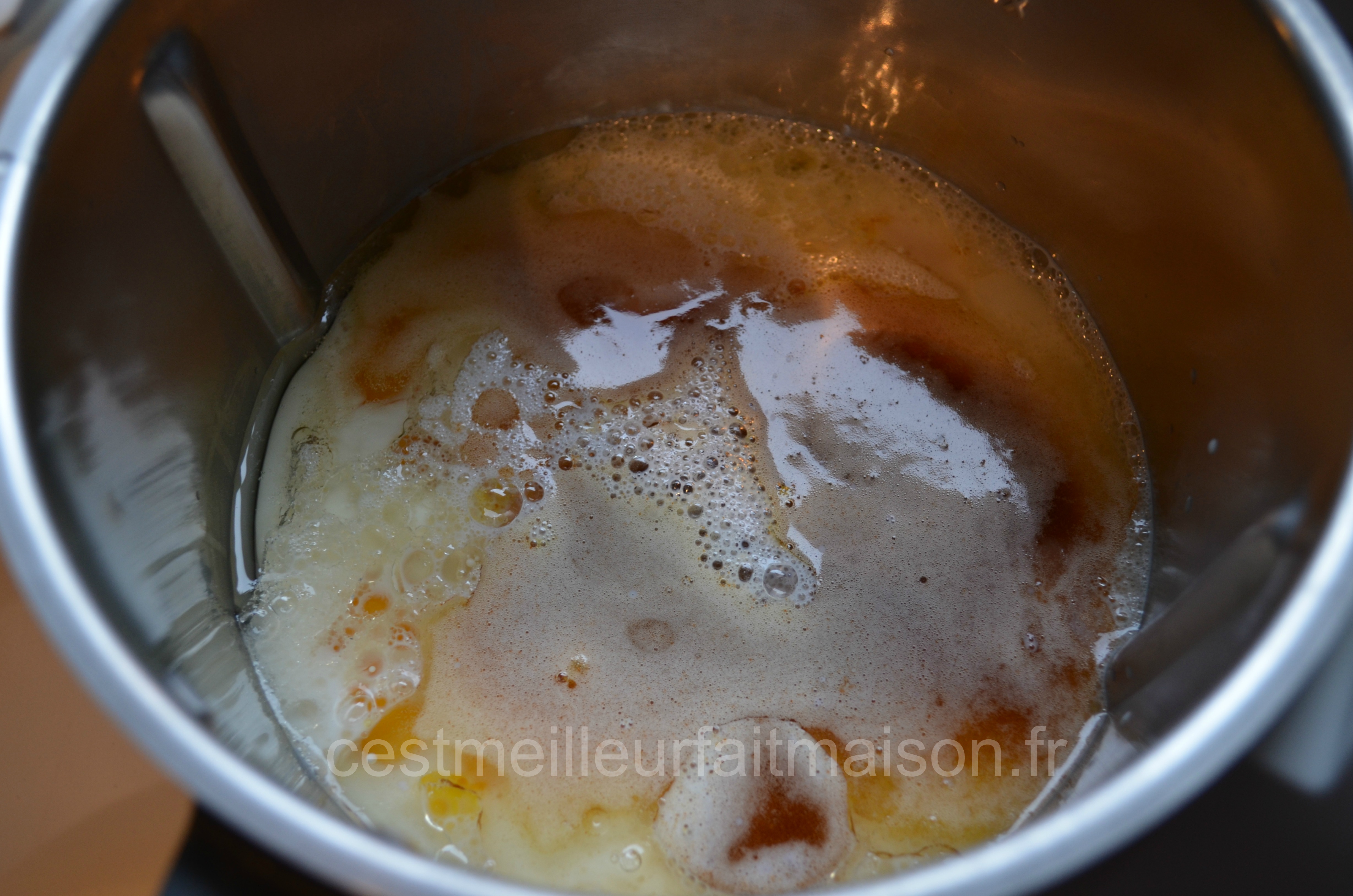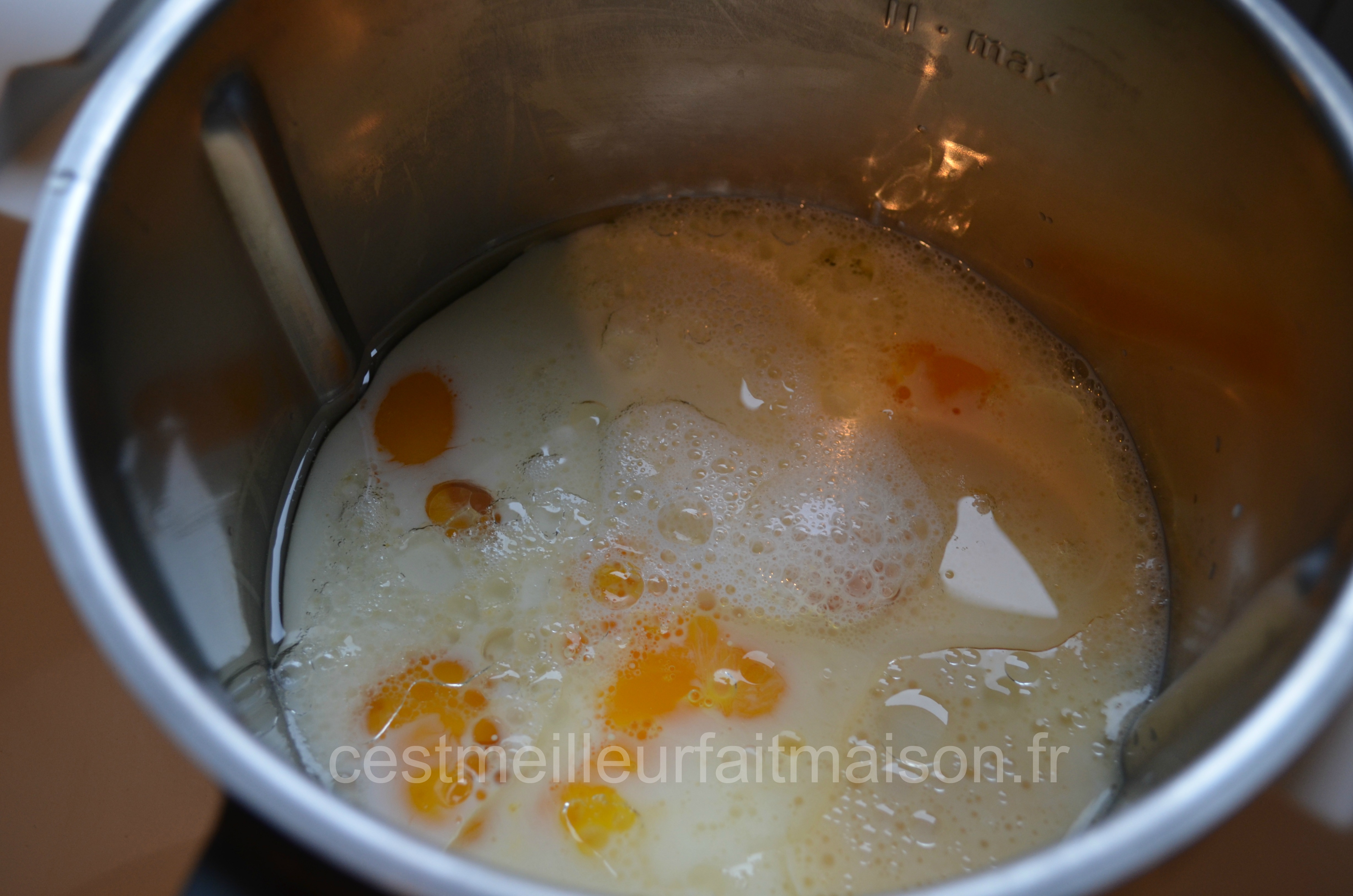 3- Mixer de façon à obtenir une pâte sans grumeaux (environ 30 sec/Vit 5). Verser dans un saladier et commencer la cuisson.