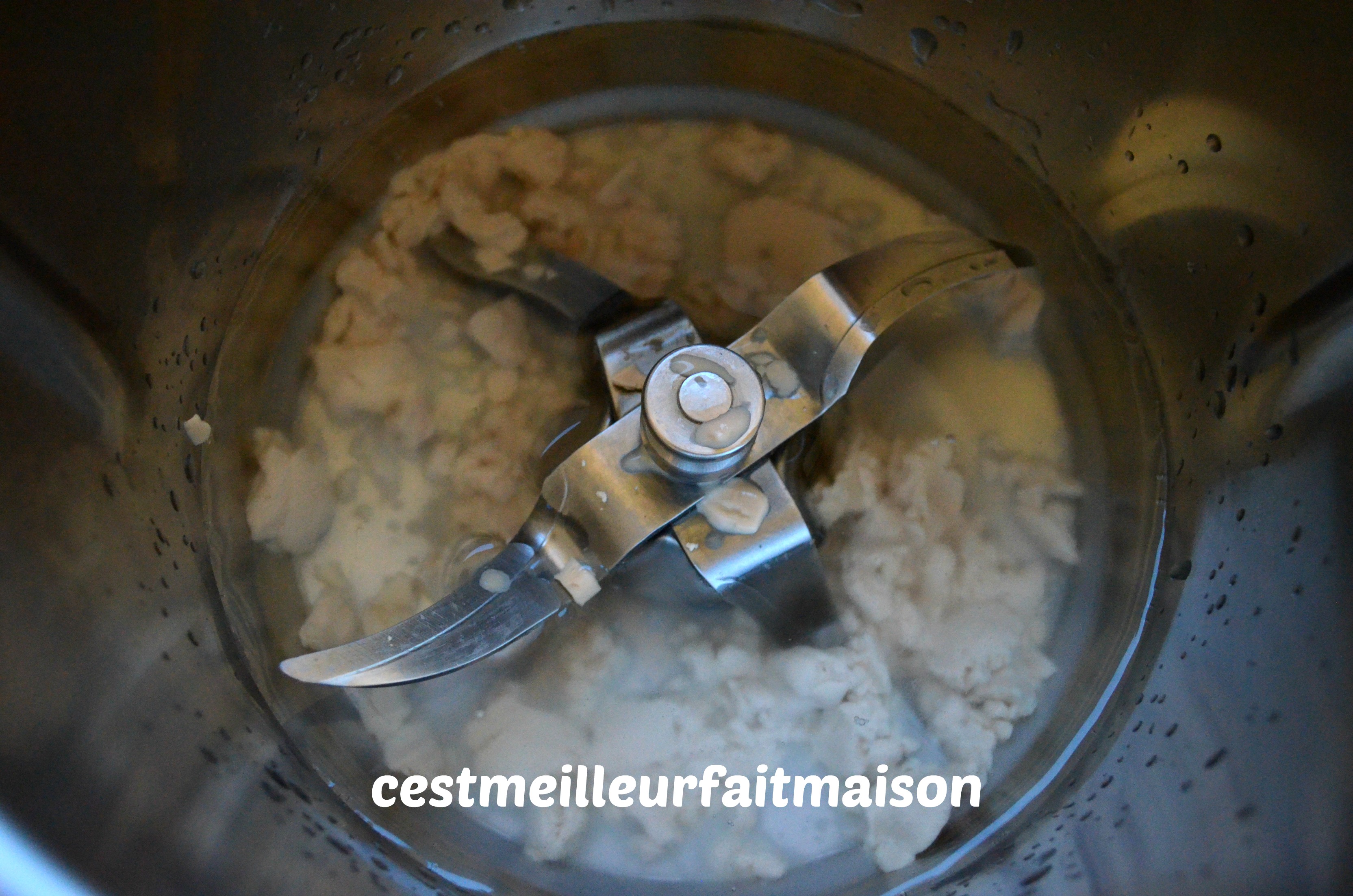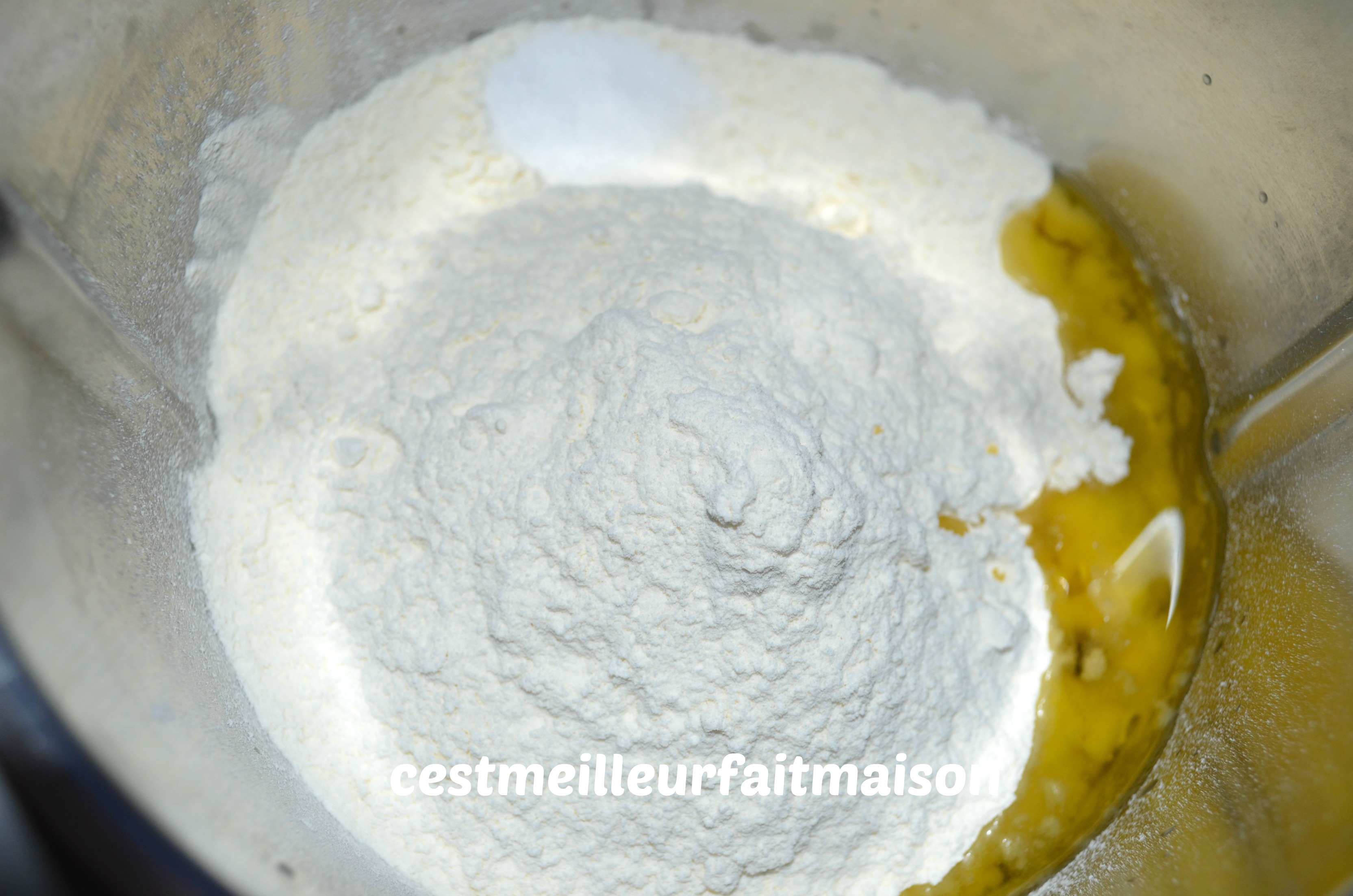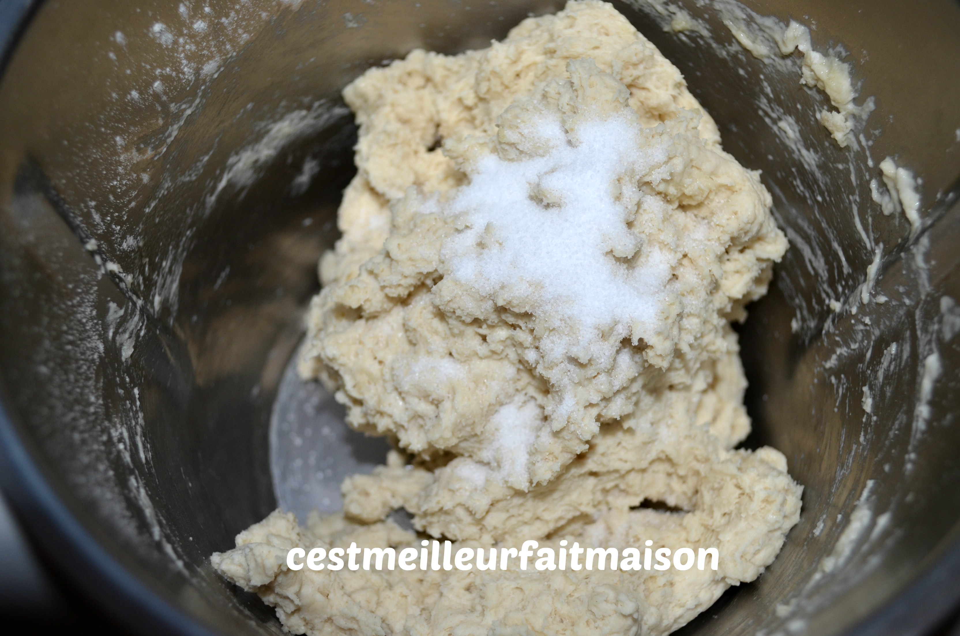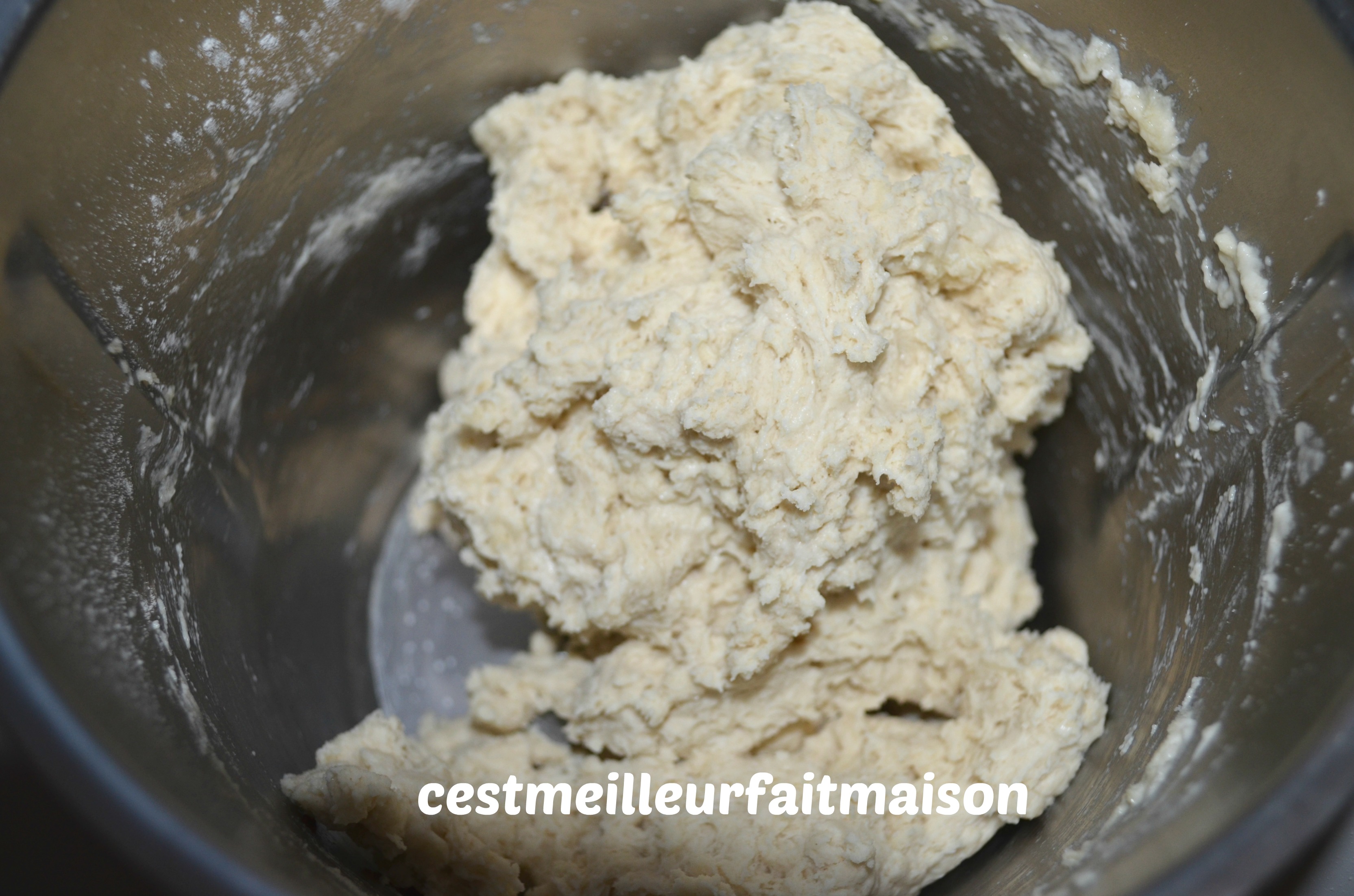 J’ai fait la pâte au Thermomix mais ça fonctionne aussi très bien avec un autre robot.