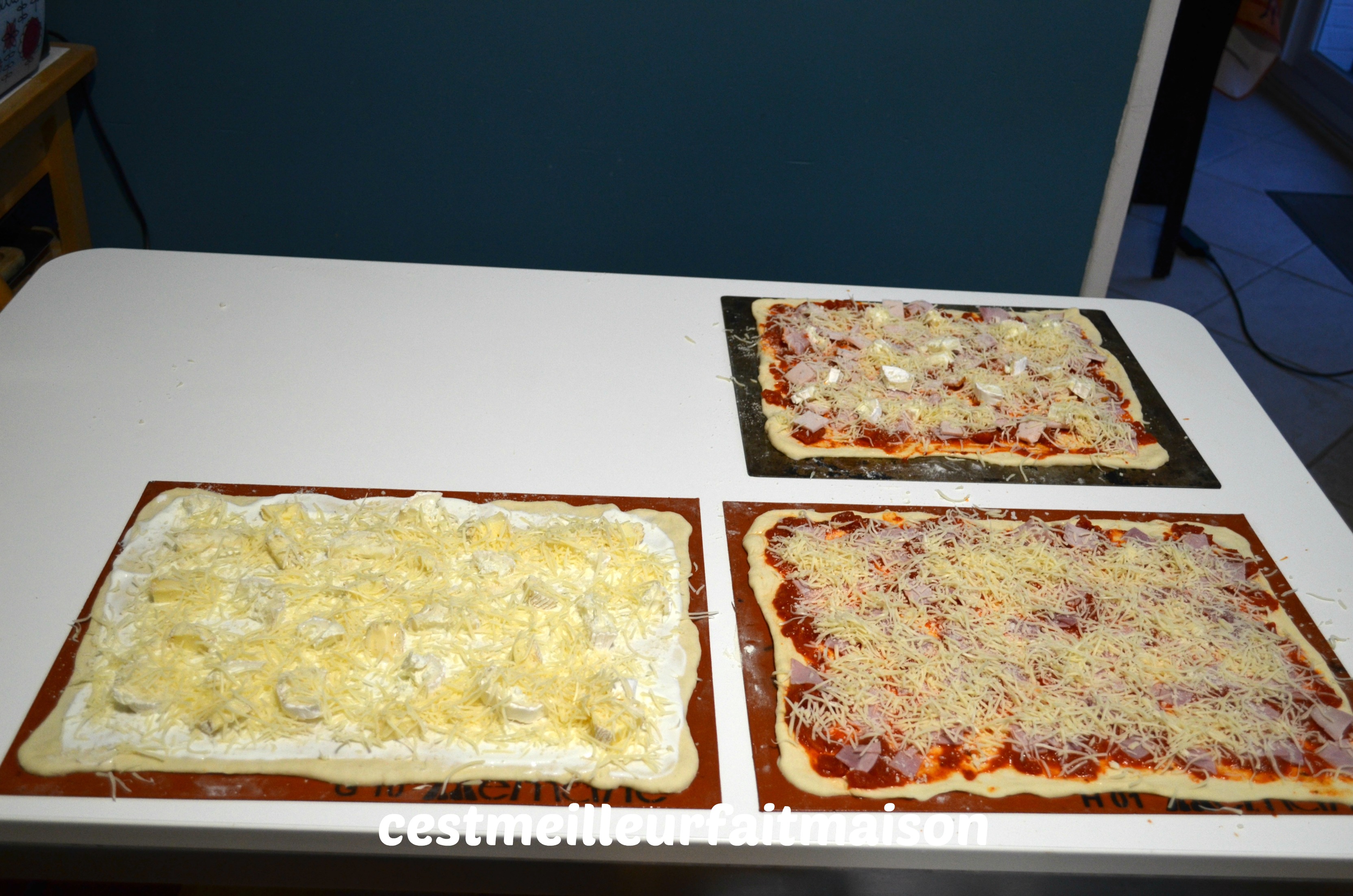 Je n’ai que deux toiles Silpat donc la troisième pizza est sur une plaque à pâtisserie.