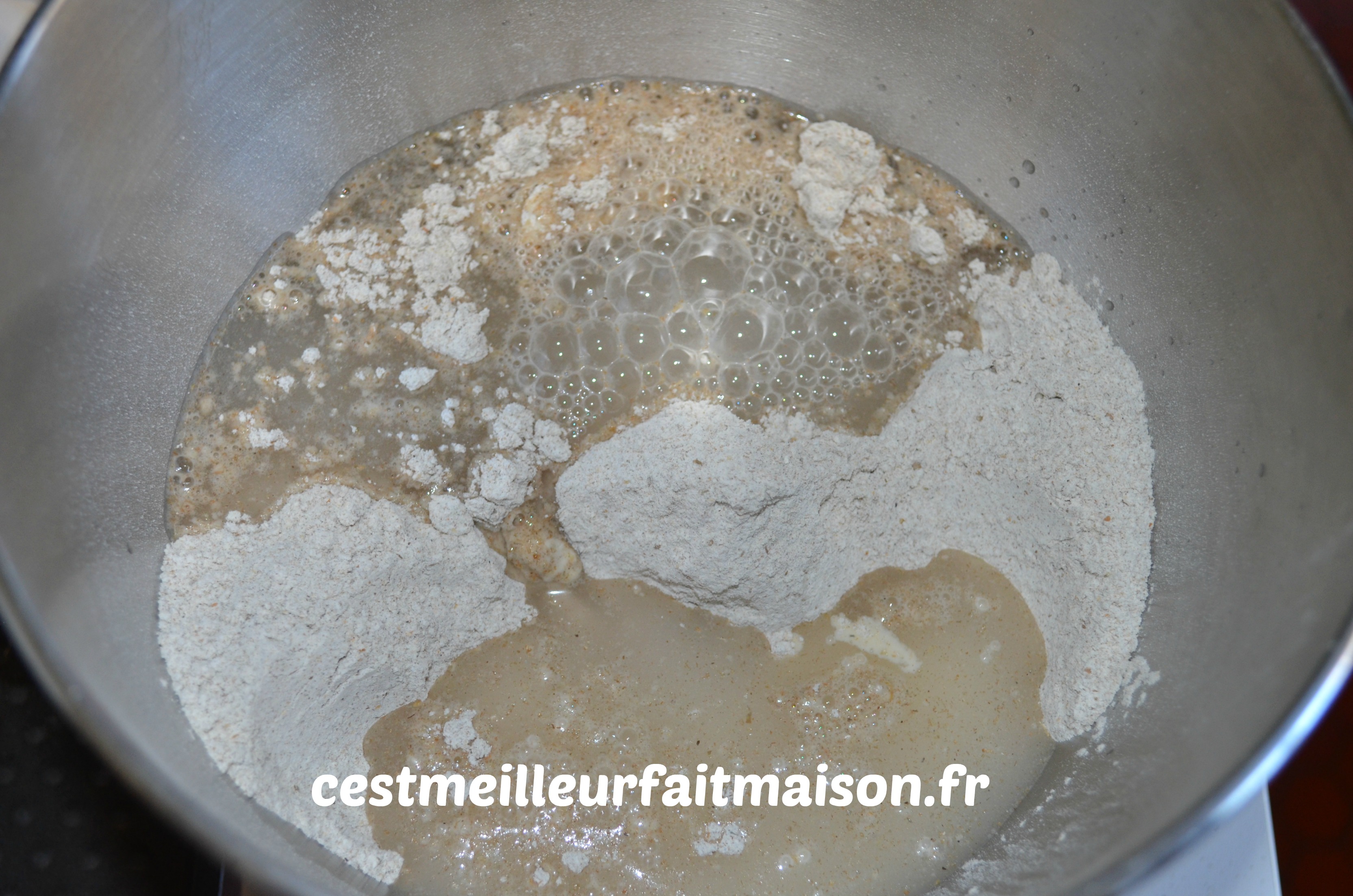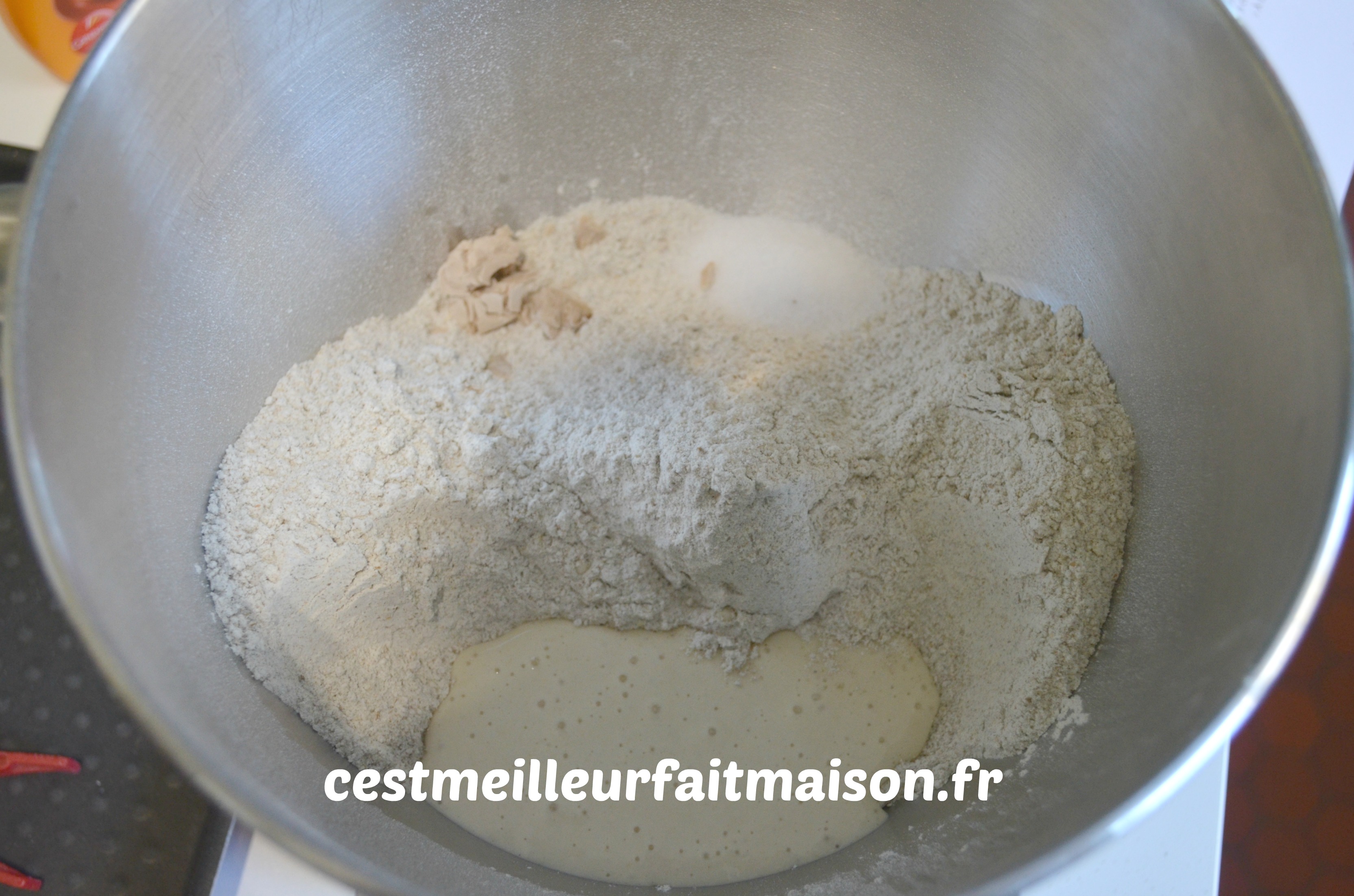 Je ne respecte plus les dosages d’eau du livre d’Eric Kayser, maintenant j’enlève systématiquement 15 g d’eau. La pâte est plus facile à travailler. J’utilise en priorité le Thermomix car je trouve que les pâtes sont mieux pétries qu’au Kitchenaid.