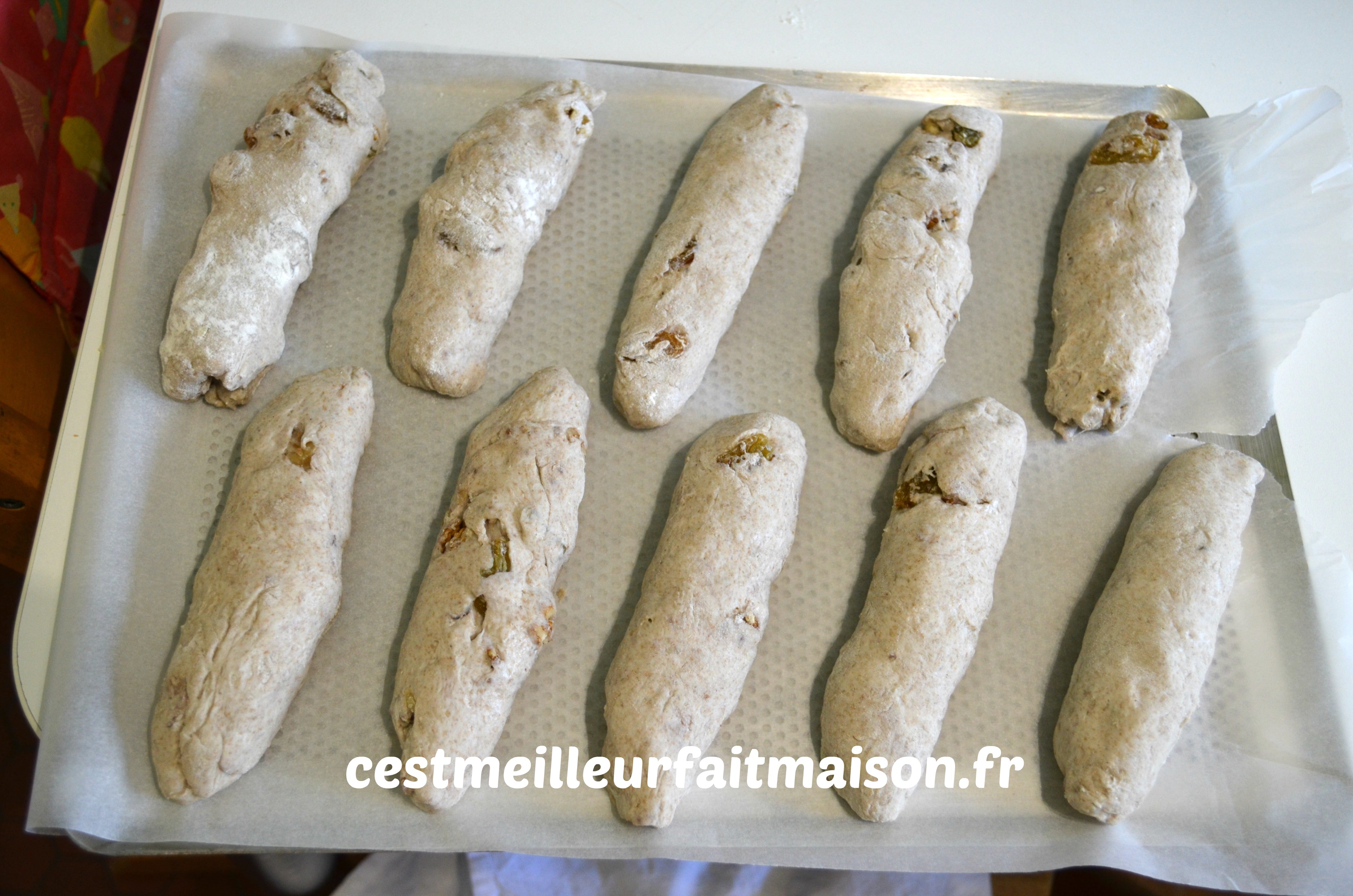 5- Former des petits pains d’une quinzaine de cm et les poser, soudure en dessous, sur une plaque recouverte de papier cuisson. Les laisser pousser 1h30 sous un linge.