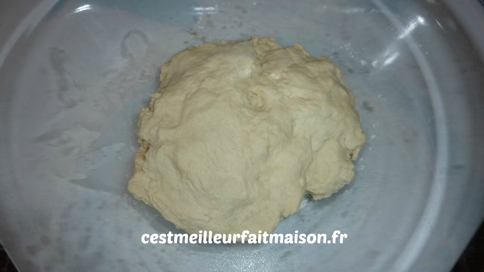 3- Ajouter les 100 g de lait restant et pétrir à nouveau 1 min. Mettre en boule et laisser reposer environ 1 heure.