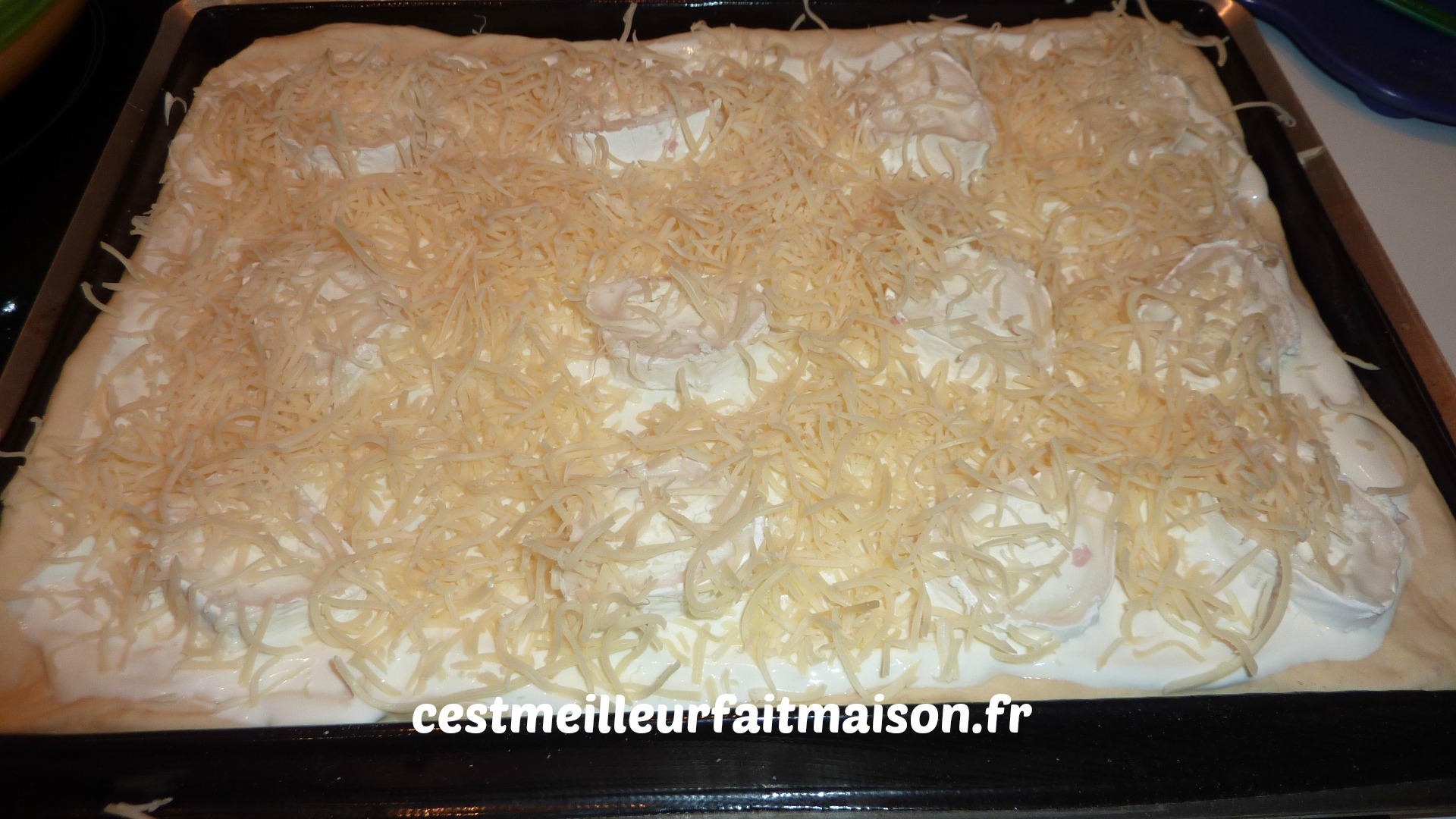 J’ai fait cette pizza avec du chèvre et de l’emmental râpé mais on peut la faire avec d’autres fromages. Recette pratique pour utiliser les restes de fromage.