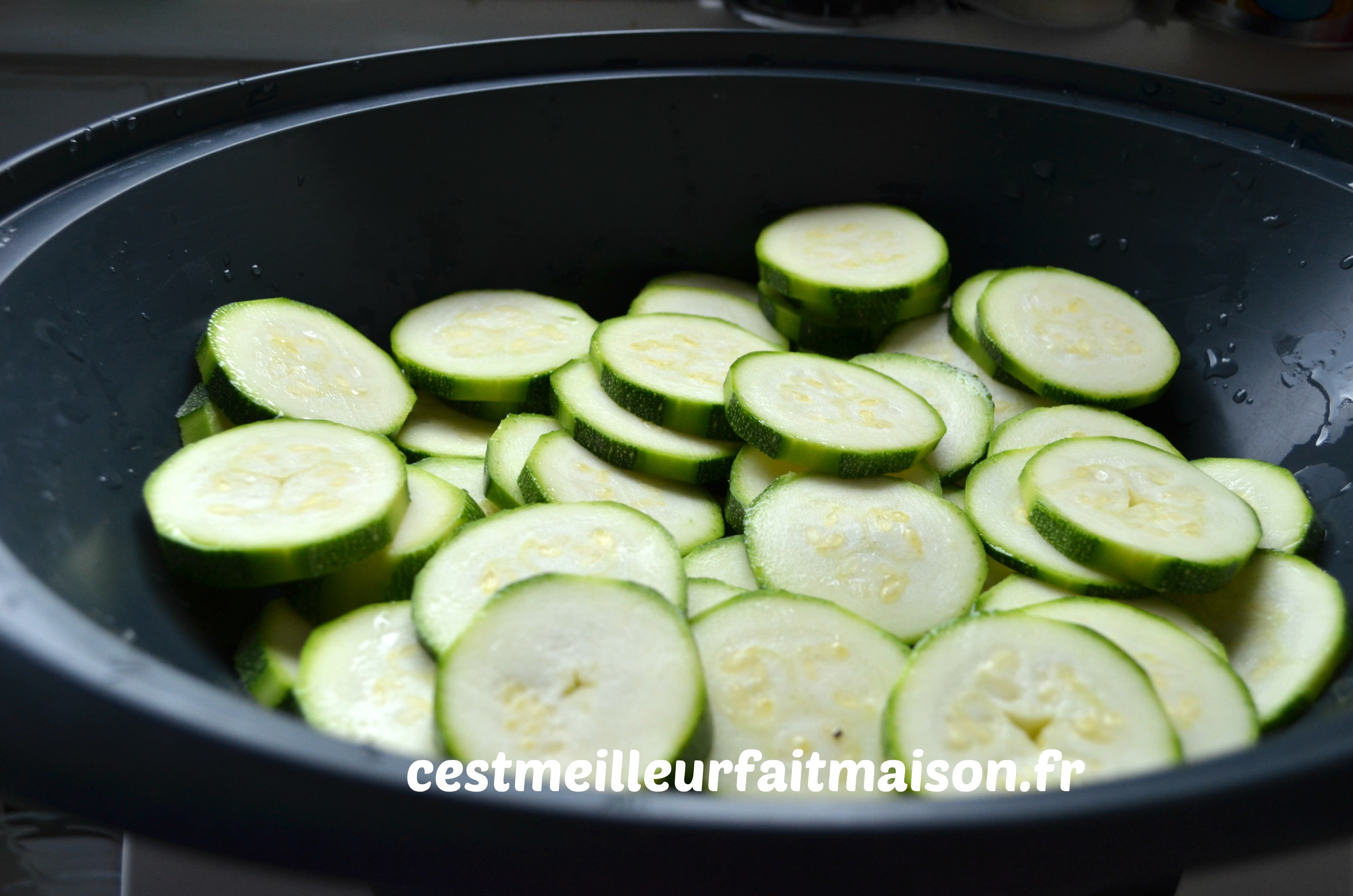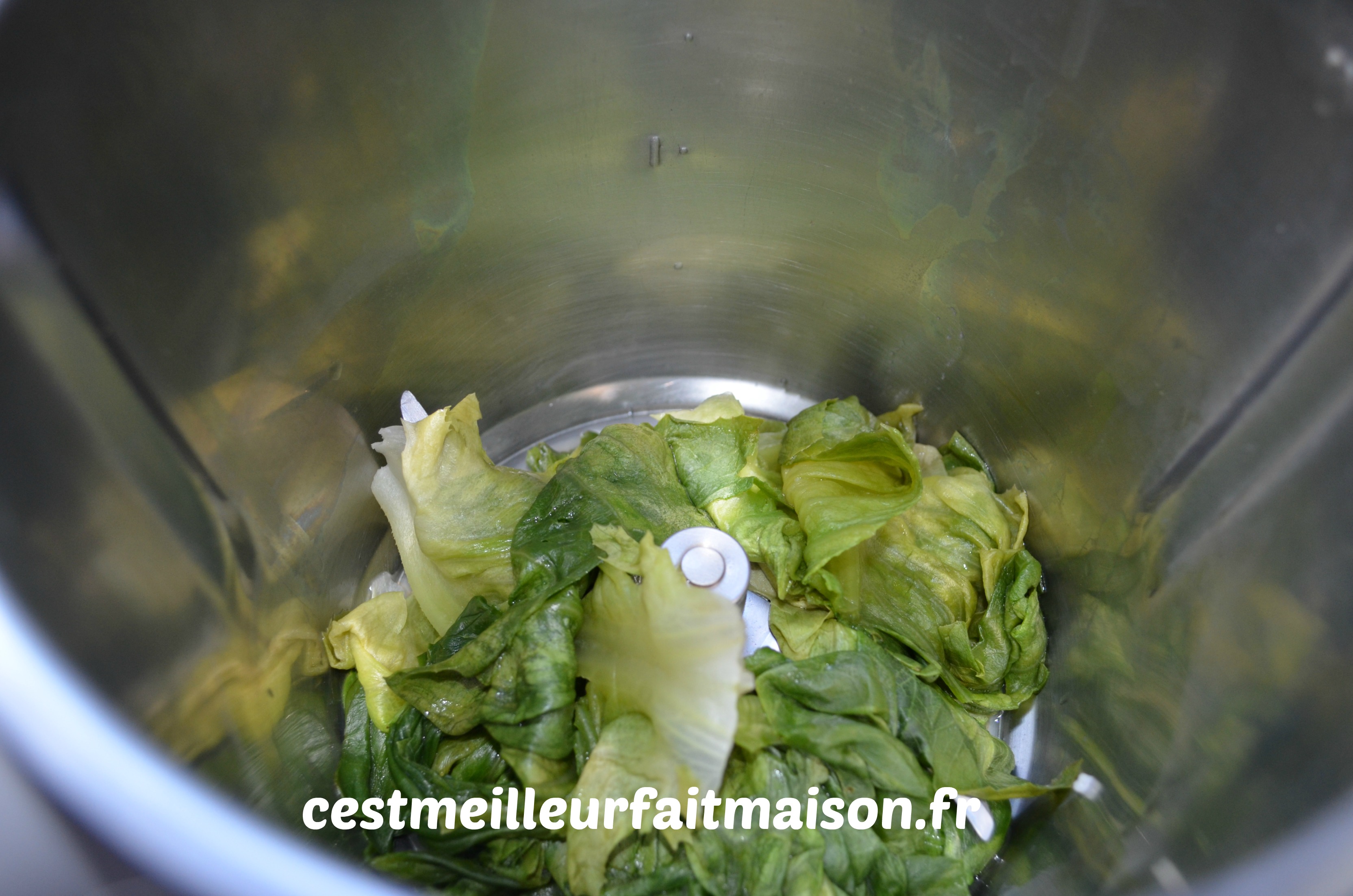 1- Couper les courgettes en rondelles, les mettre dans le Varoma et déposer au-dessus les feuilles de salade.
