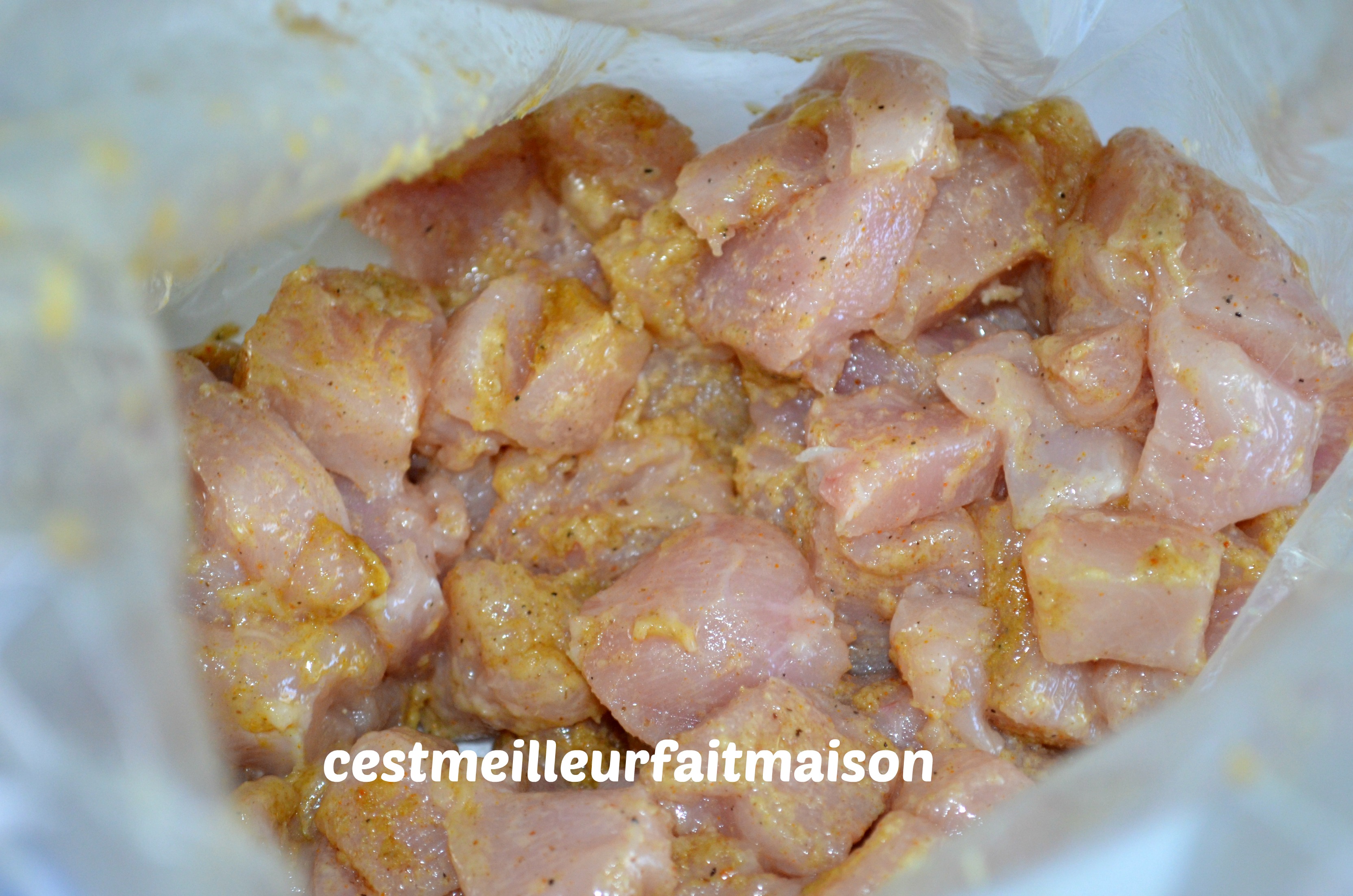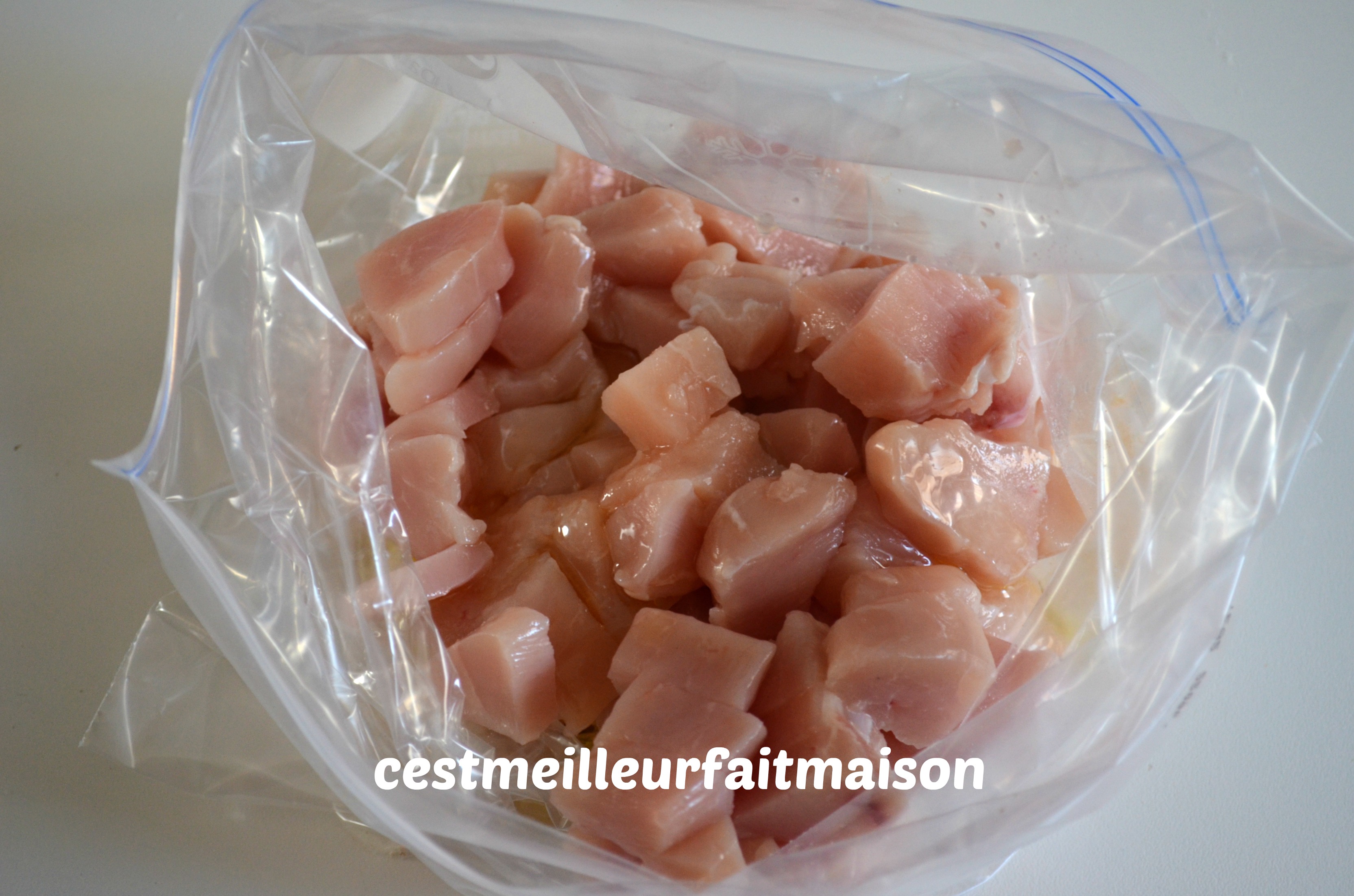 1- Couper le poulet en petits cubes.