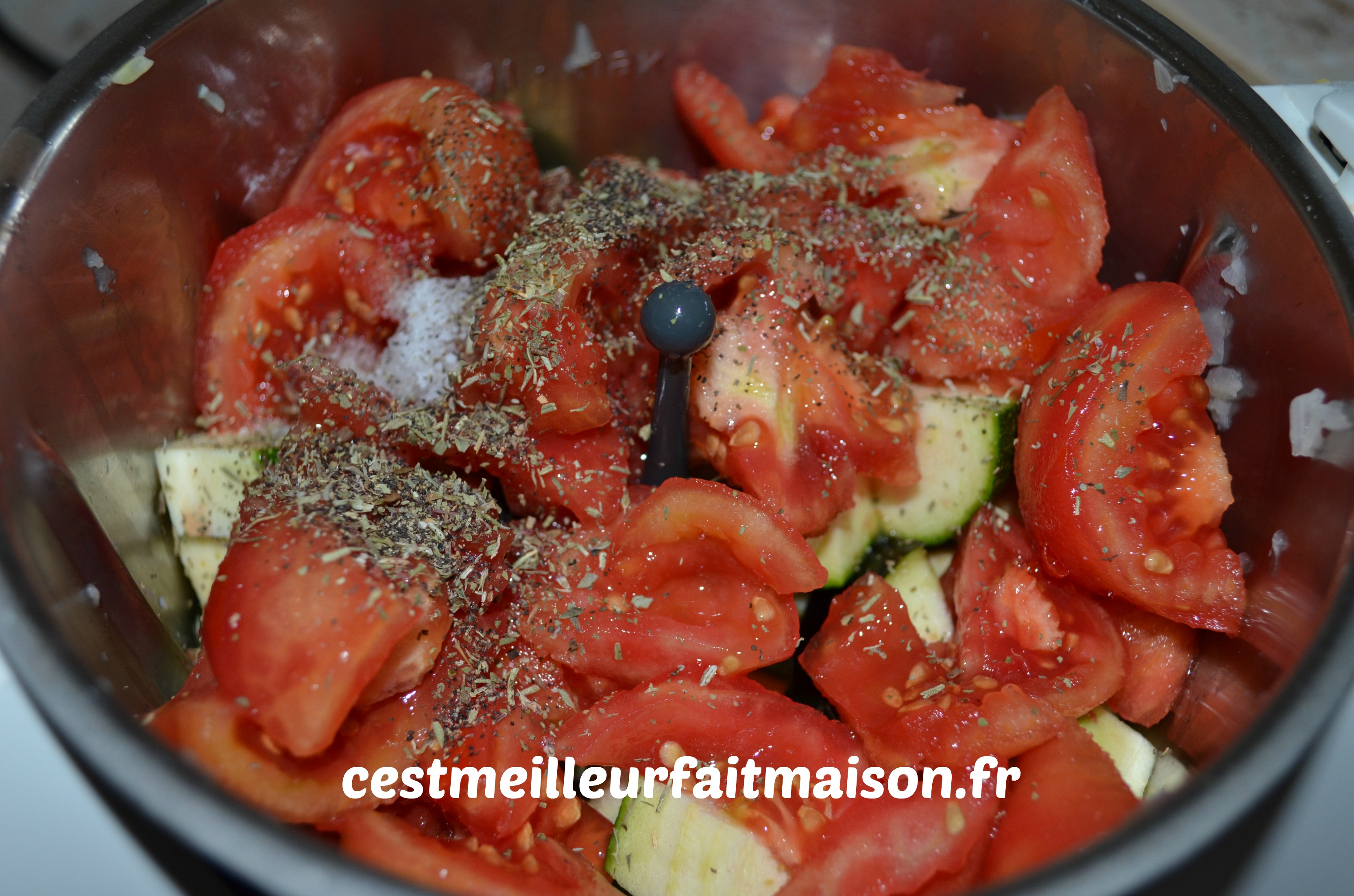 Cette recette est extraite du livre “A table avec Thermomix”.  Je l’ avais déjà réalisée quand j’ai reçu mon appareil mais je n’avais pas lu la petite astuce qui consiste à ajouter le fouet avant de mettre les légumes. Je l’ai refaite pendant les vacances et je suis contente, les légumes sont restés entiers.