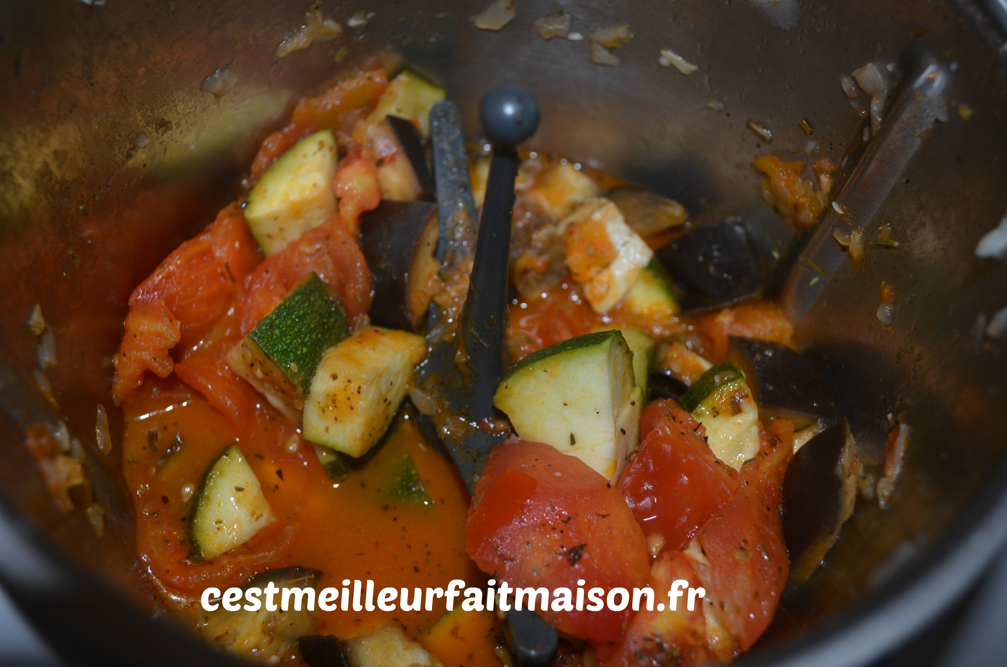 4- On peut  manger cette ratatouille chaude ou froide. On peut aussi utiliser la moitié de cette préparation pour une tarte.