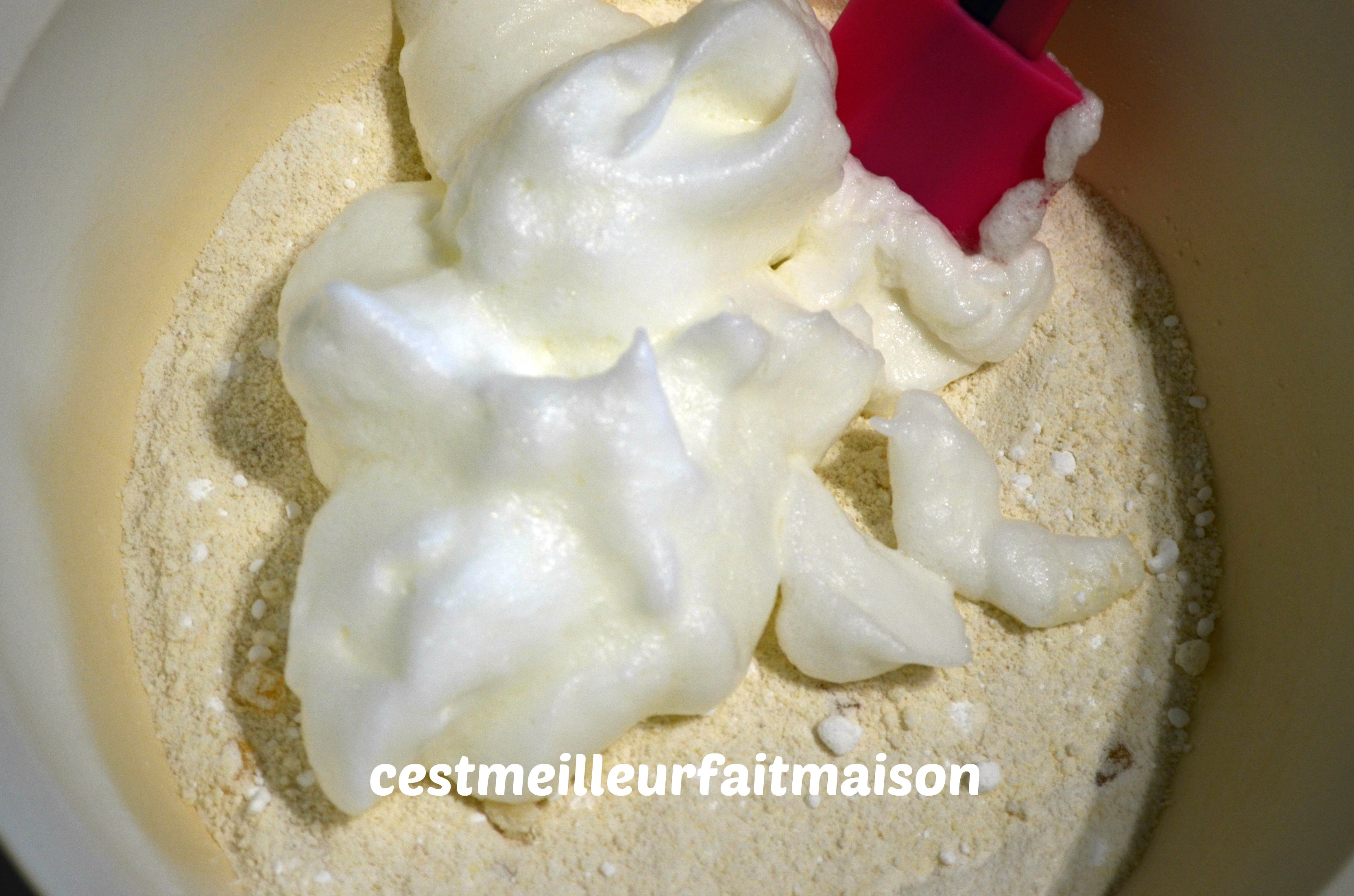 3- Battre le blanc d’œuf en neige et l’incorporer au mélange précédent. Couvrir le récipient et réserver au réfrigérateur jusqu’au lendemain.