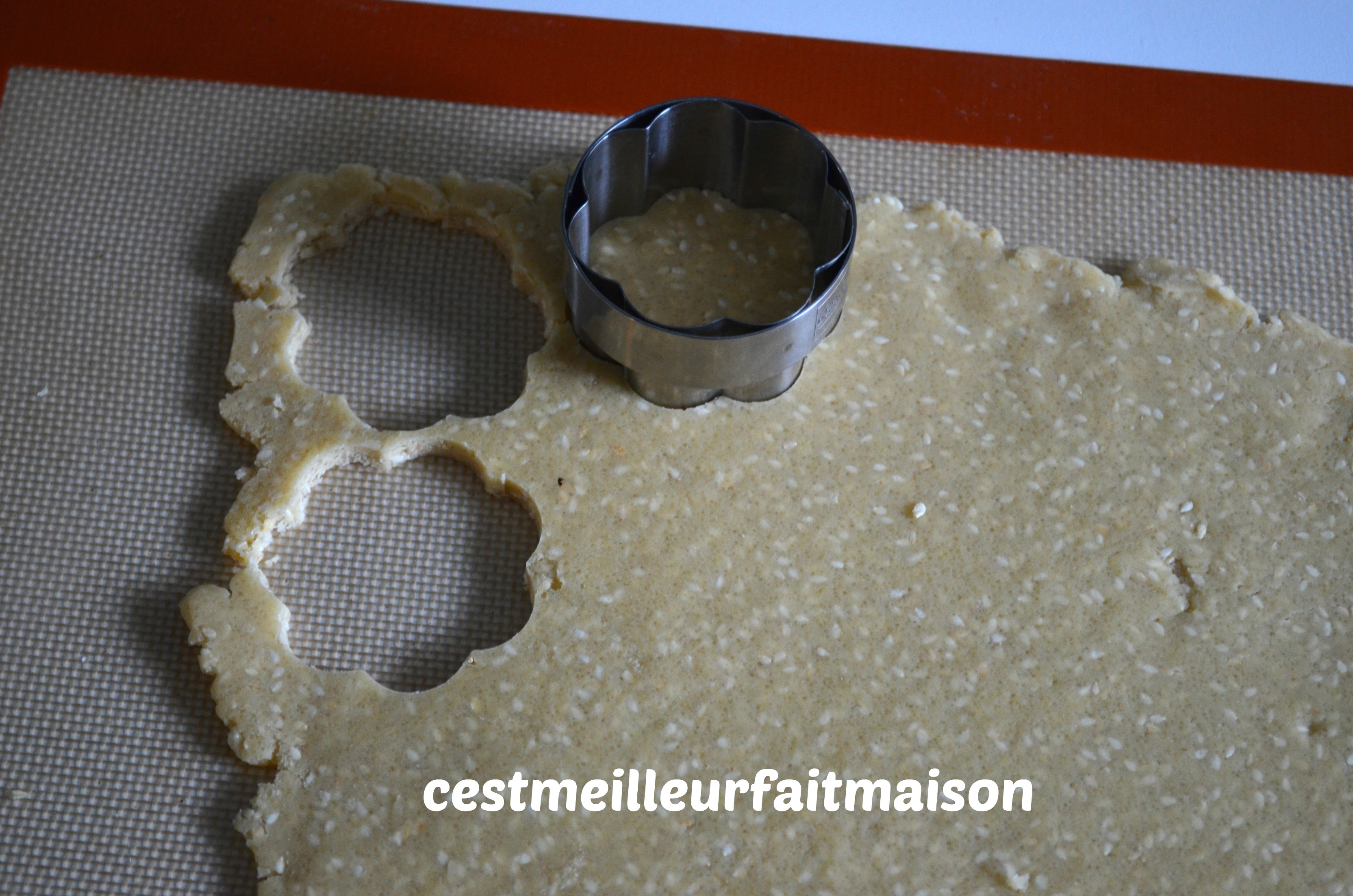6- Enfourner pour 12 min. J’ai tenté trois cuissons: 18, 15 et 12 min et je préfère 12 min. A vous de voir avec votre four. Faire refroidir les sablés sur une grille à pâtisserie.