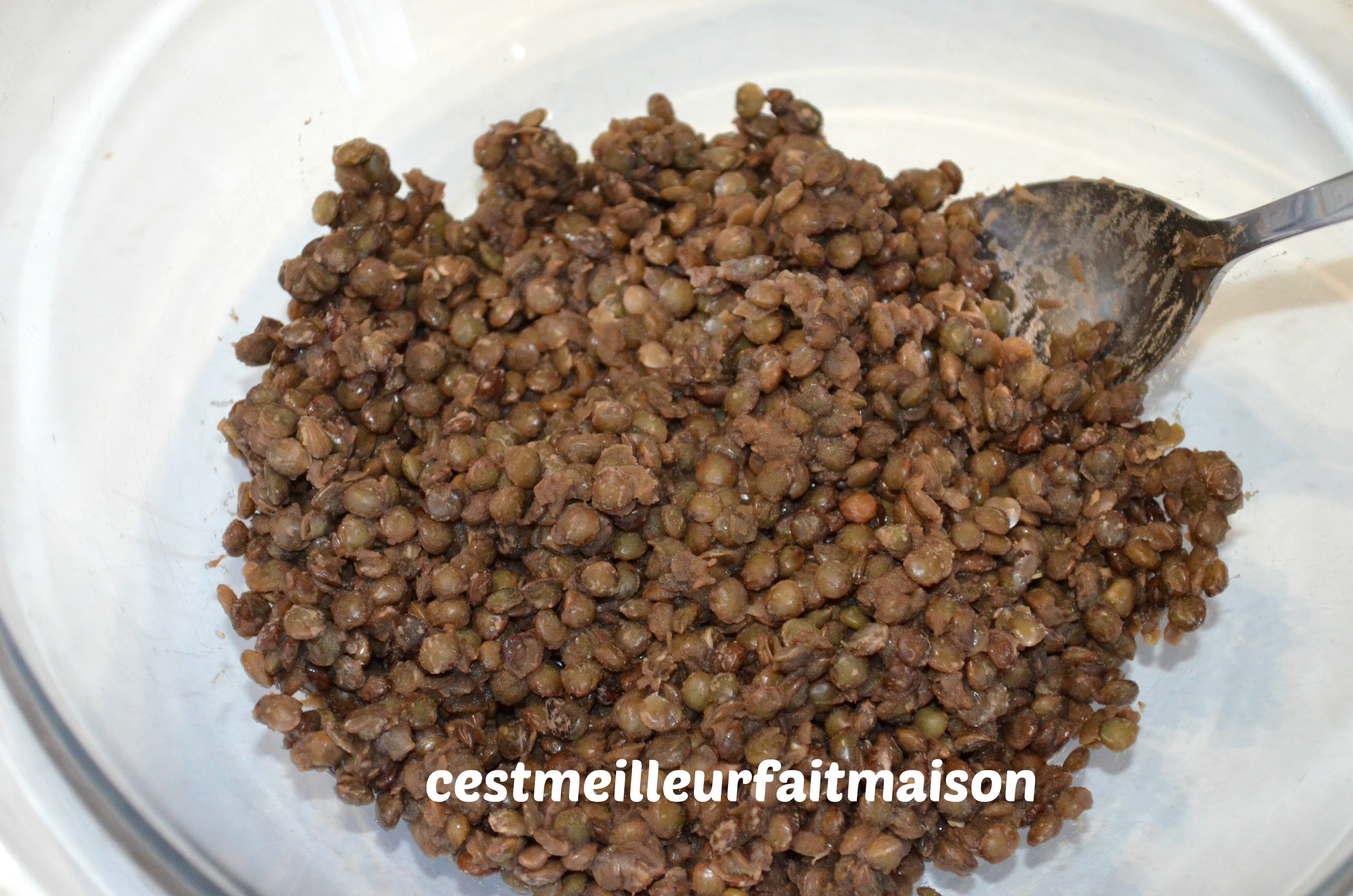 1- Cuire les lentilles comme indiqué sur le paquet puis les égoutter. Les mettre dans un saladier.