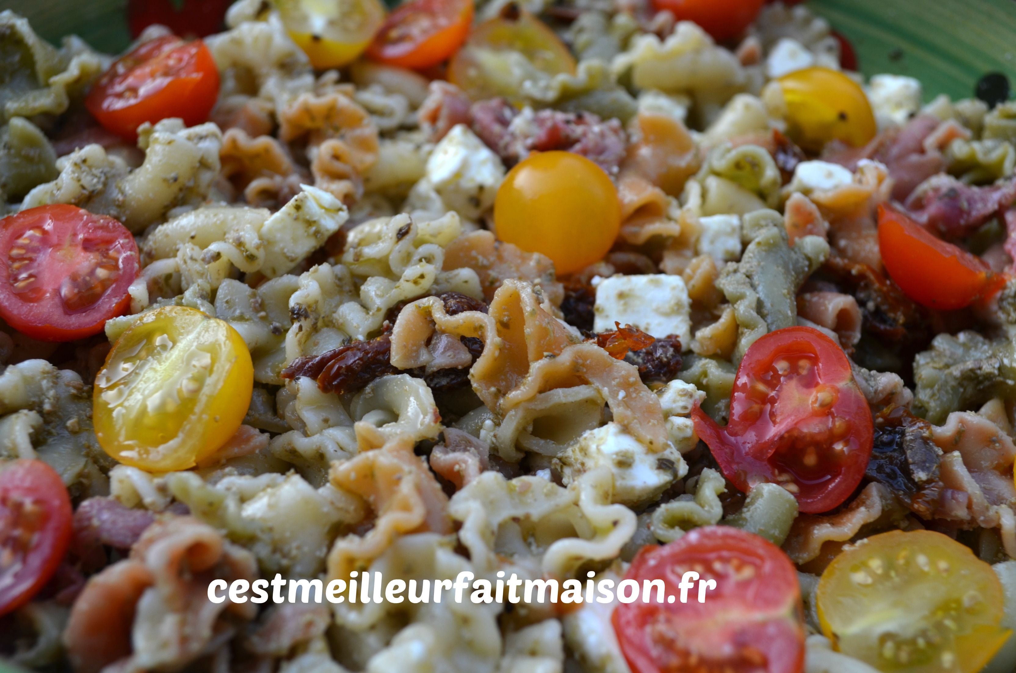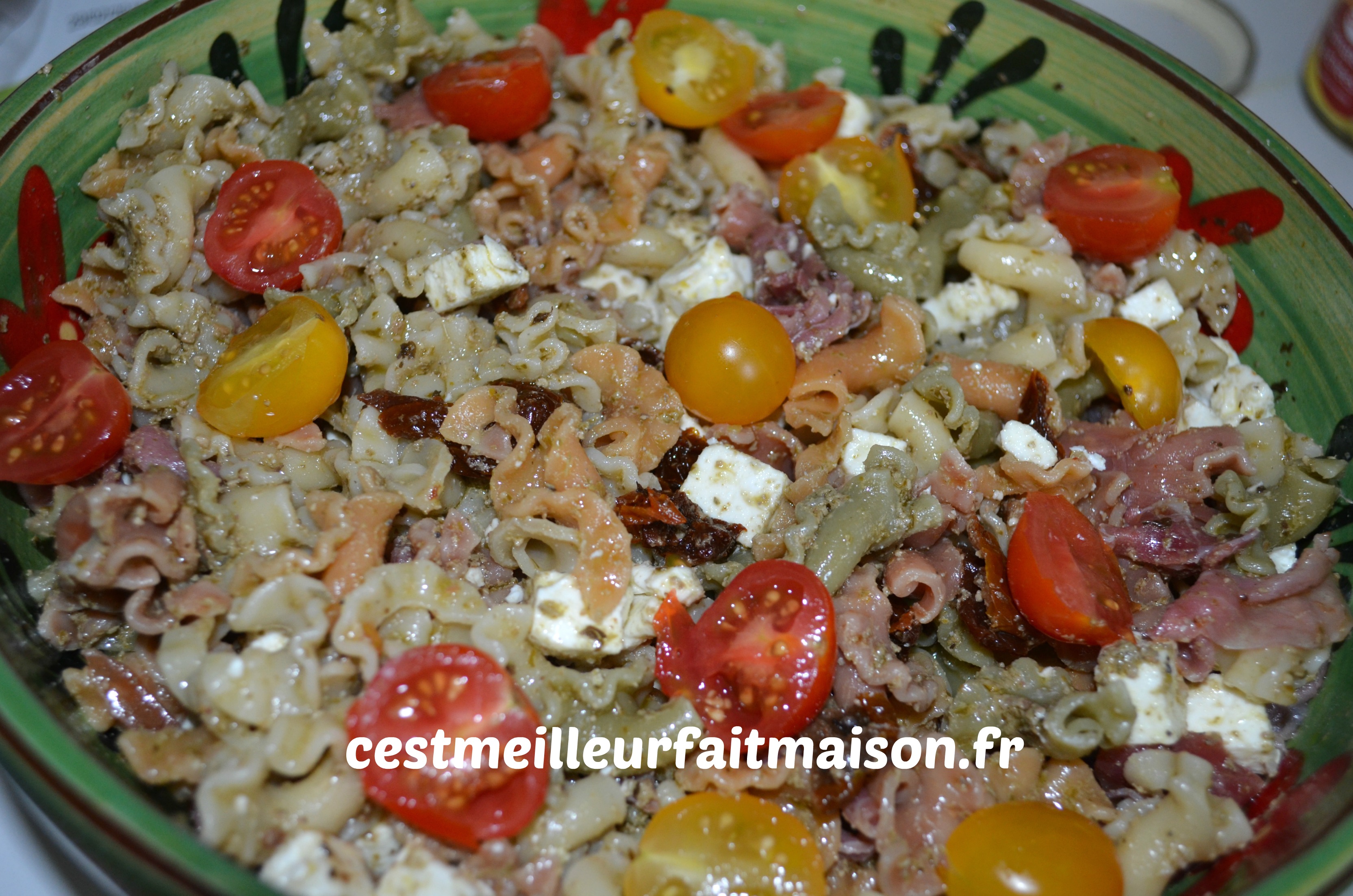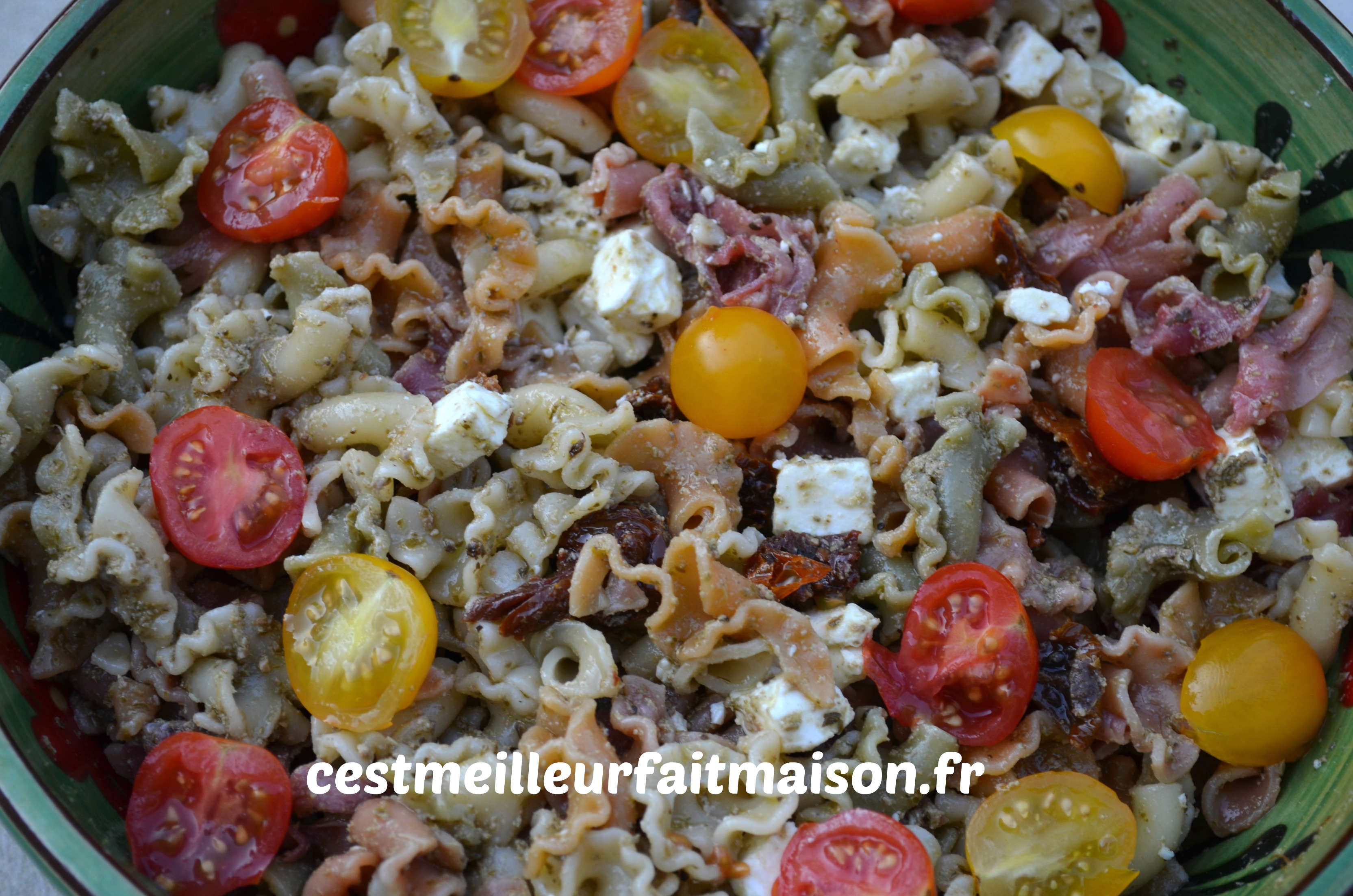Je participe à nouveau à un tour en cuisine, tour n°407, et j’ai pioché une recette chez Ludivine du blog Les recettes de Lulu. J’ai choisi cette salade de pâte que nous avons beaucoup apprécié. Il manque tout de même un peu de fraîcheur, c’est pourquoi j’ai ajouté quelques tomates cerises. La prochaine fois j’en mettrais encore plus.