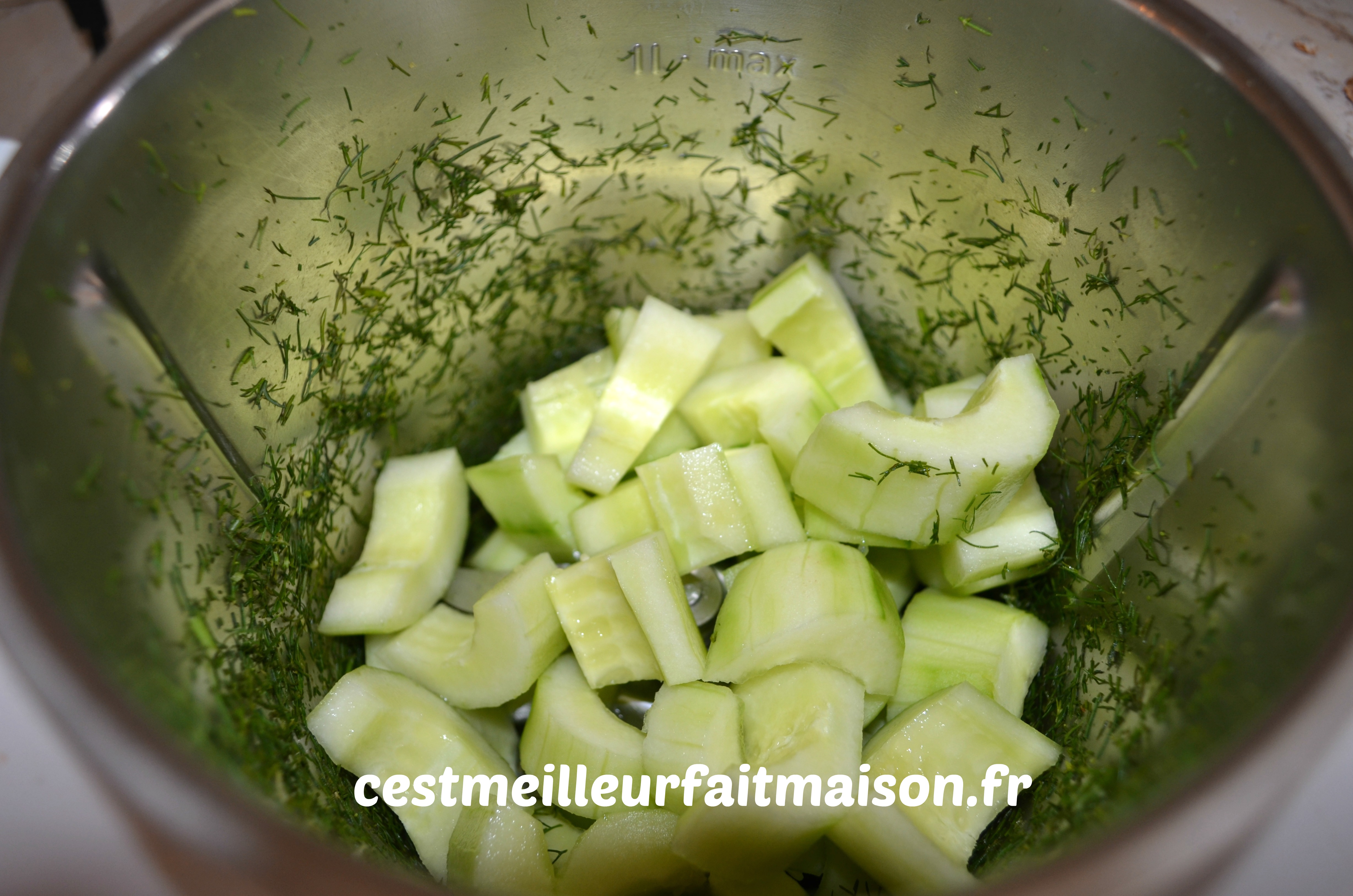 2- Ajouter dans un blender ou dans le bol du Thermomix les concombres épluchés et épépinés.