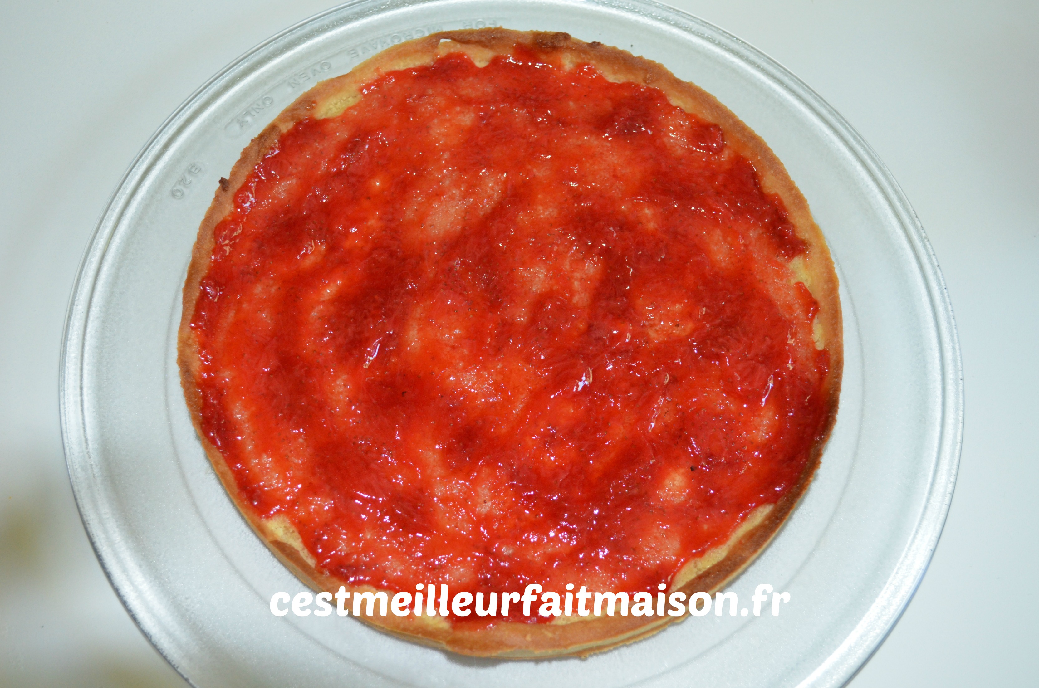7- Lorsque la tarte est refroidie, étaler la marmelade de fraises.