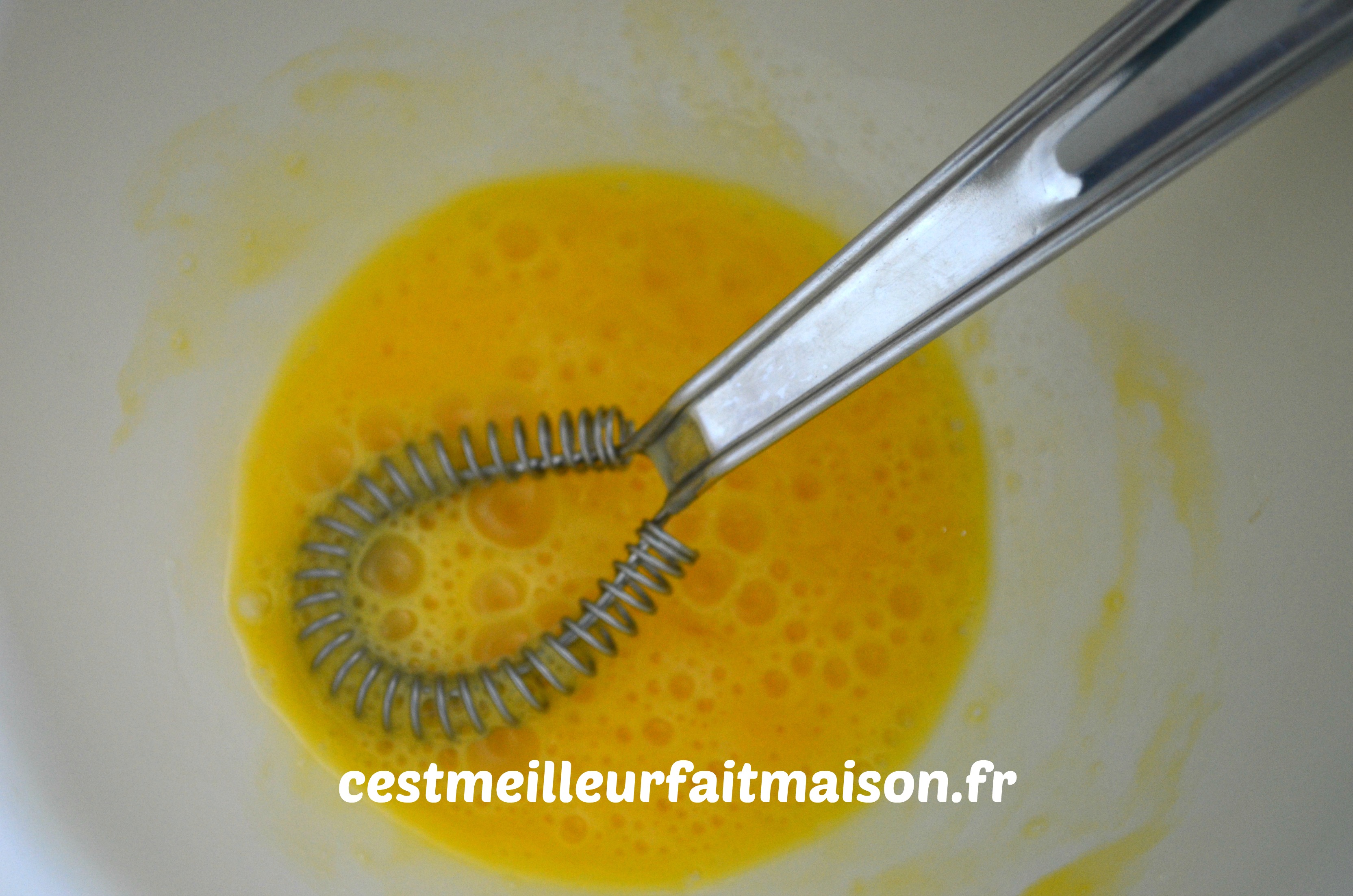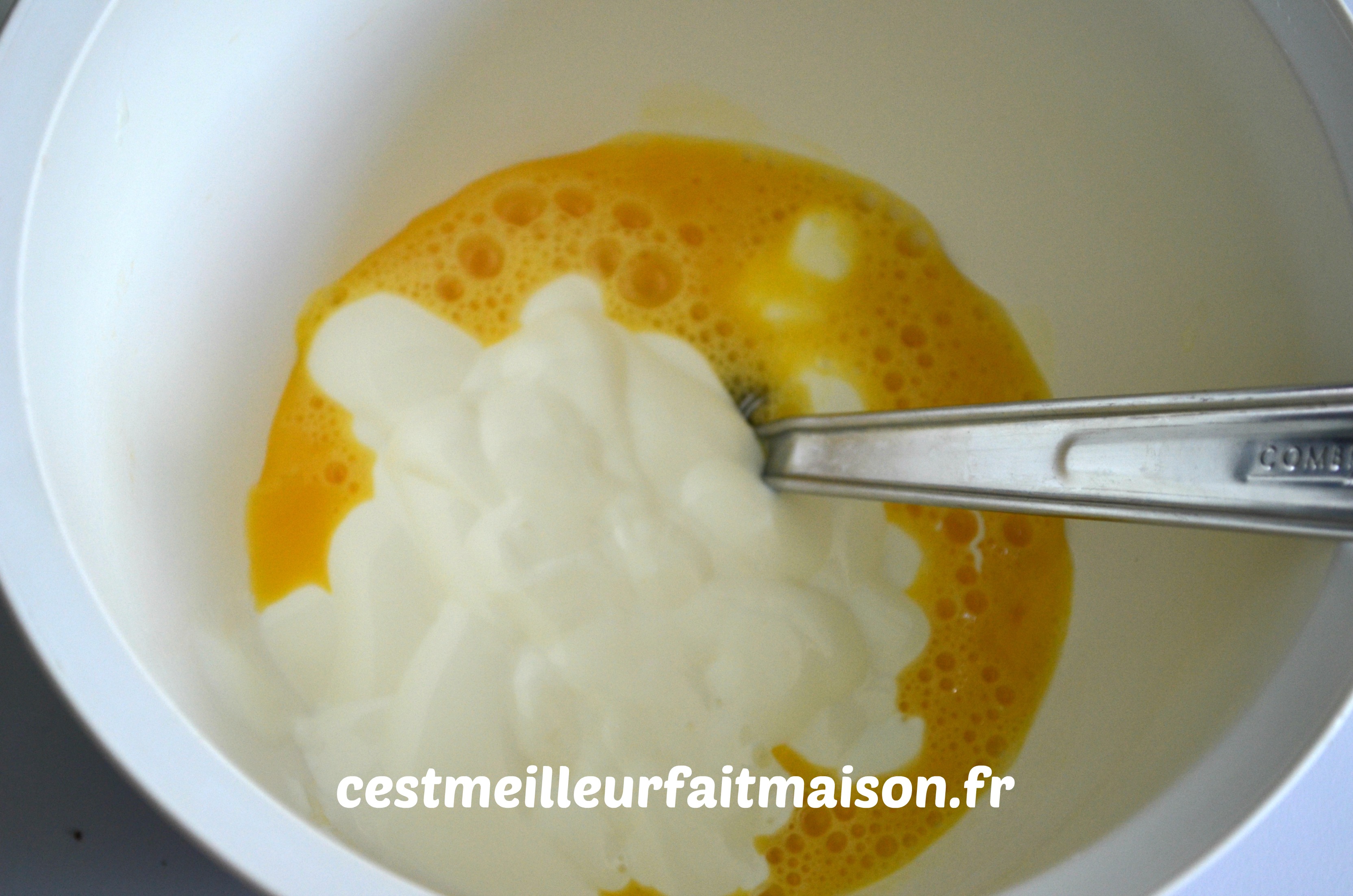 3- Dans un saladier, mélanger la crème avec l’œuf.