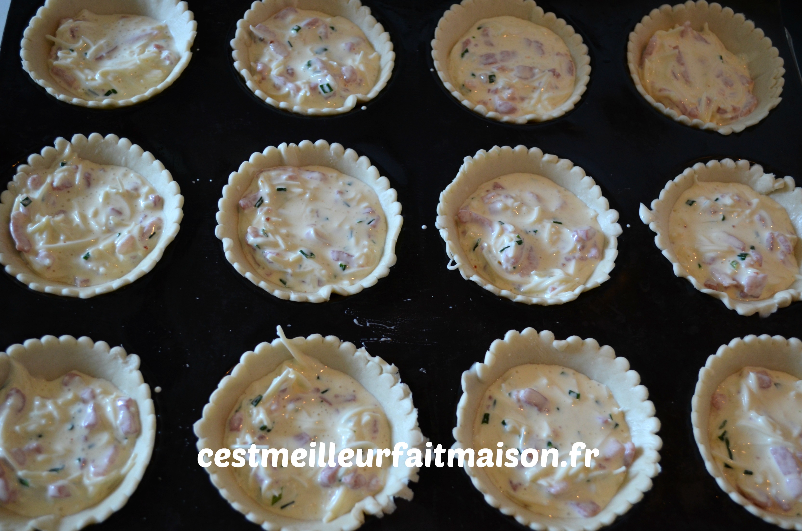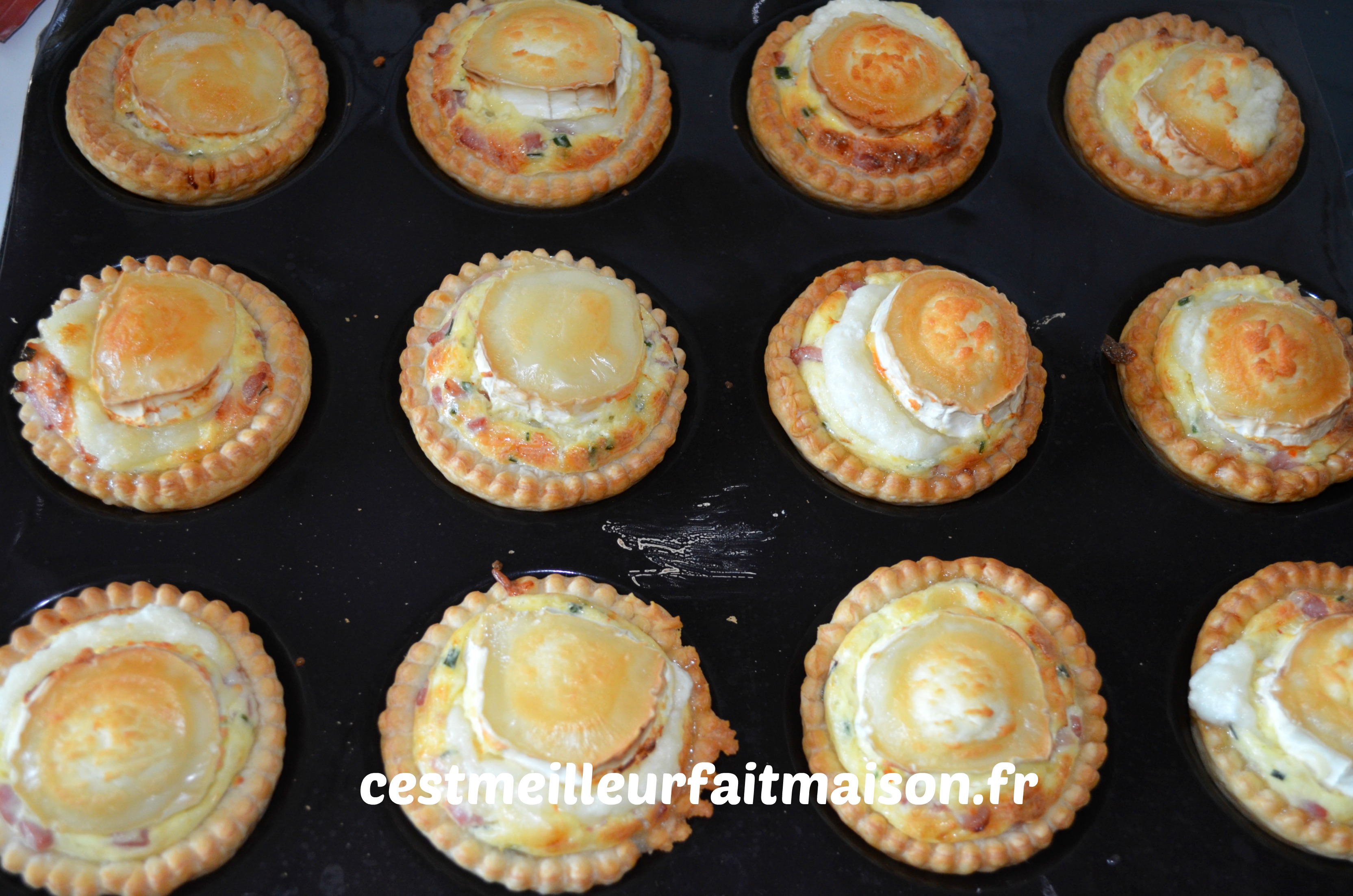 J’ai trouvé ces tartelettes chez Doria. Cette fois-ci je n’ai pas fait la pâte feuilletée donc c’était encore plus rapide à préparer. On peut déguster ces tartelettes en amuse bouche ou en entrée avec de la salade. Je les ai réalisées dans les empreintes à tartelettes de Guy Demarle. La prochaine fois, je les ferais dans les empreintes mince pie pour des amuses bouches encore plus petits.