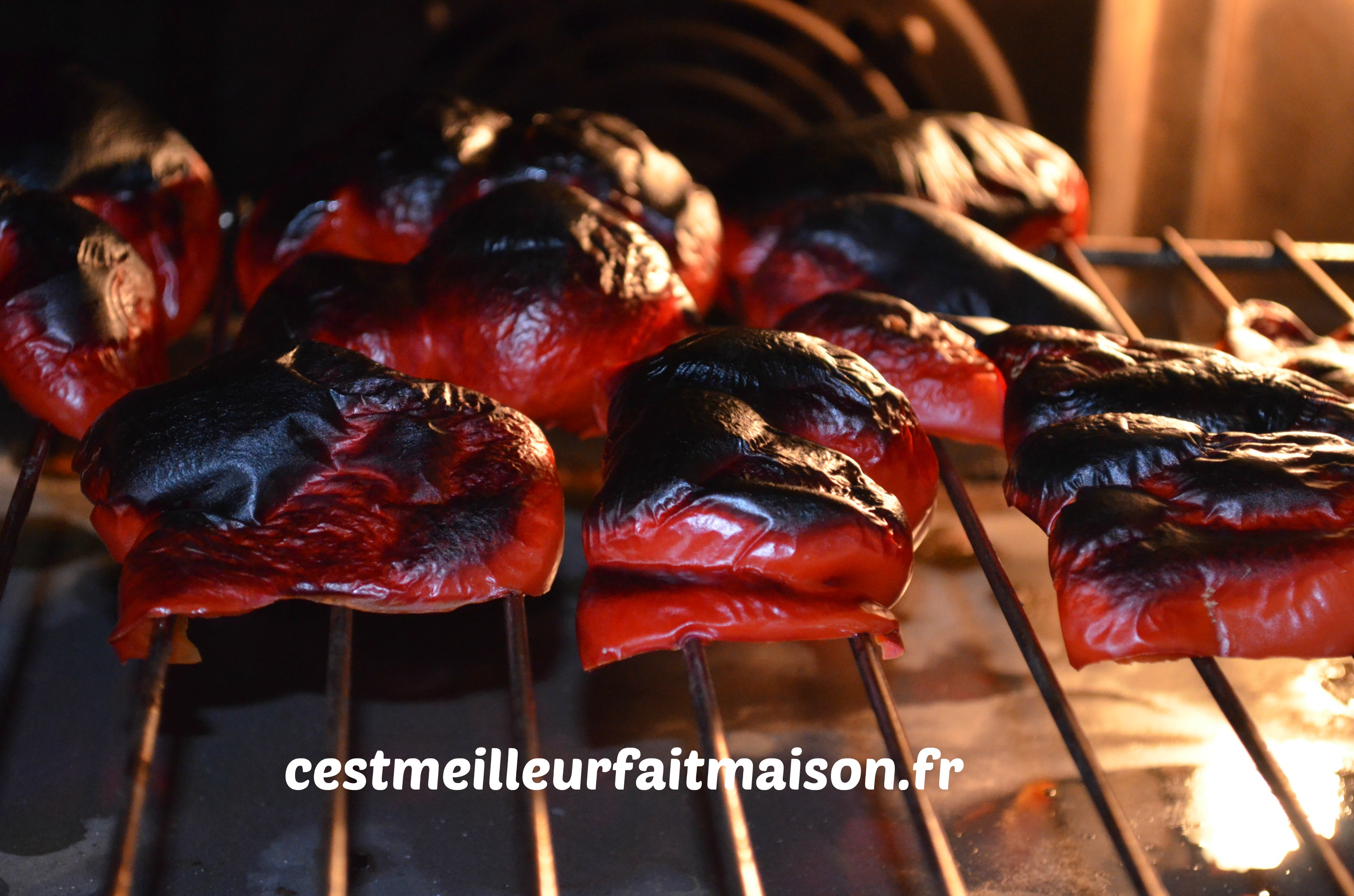 1- Couper les poivrons en deux, les épépiner et les faire griller au four.