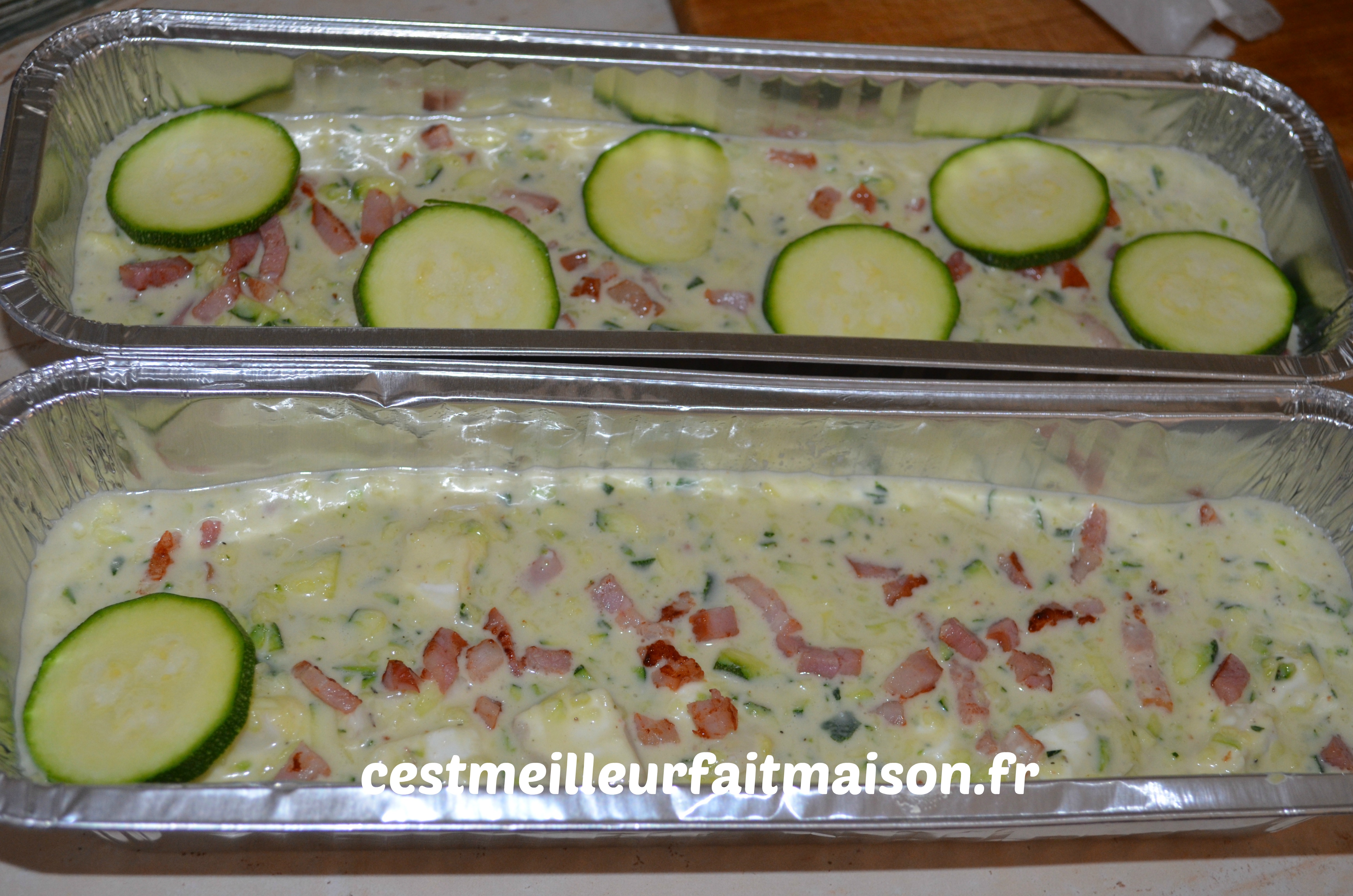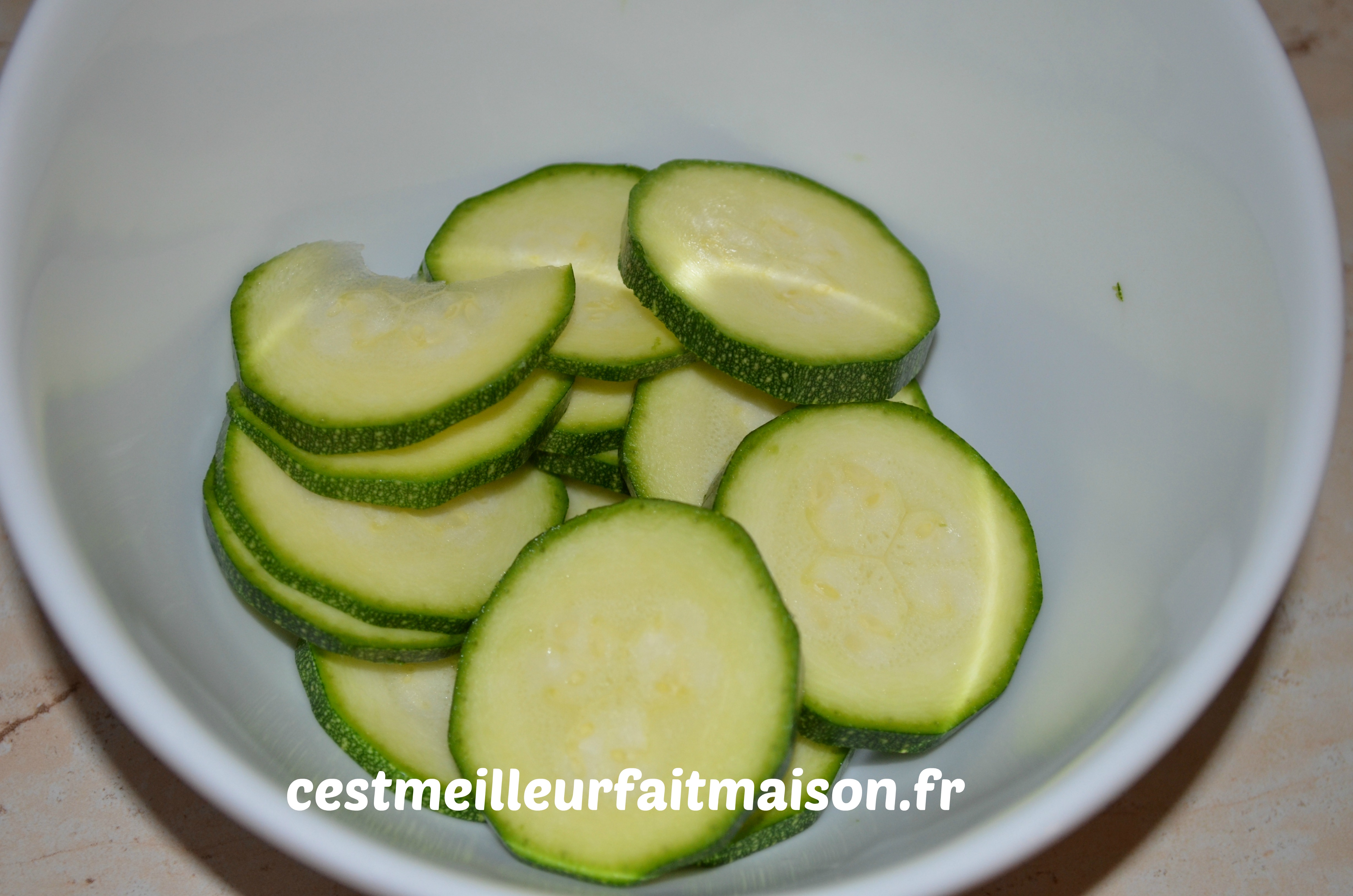 Décorer avec les rondelles de courgettes et les lardons réservés.
