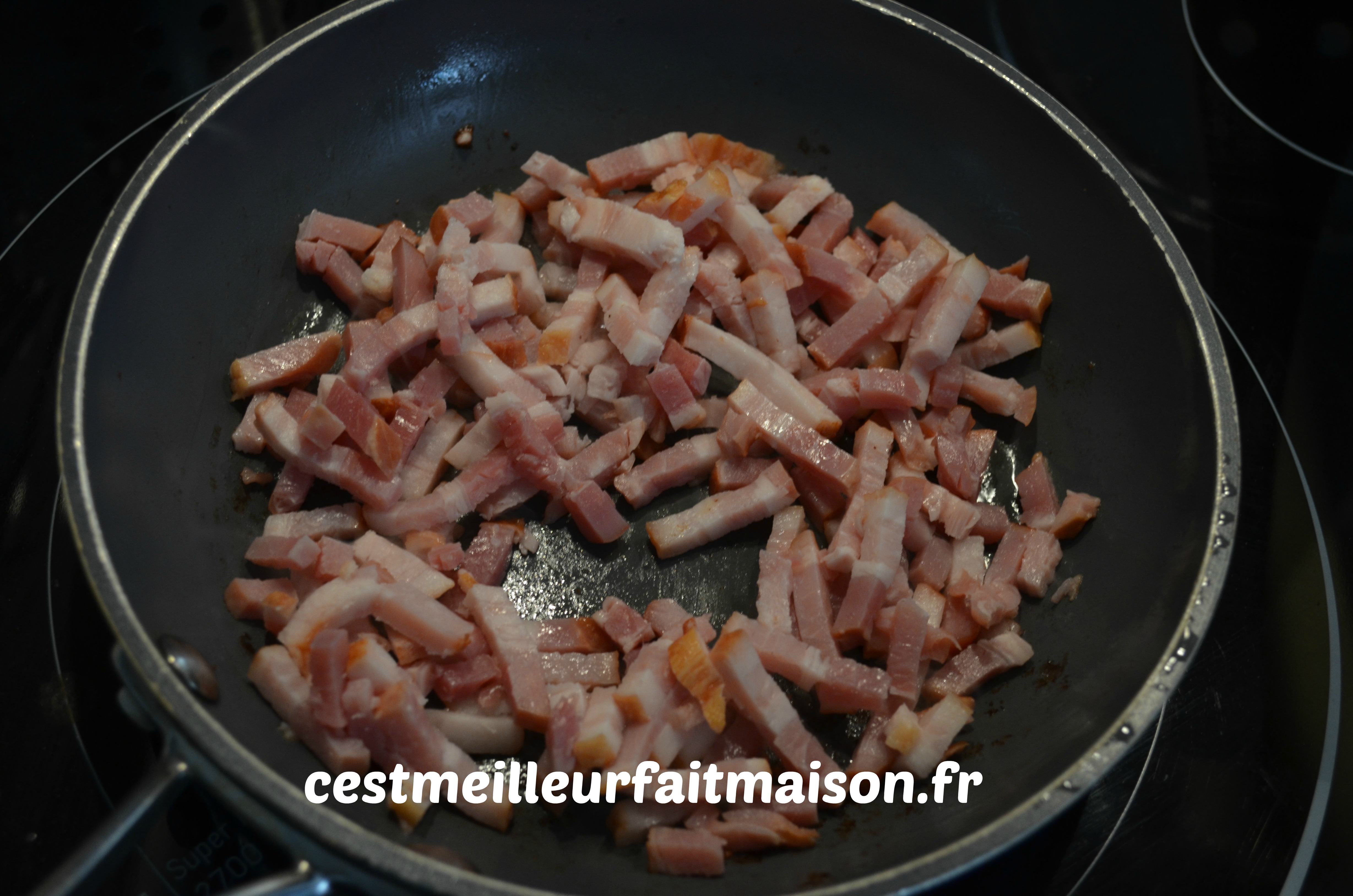 3- Faire revenir les lardons afin d’éliminer un maximum de gras.