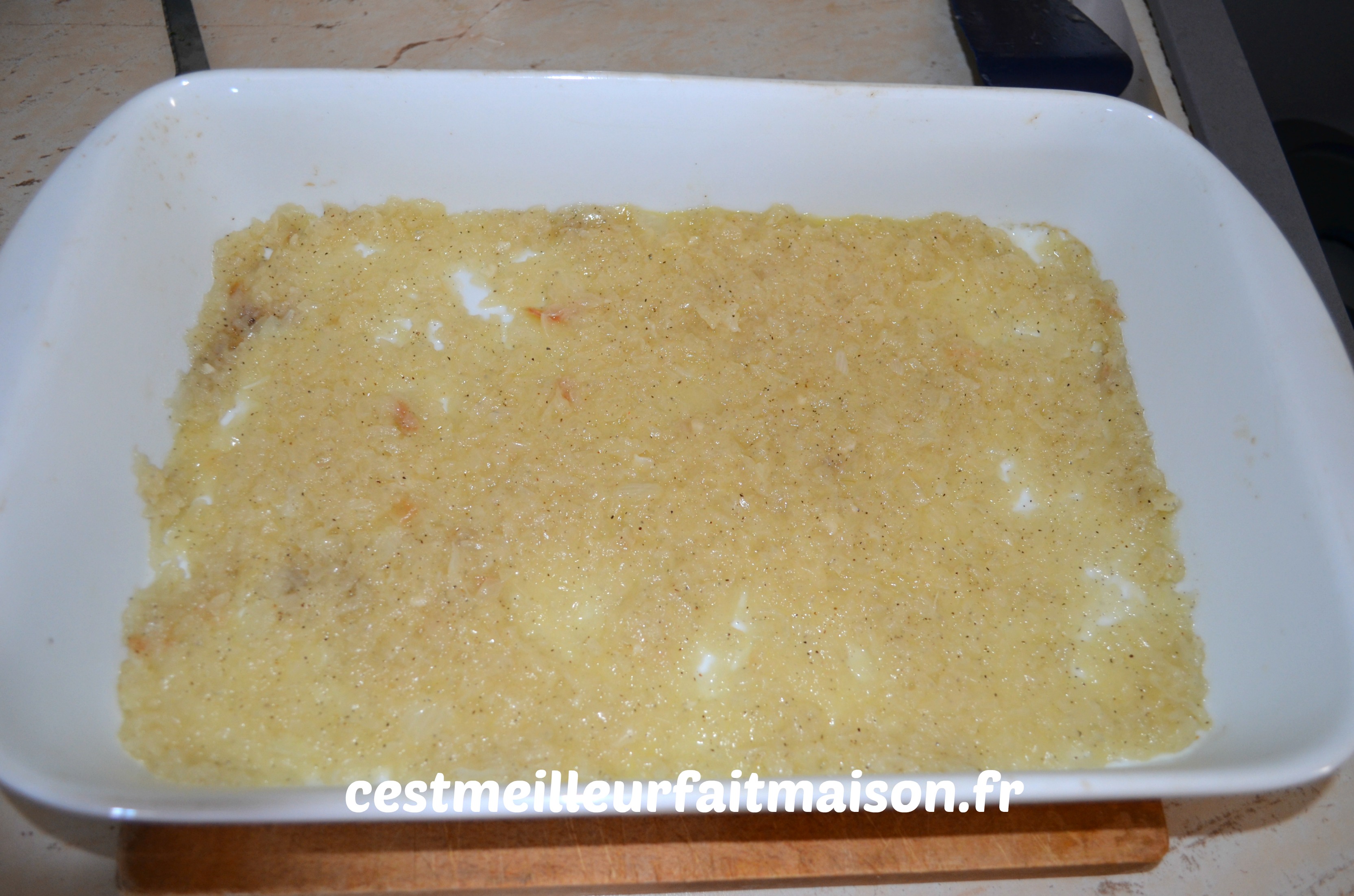 3- Verser cette fondue d’oignon au fond d’un plat allant au four.
