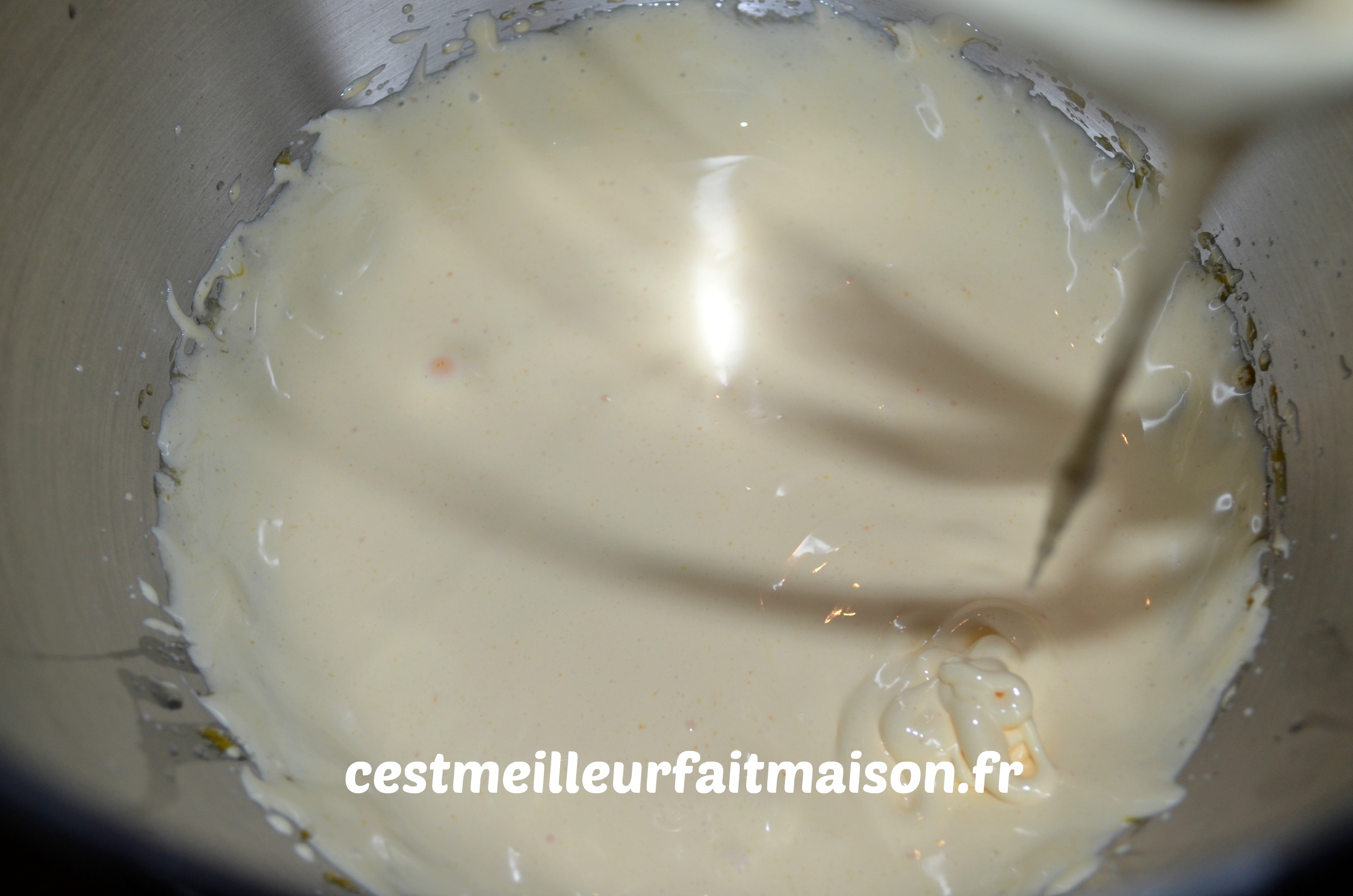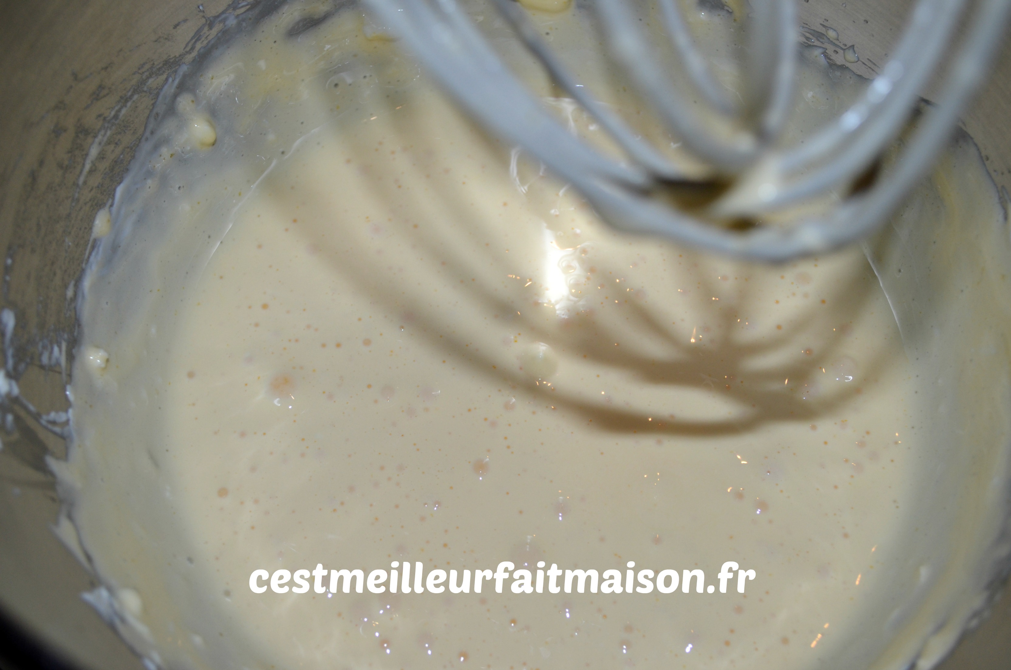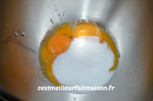 1- Mélanger les jaunes d’œufs et le sucre jusqu’à ce que le mélange blanchisse.